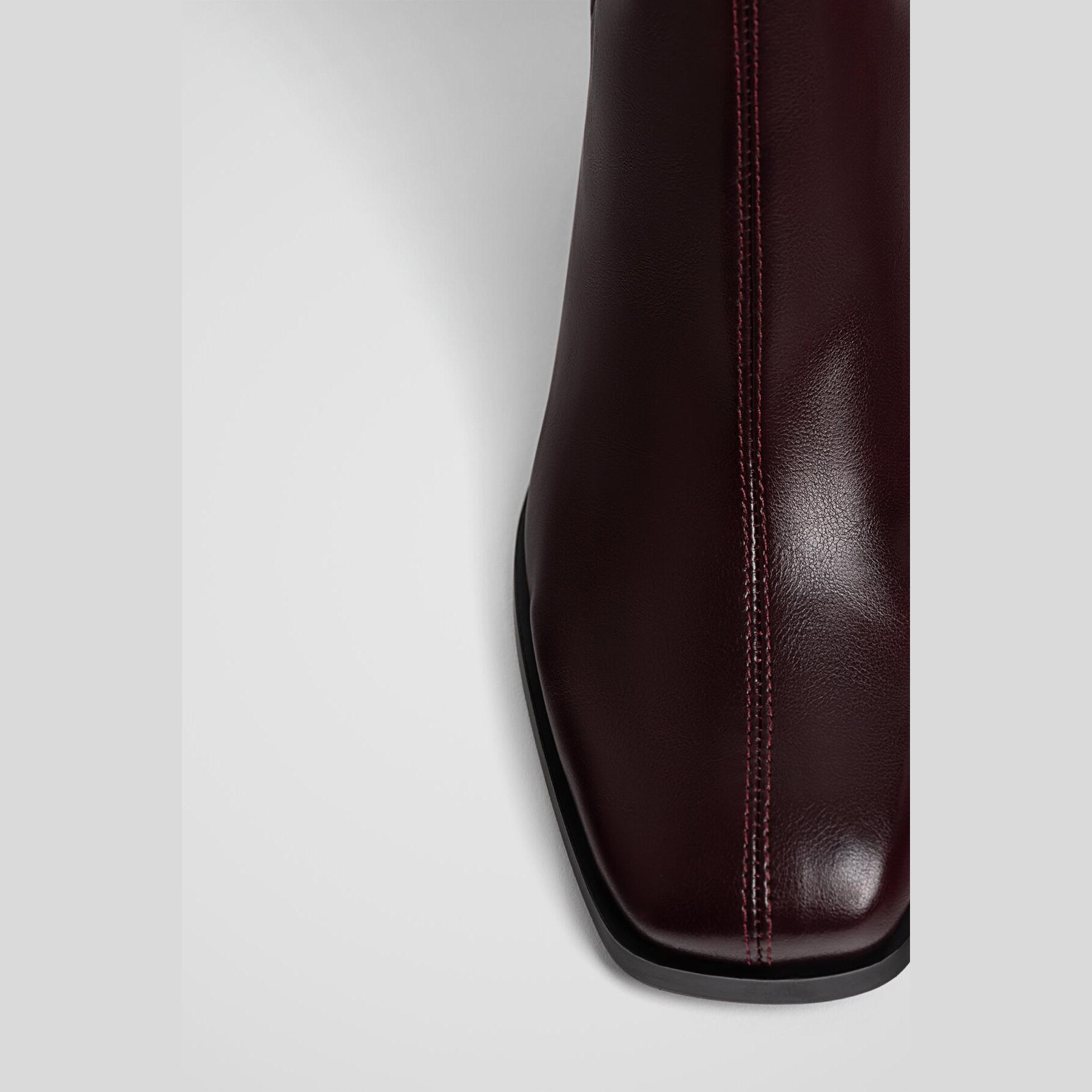 Stradivarius – بوت نسائي متوسط الطول بكعب عريض بلون بوردو أنيق