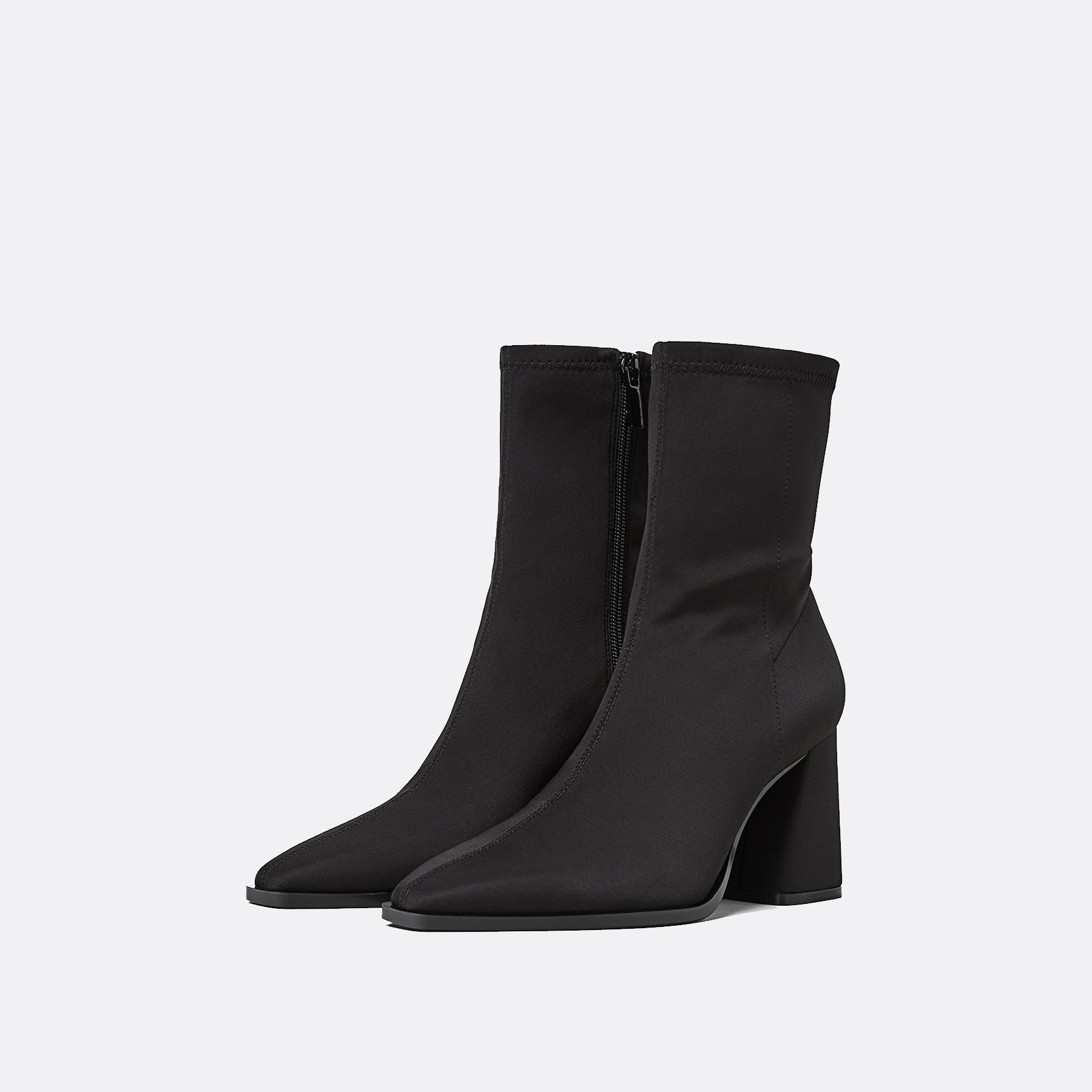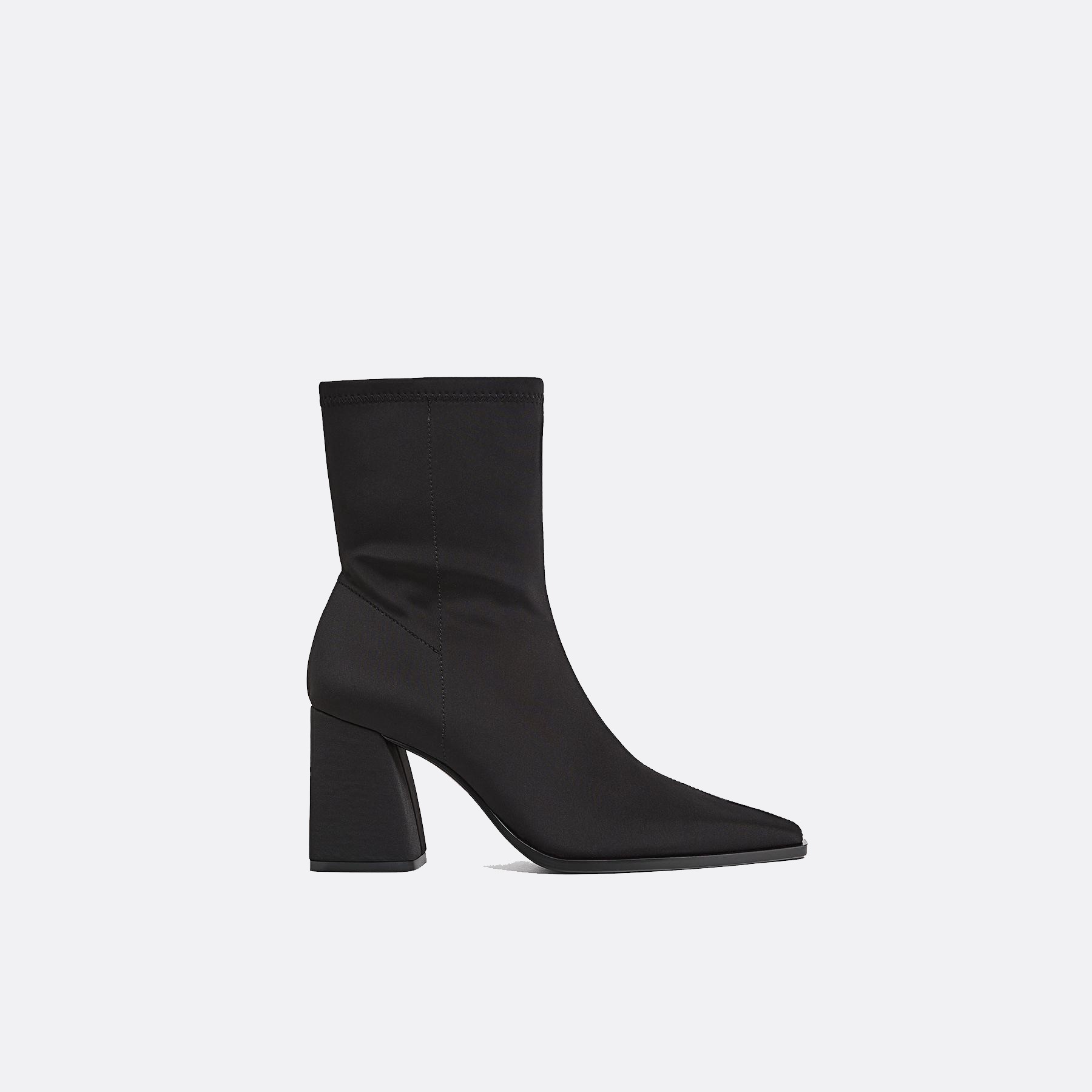 Stradivarius – بوت نسائي بستايل عصري من خامة ستريتش بكعب عالي بلون أسود