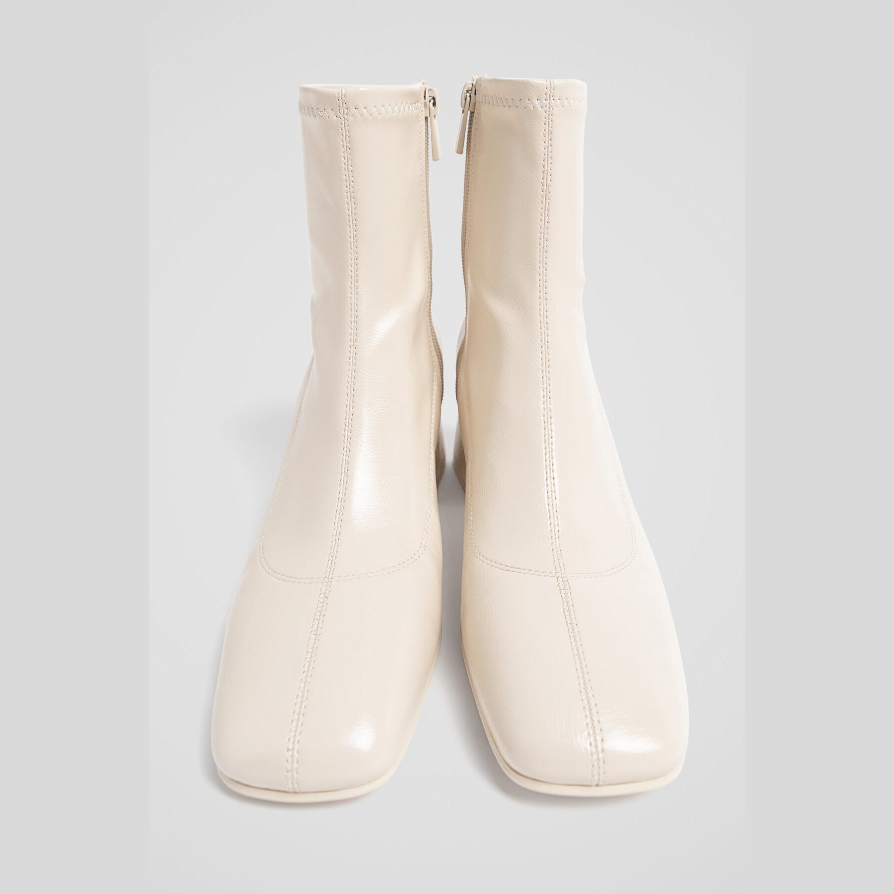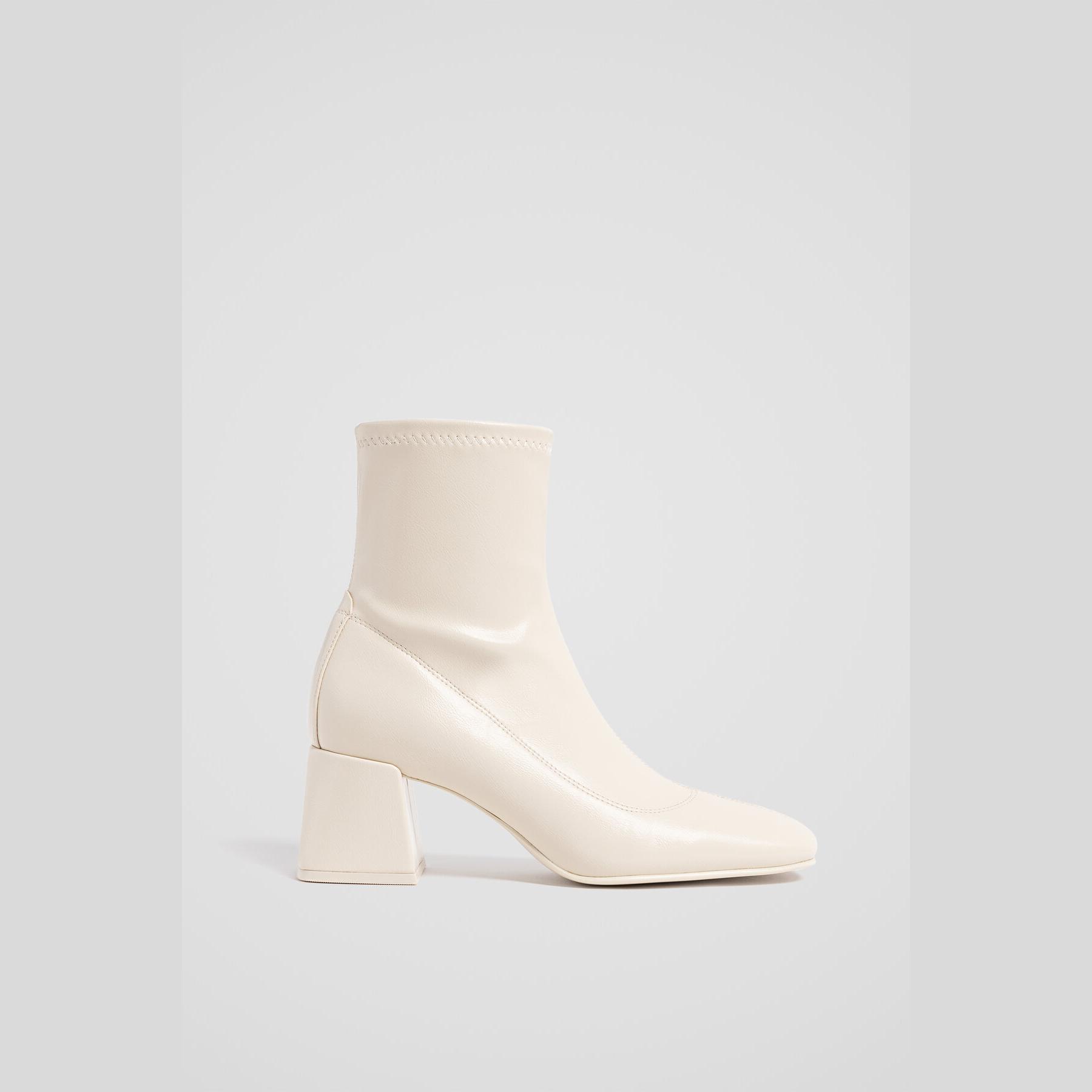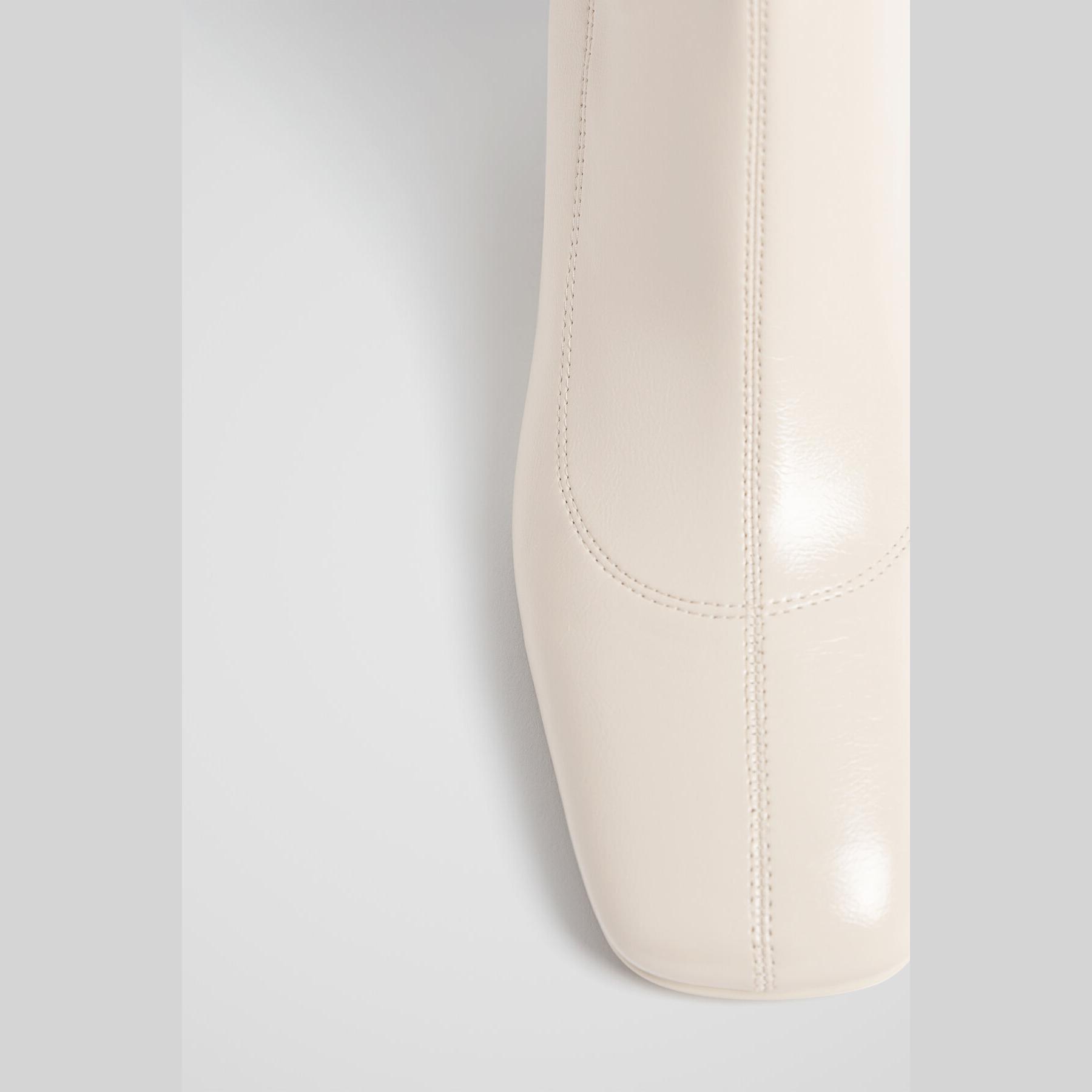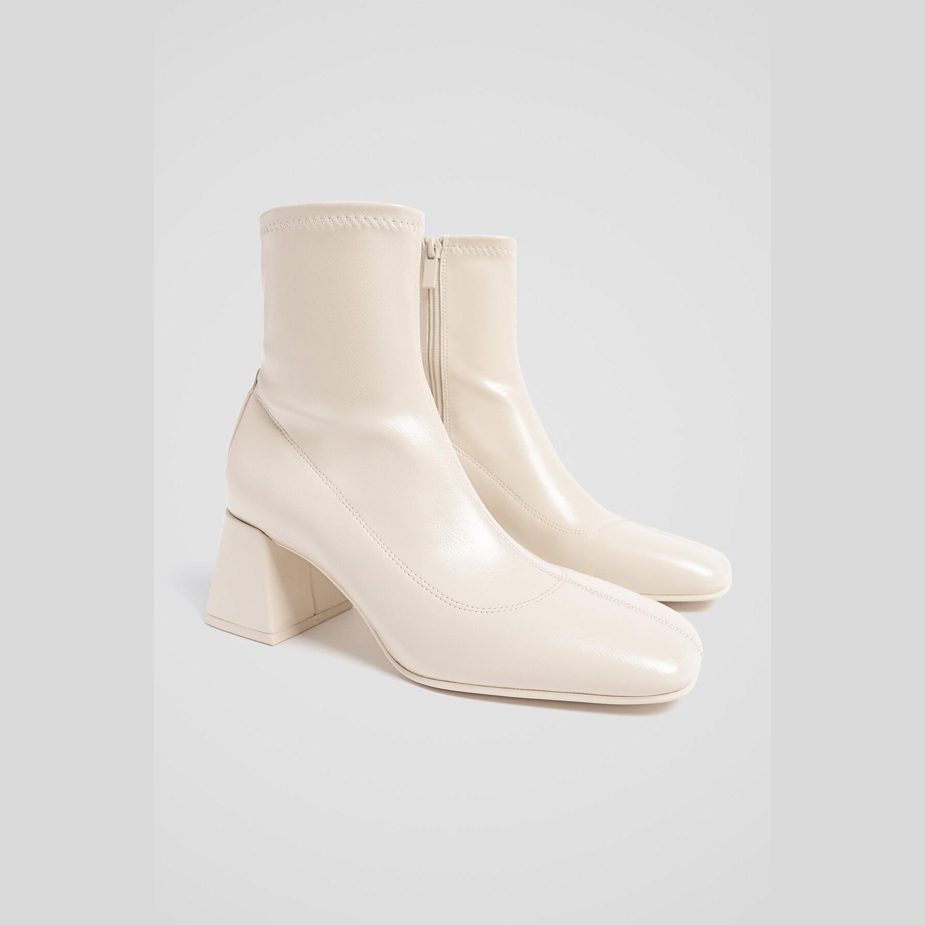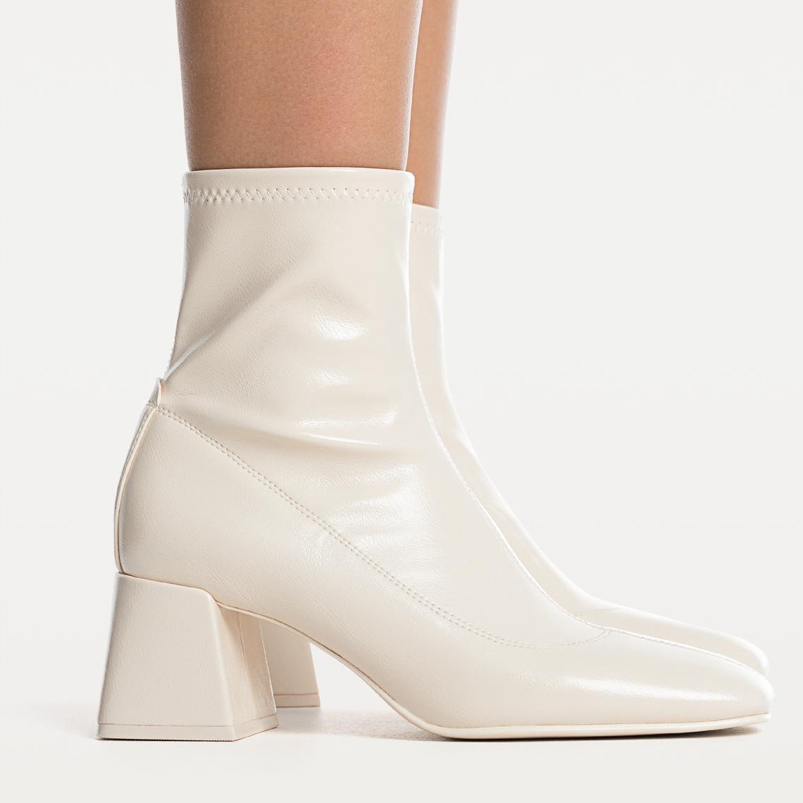 Stradivarius – بوت نسائي بستايل لامع من الجلد الصناعي بكعب بلوكي بلون إكرو