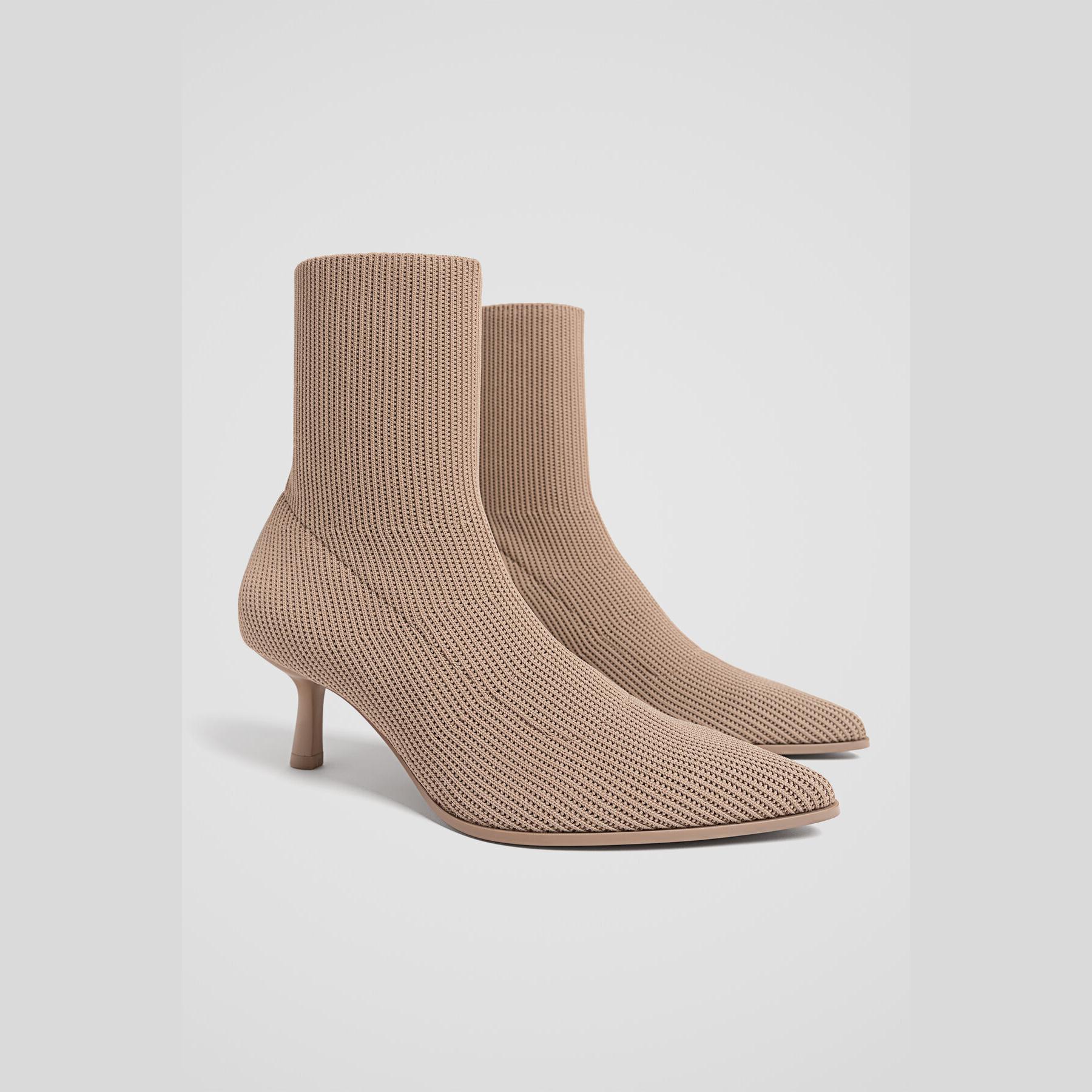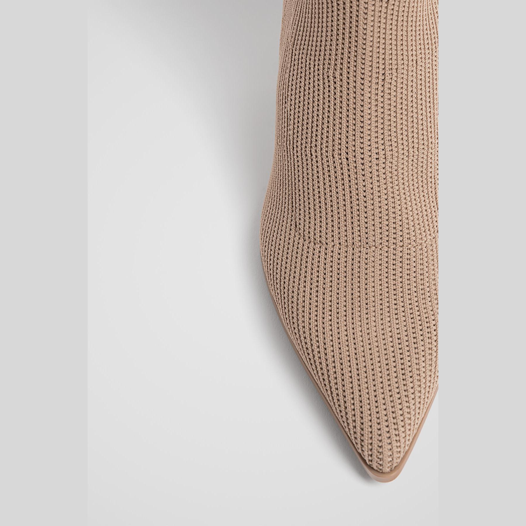 أضيفي لمسة ناعمة وعصرية إلى إطلالتك مع هذا البوت الأنيق من Stradivarius، المصمم بخامة محبوكة مرنة تلتف حول الكاحل بانسيابية وأناقة. يأتي بلون بيج حيادي مع كعب رفيع بارتفاع 6 سم، ليمنحك مظهراً أنثوياً جذاباً وثباتاً في كل خطوة.