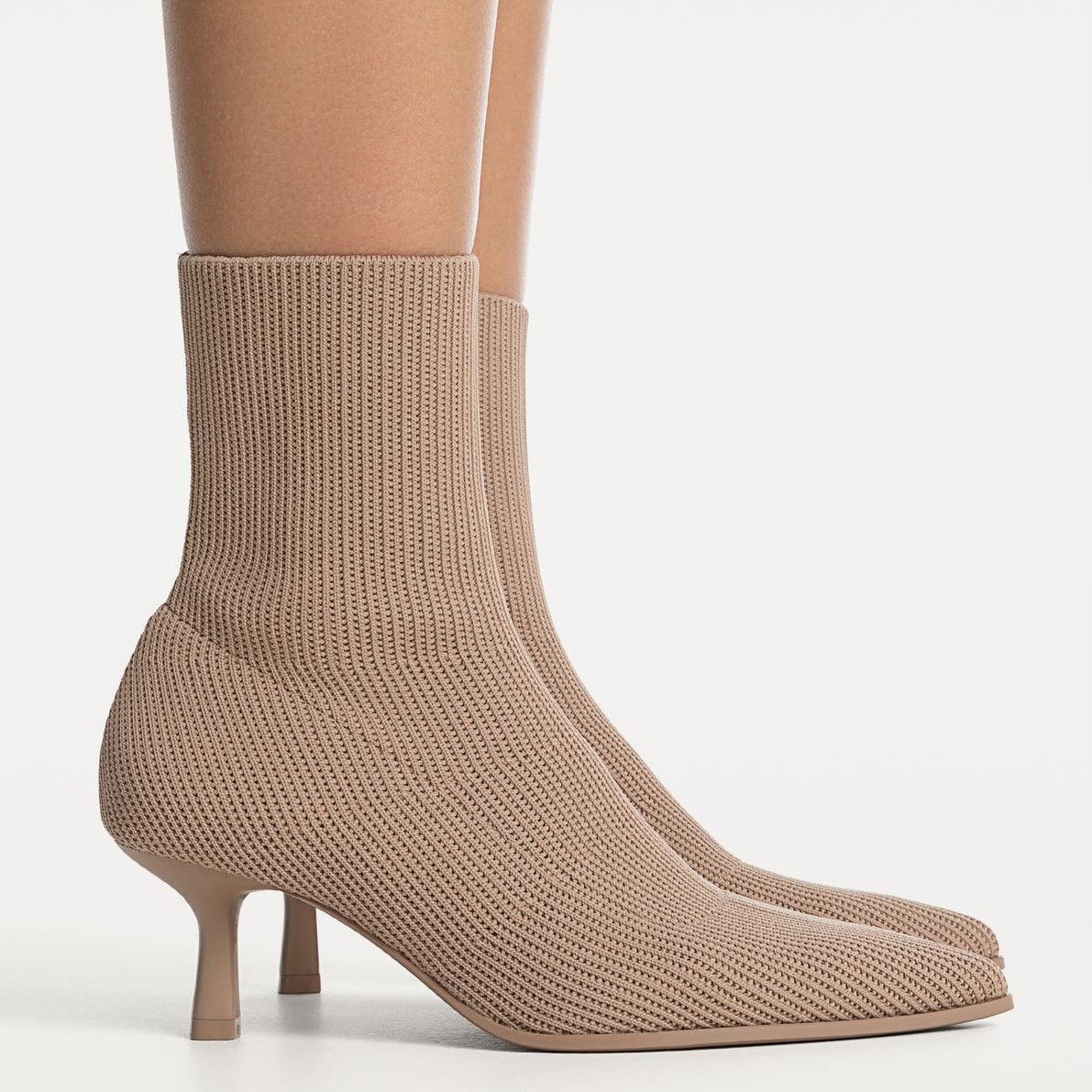 Stradivarius – بوت نسائي بستايل محبوك عصري وكعب رفيع بلون بيج