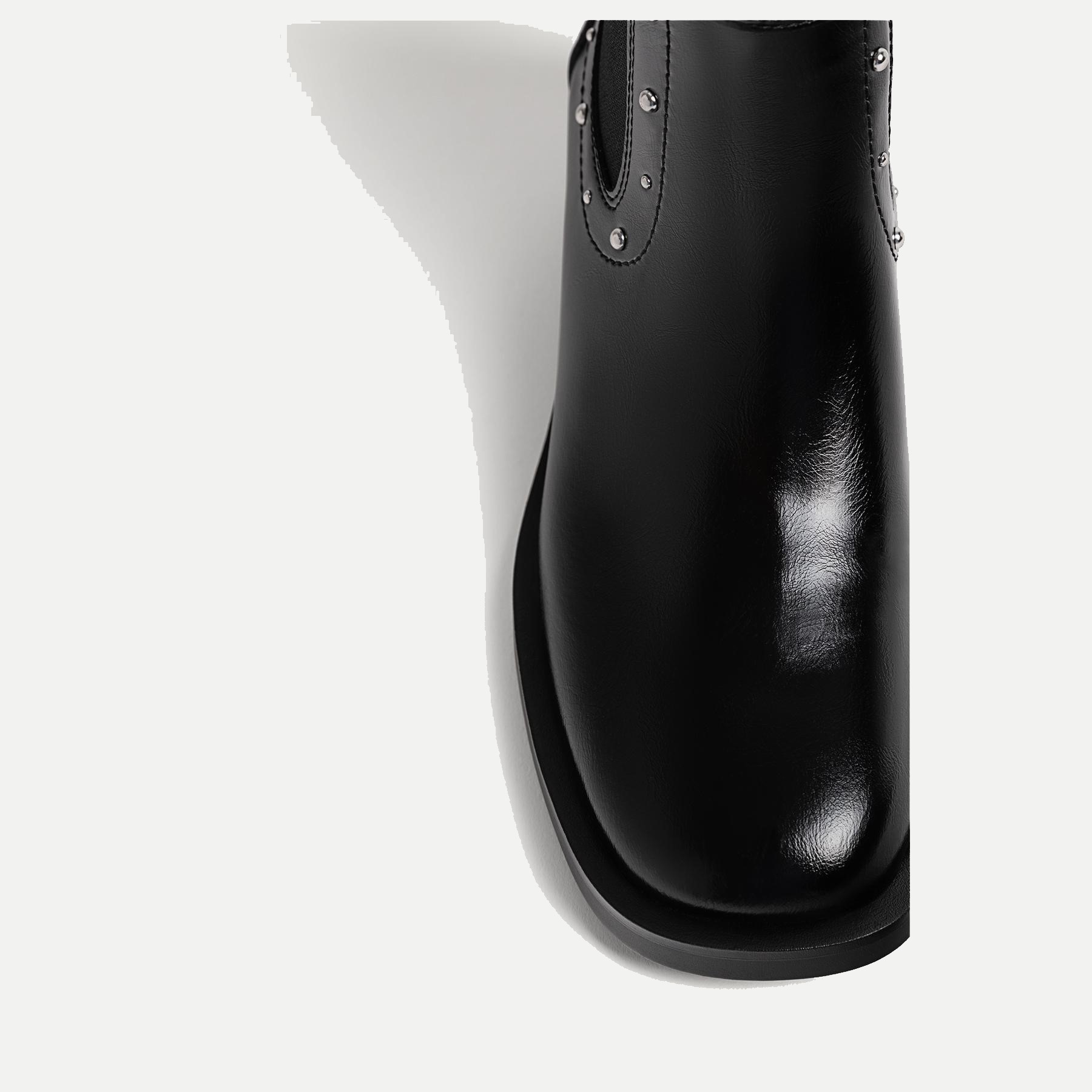 Stradivarius – بوت نسائي بستايل زِمبالي عصري وكعب متوسط بلون أسود
