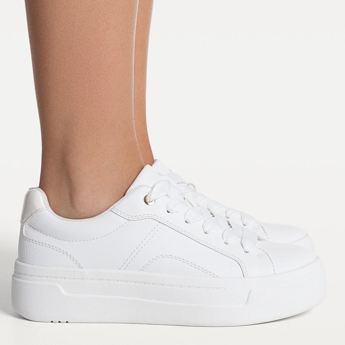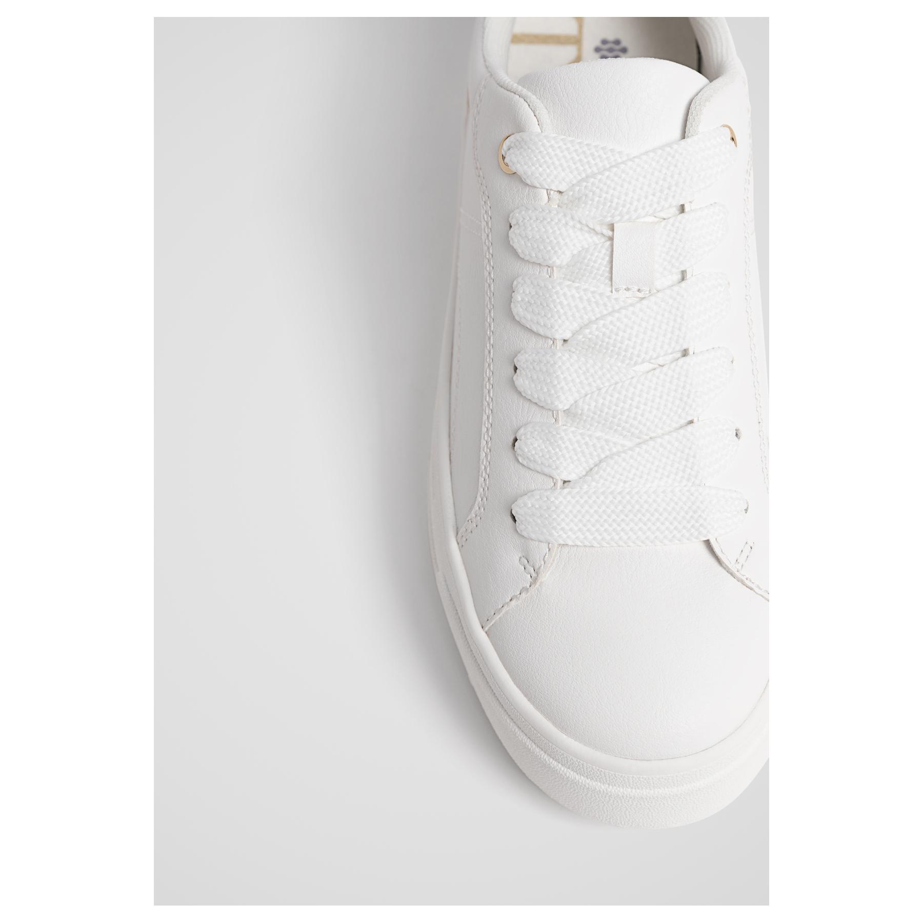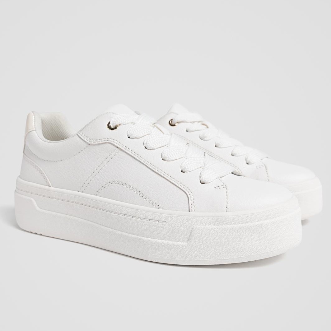 أضيفي لمسة من الحيوية والأناقة إلى إطلالتك اليومية مع هذا الحذاء الرياضي من Stradivarius، المصمم بلون أبيض نقي وتفاصيل كعب ملوّن تمنحه طابعاً عصرياً ومميزاً. يأتي بخامة جلد صناعي ناعمة ورباط أمامي كلاسيكي، مع نعل مسطح مريح وارتفاع كعب قصير (1–4 سم) مثالي للمشي اليومي.