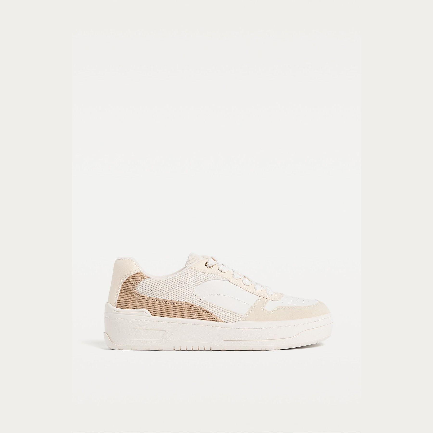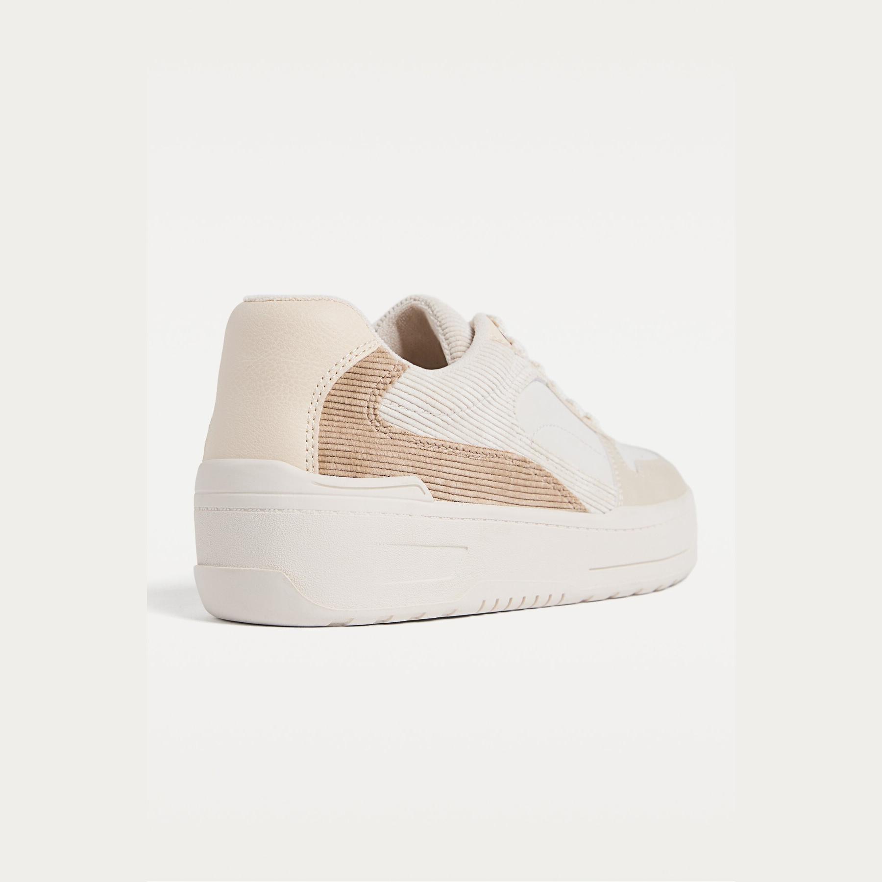 Stradivarius – حذاء نسائي رياضي Flatform بخامة سويد وتفاصيل ناعمة بلون بيج