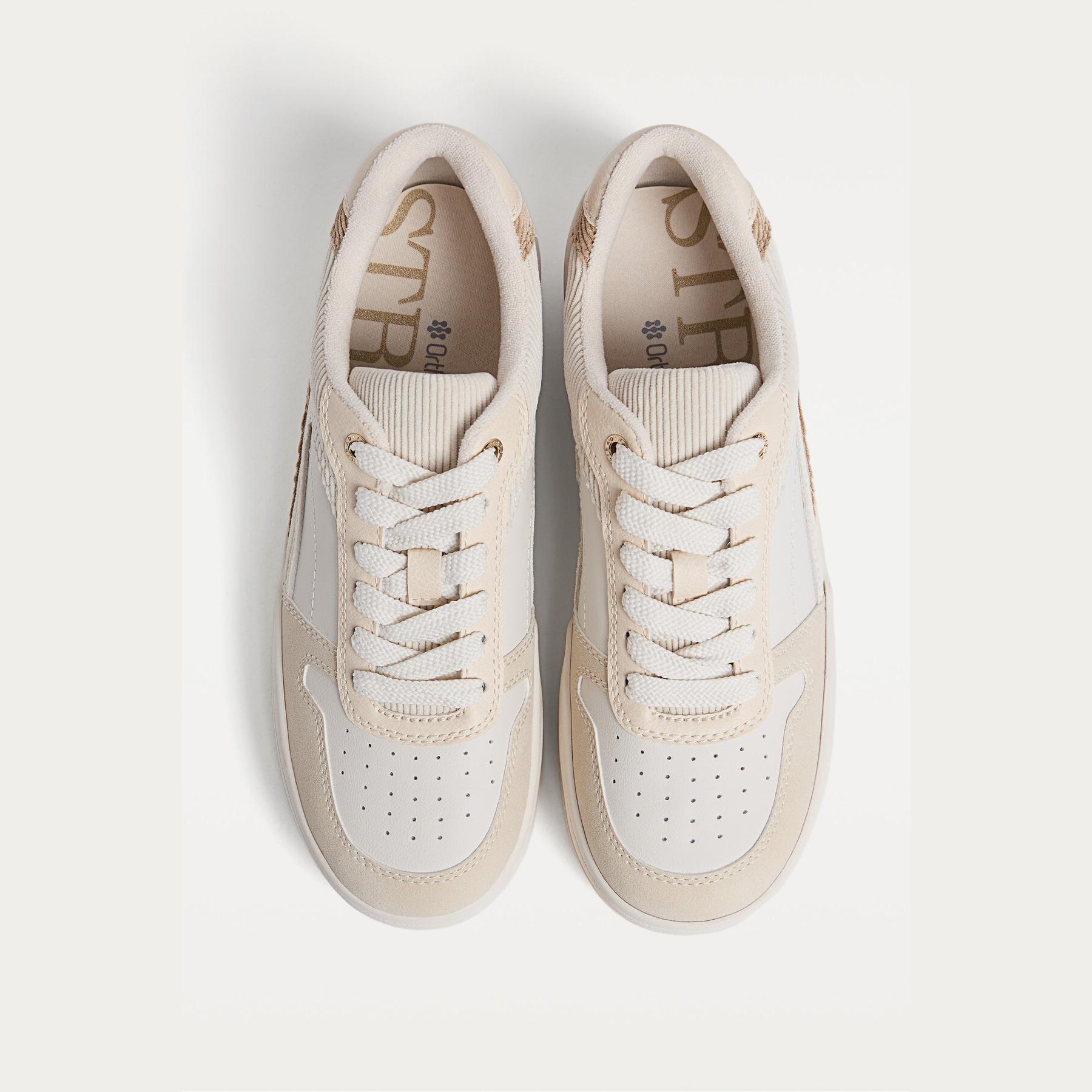 ارتقي بإطلالتك اليومية مع هذا الحذاء الرياضي من Stradivarius، المصمم بأسلوب Flatform يمنحك ارتفاعاً مريحاً وأناقة عصرية. يجمع بين خامة السويد الفاخرة والنسيج الناعم، ويأتي بلون بيج حيادي يناسب مختلف الإطلالات. النعل المرتفع بارتفاع 5 سم يضيف لمسة جريئة دون التضحية بالراحة.