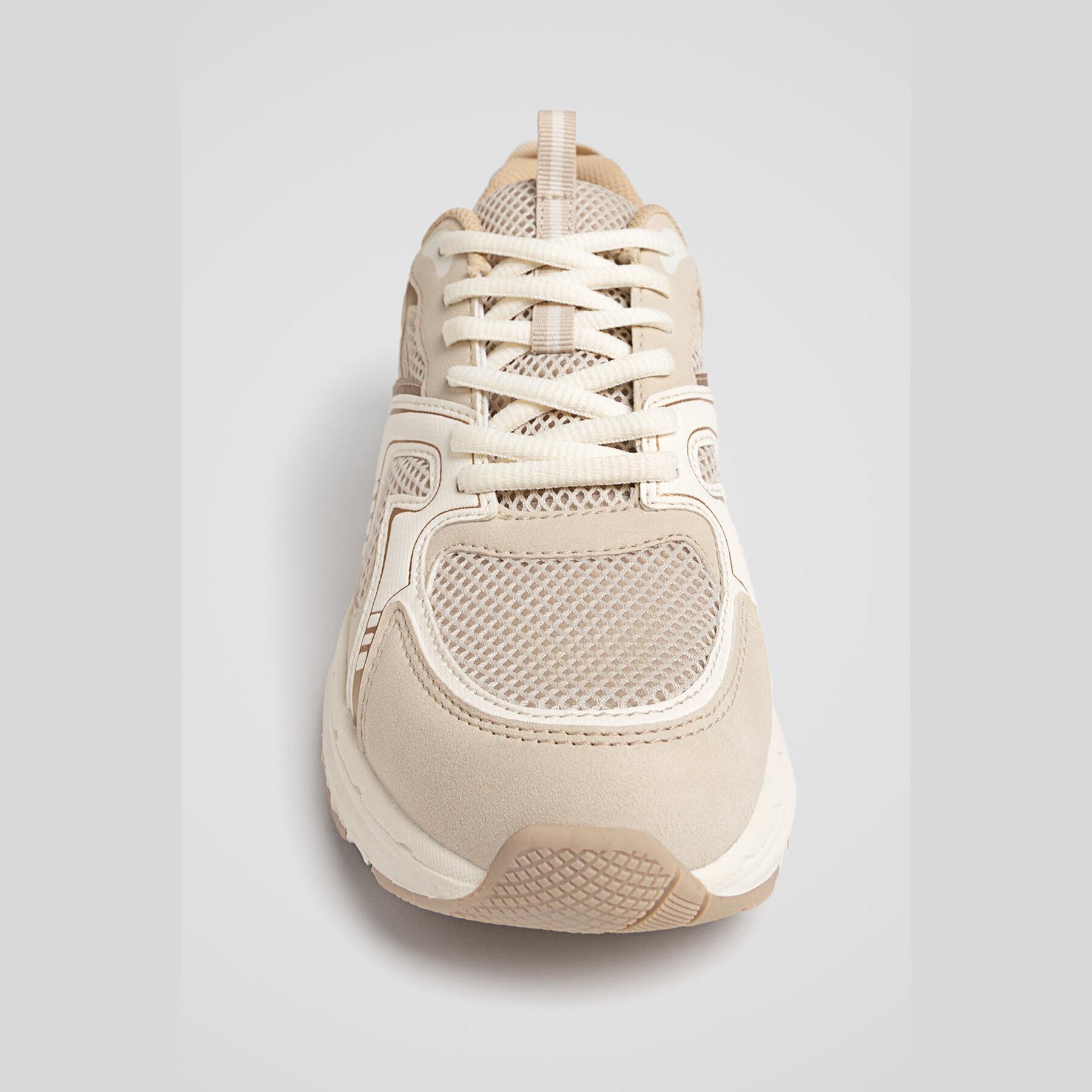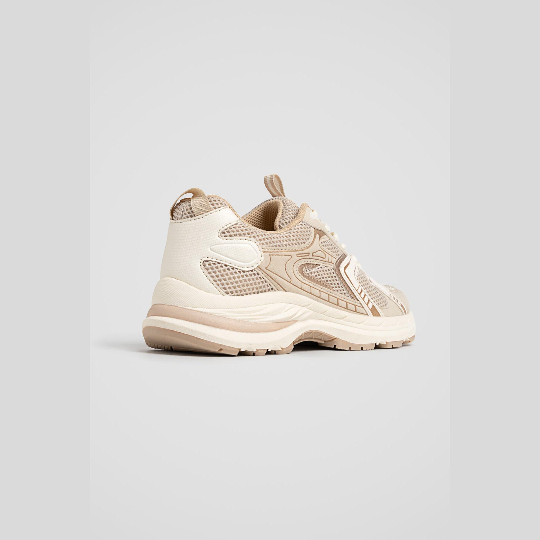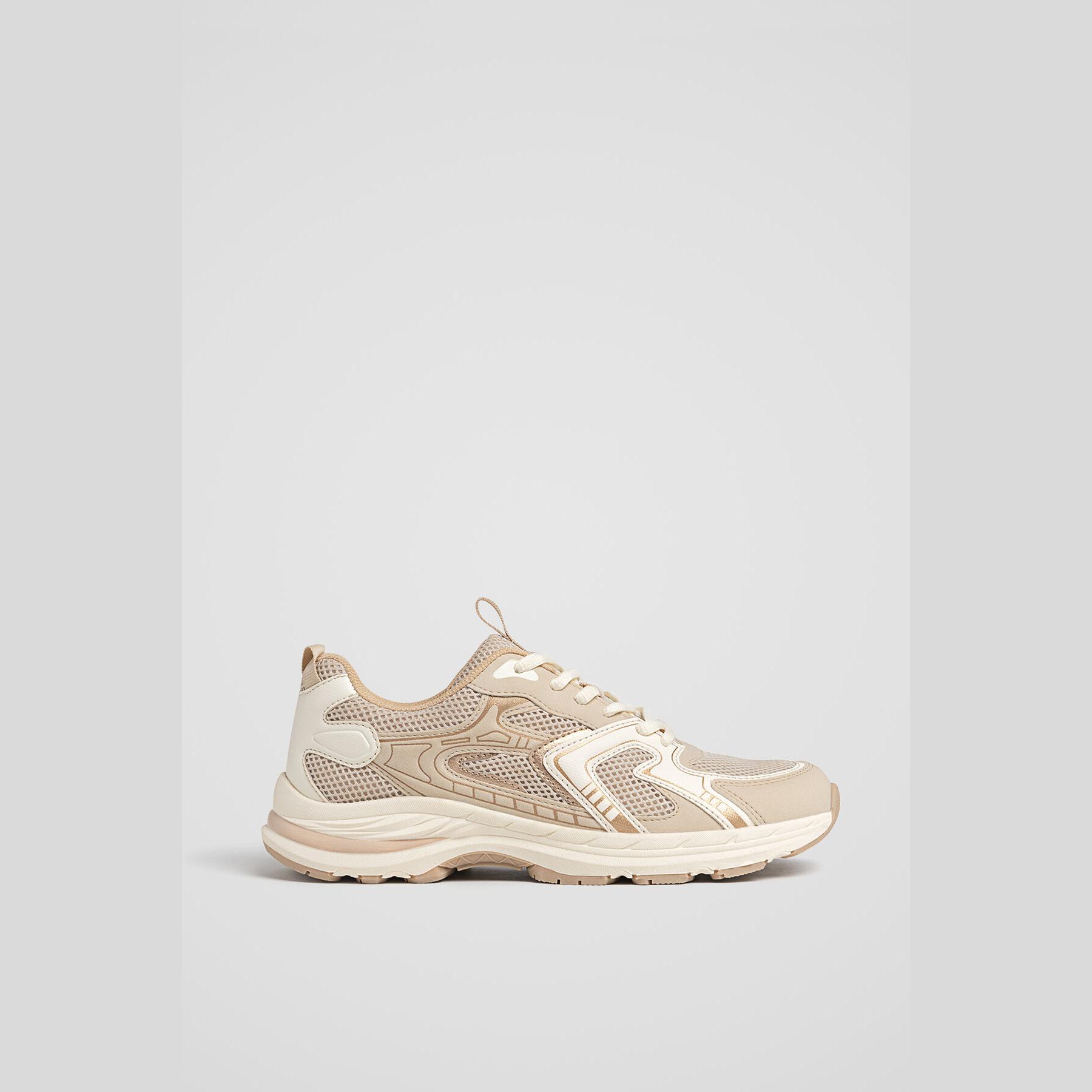 Stradivarius – حذاء نسائي رياضي بتصميم كونتراست عصري ونعل مريح بلون أبيض وإكرو