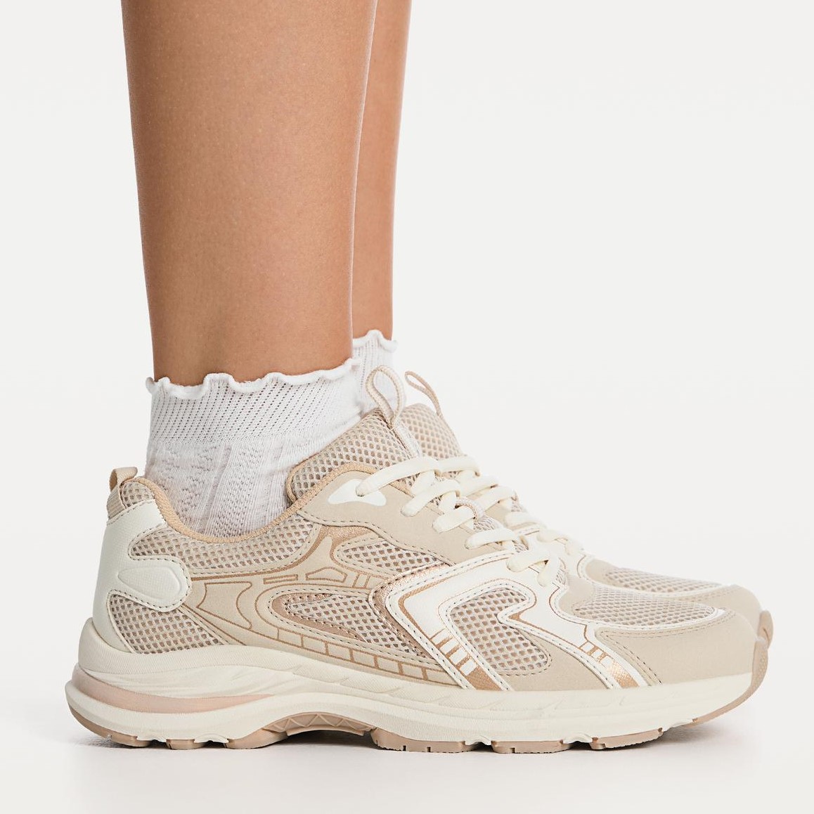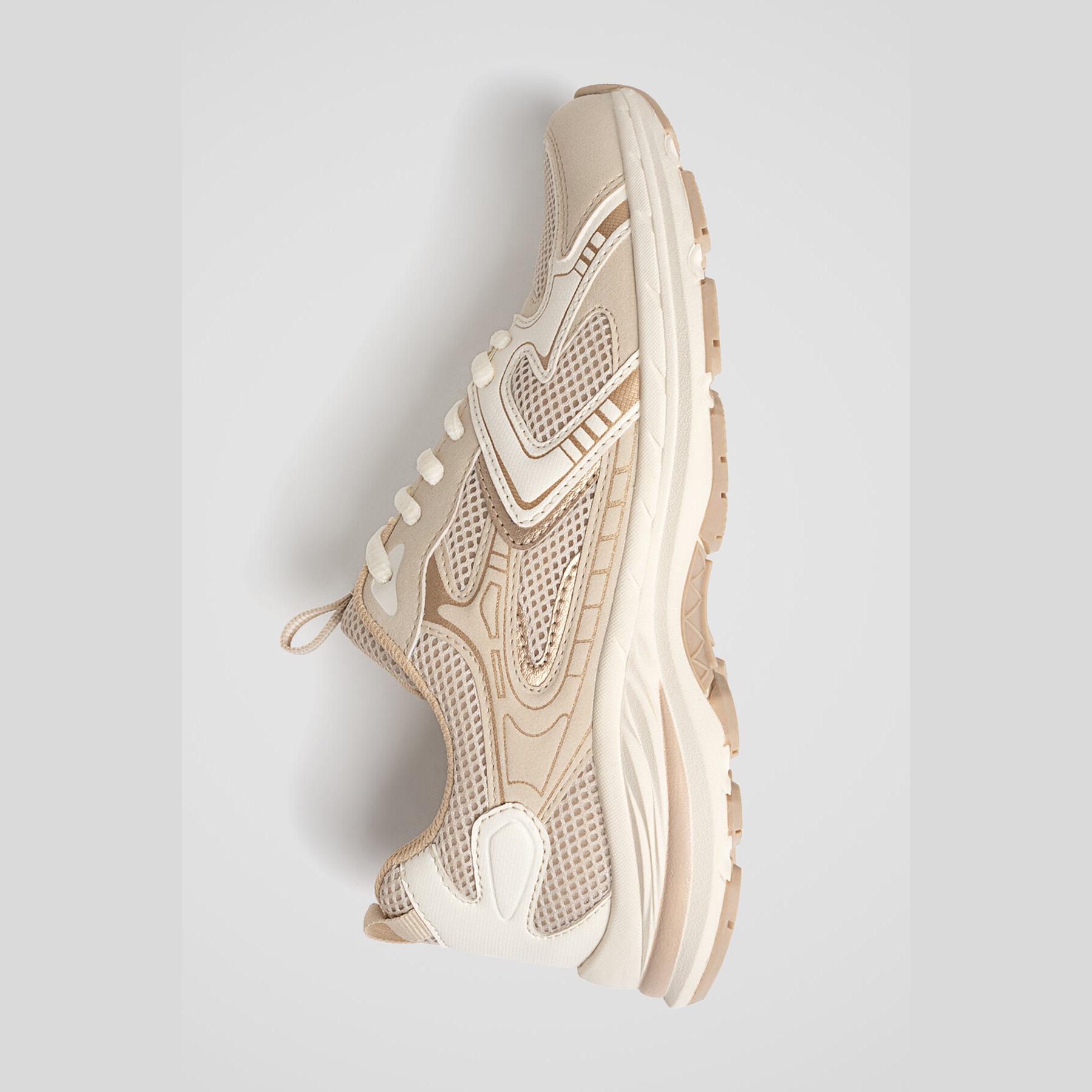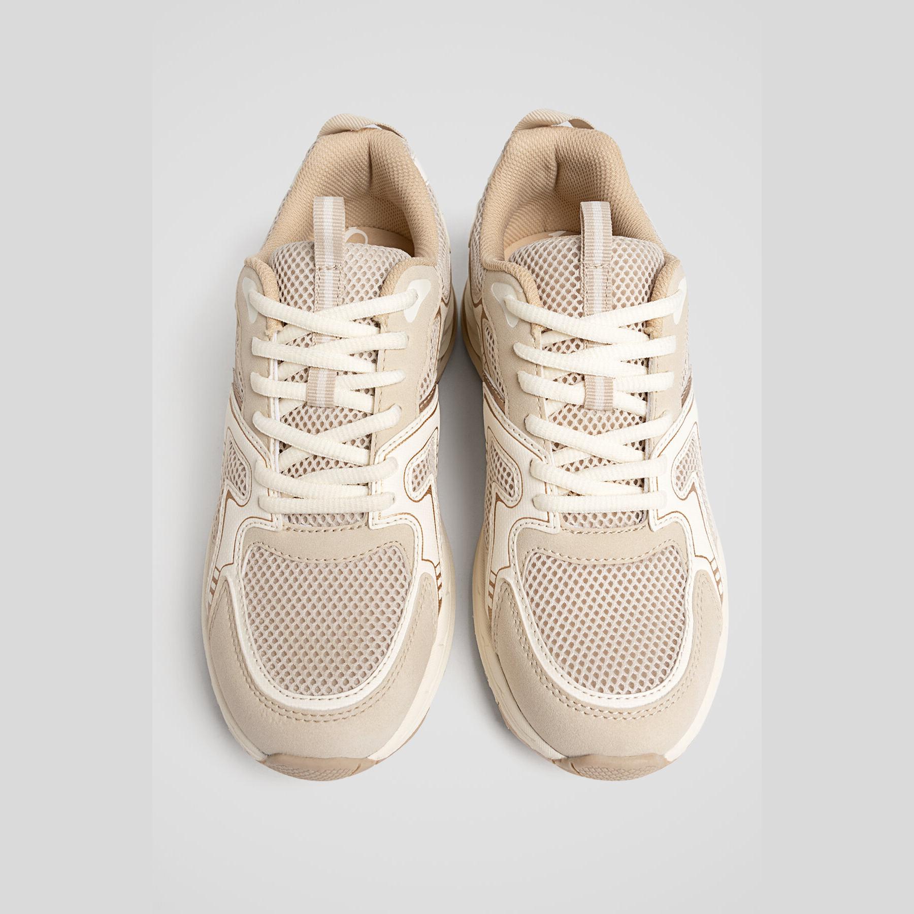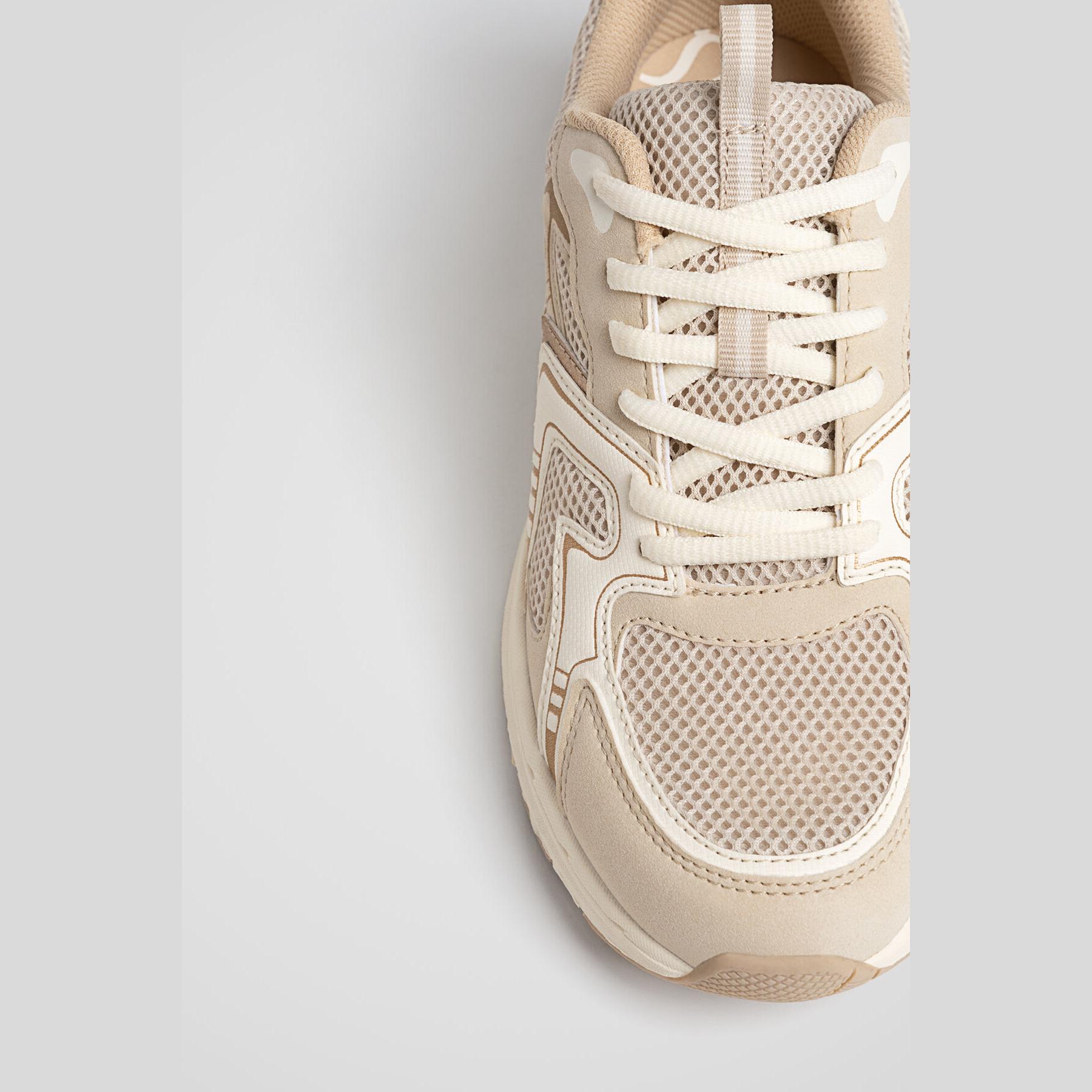 Stradivarius – حذاء نسائي رياضي بتصميم كونتراست عصري ونعل مريح بلون أبيض وإكرو