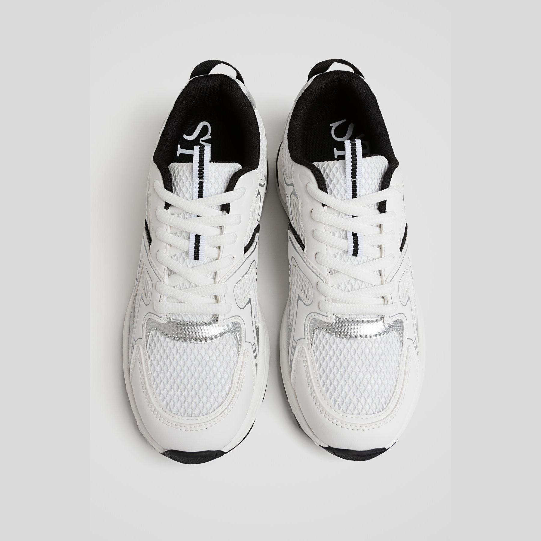 Stradivarius – حذاء نسائي رياضي بتفاصيل أنيقة ونعل مريح بلون أبيض