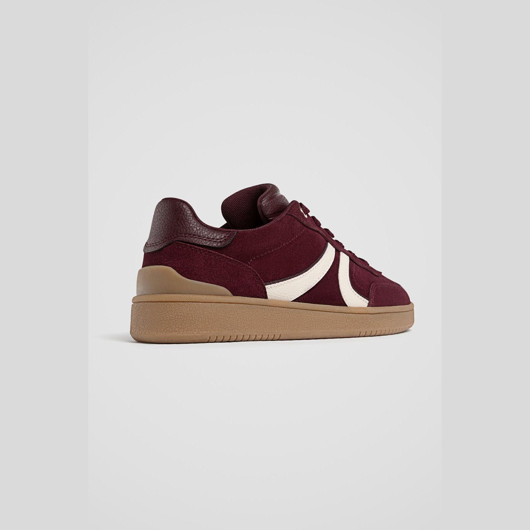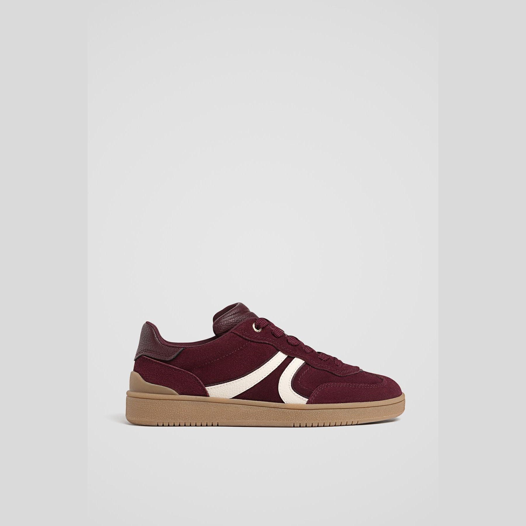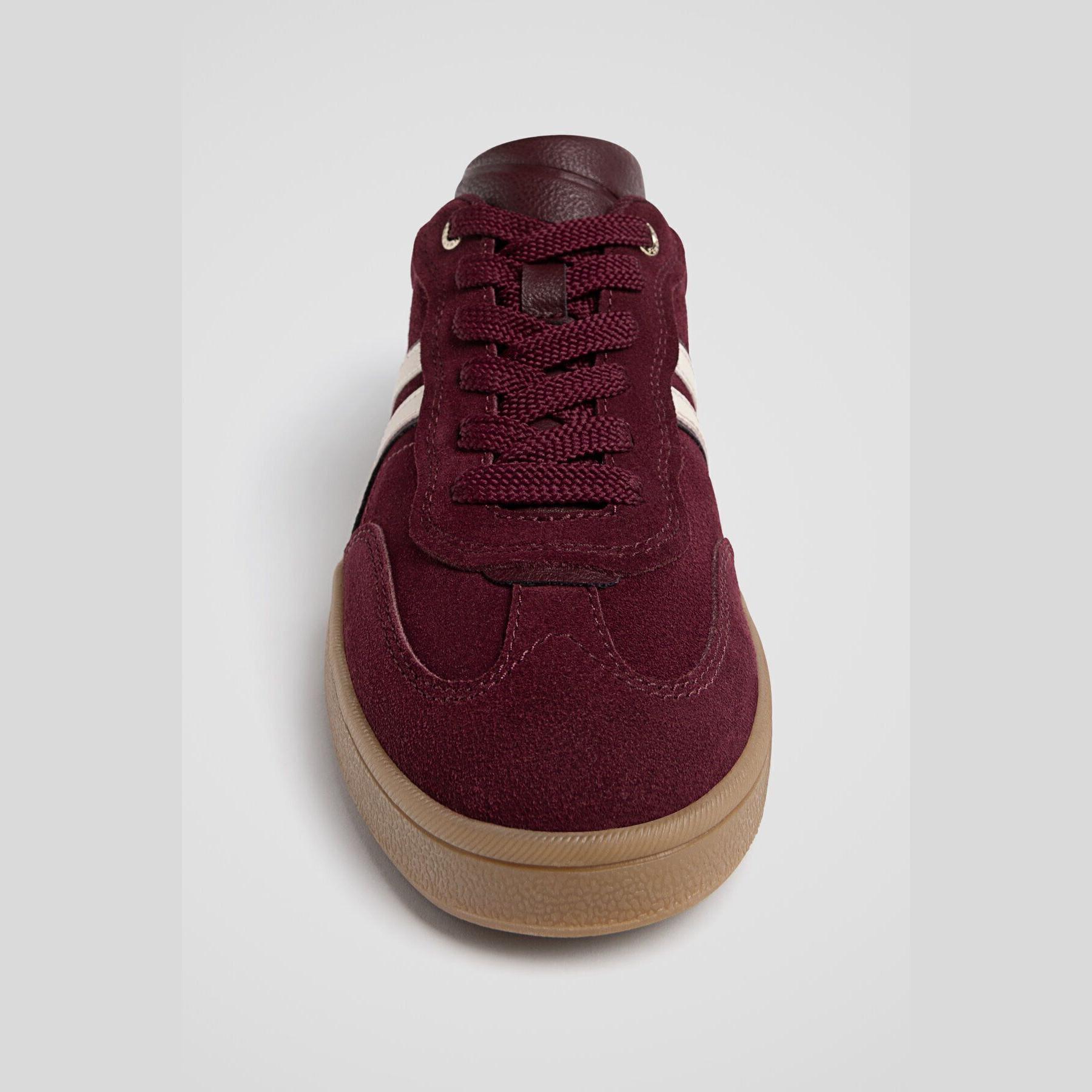 Stradivarius – حذاء نسائي رياضي من الجلد الطبيعي بكعب متوسط بلون بوردو