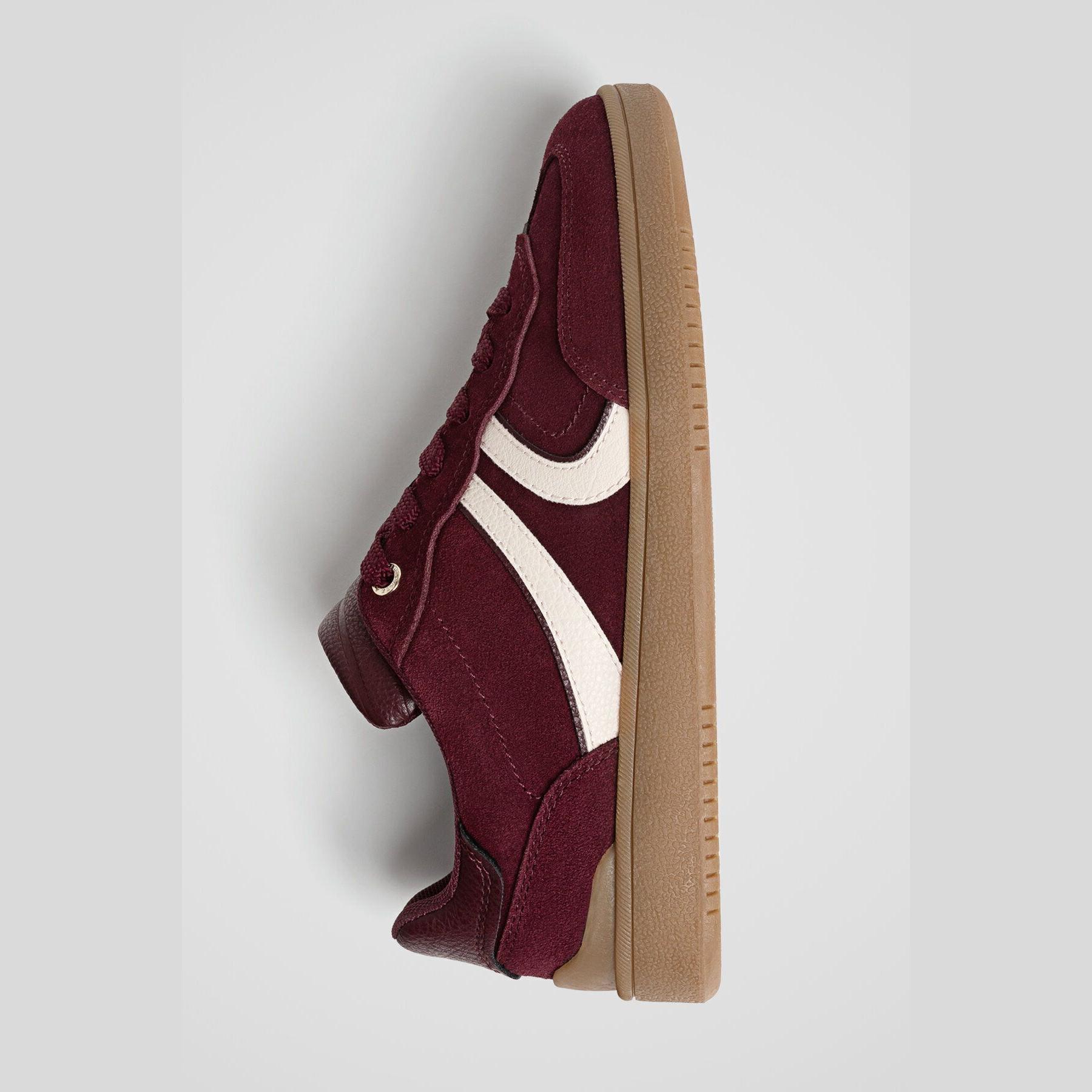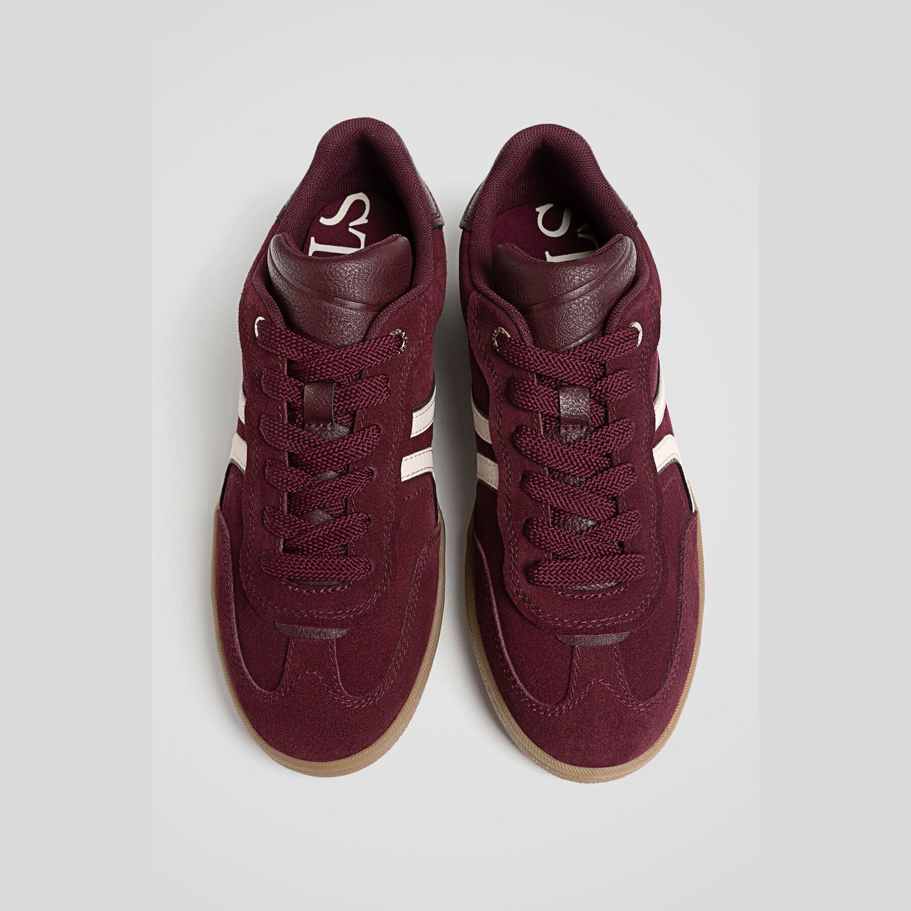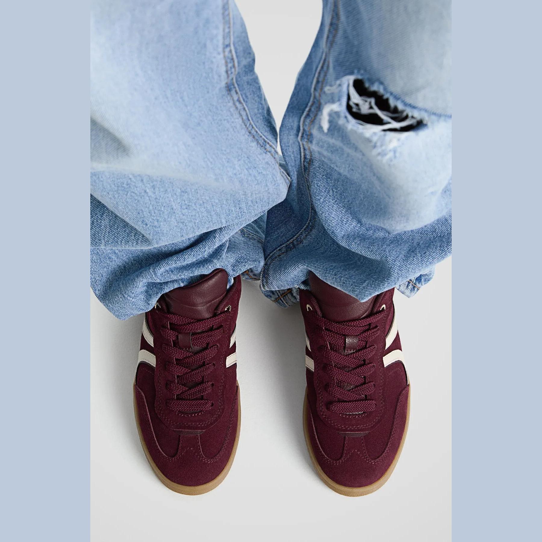 Stradivarius – حذاء نسائي رياضي من الجلد الطبيعي بكعب متوسط بلون بوردو