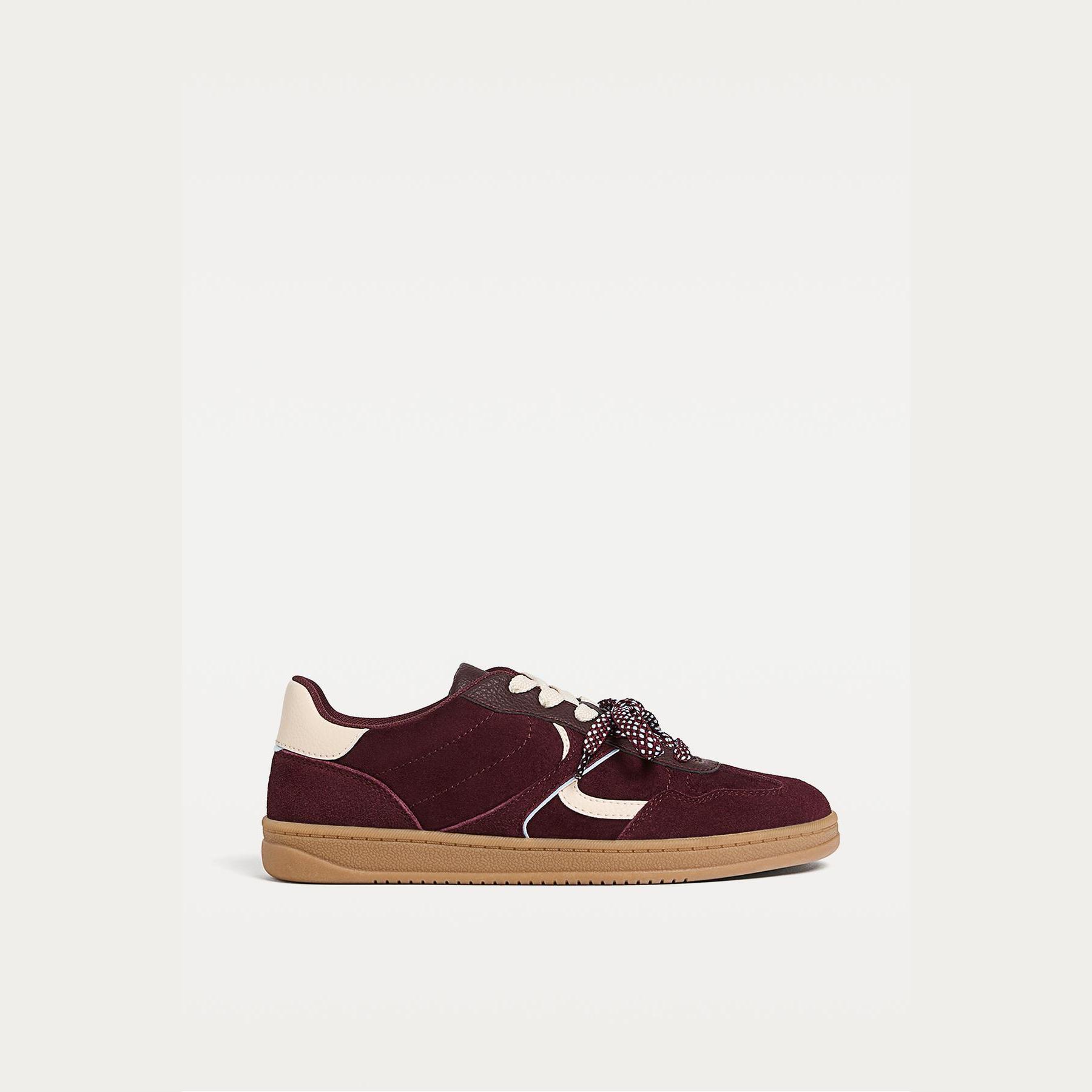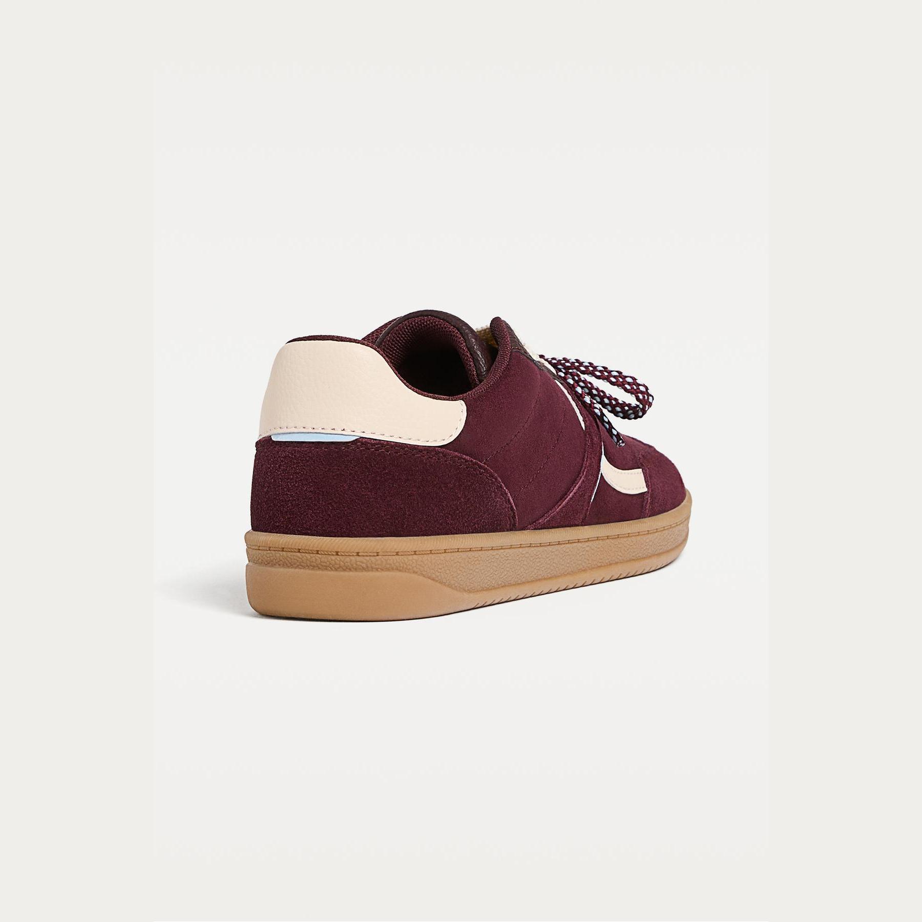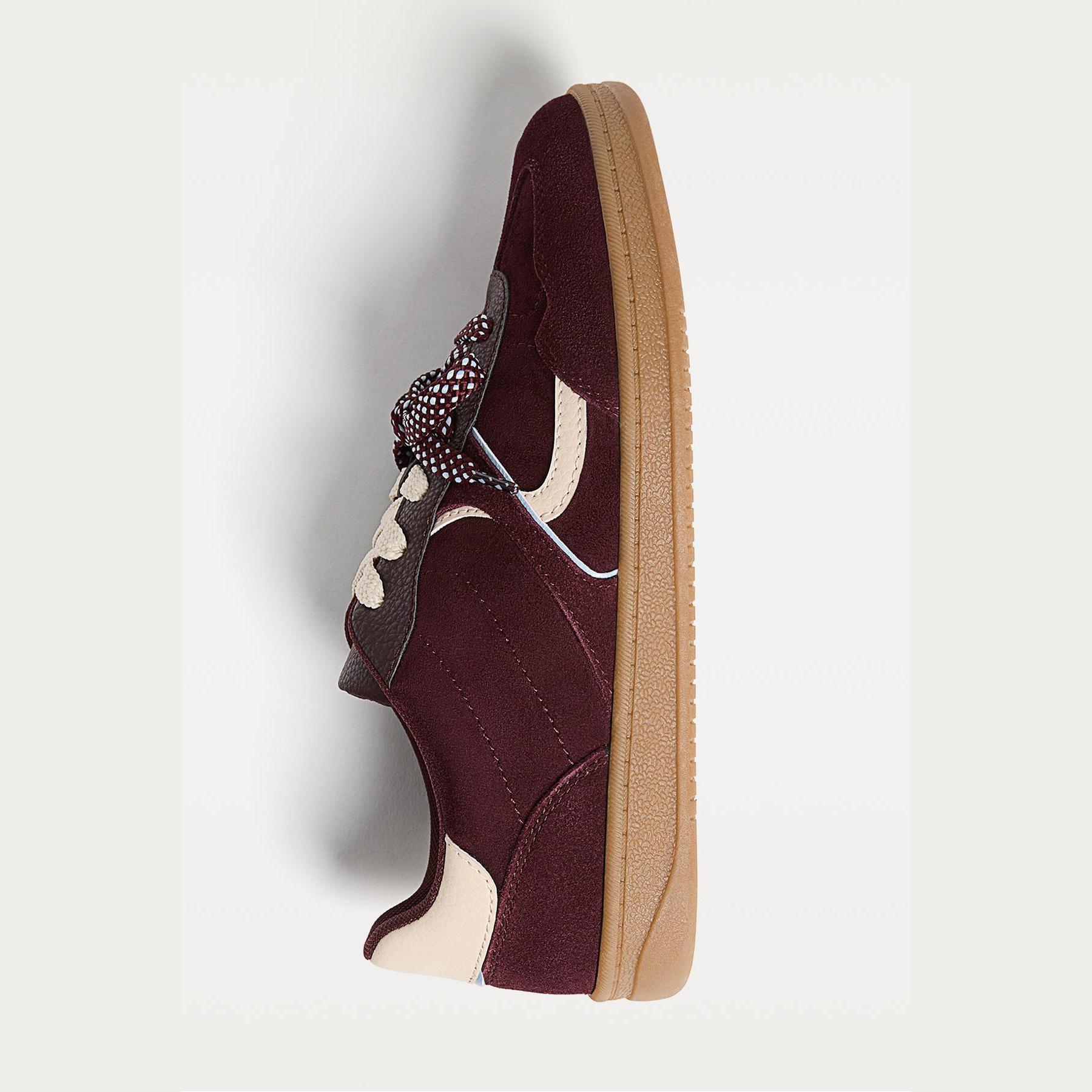 تميّزي بإطلالة كاجوال أنيقة مع هذا الحذاء الرياضي من Stradivarius، المصمم بخامة سويدية ناعمة وتفاصيل كونتراست عصرية. يأتي بلون بوردو جذاب مع نعل مسطح بارتفاع 2.5 سم، ويتميز ببطانة داخلية Ortholite® التي توفر تهوية مثالية وراحة تدوم طوال اليوم.