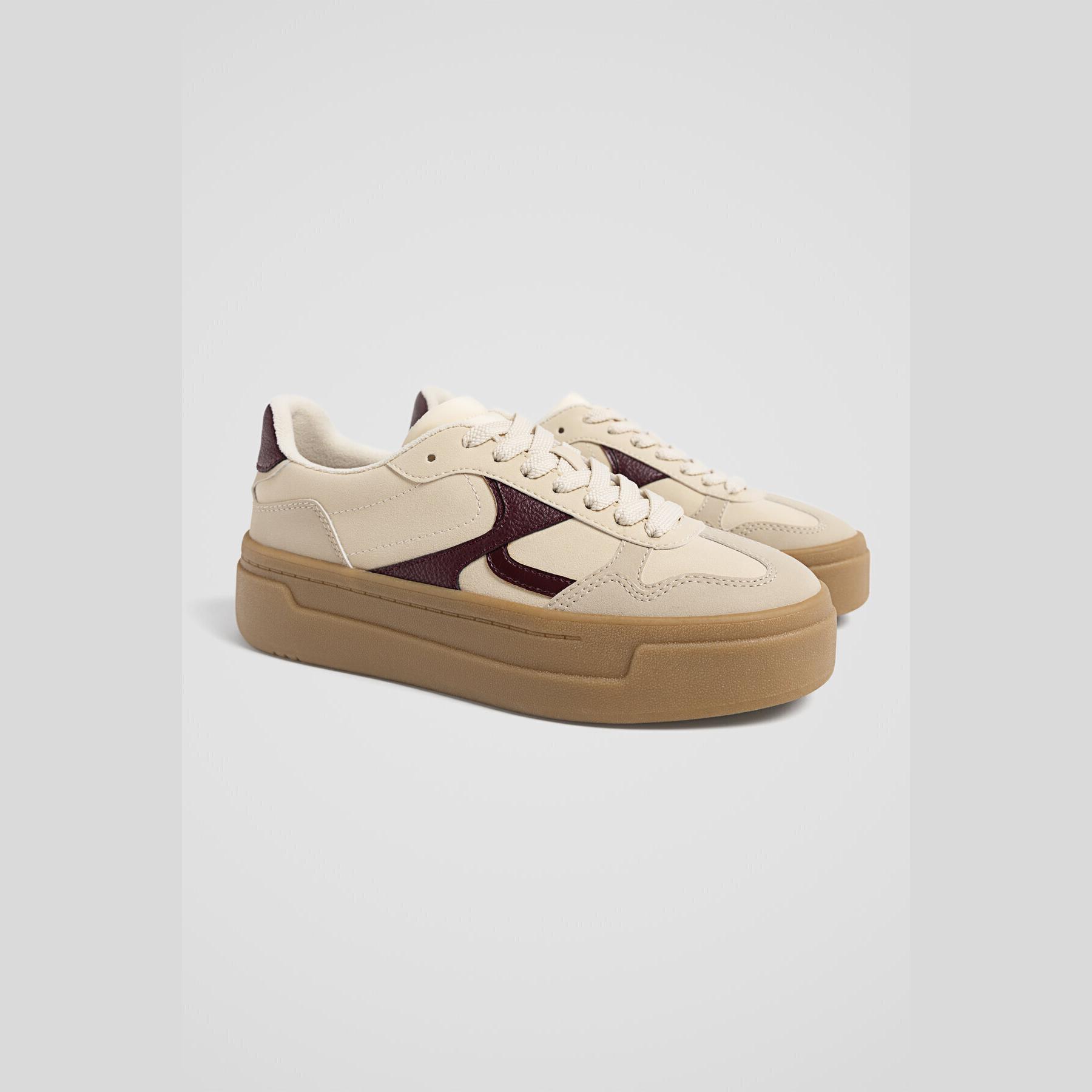 ارتقي بإطلالتك اليومية مع هذا الحذاء الرياضي من Stradivarius، المصمم بأسلوب بلاتفورم أنيق يمنحك ارتفاعاً مريحاً وثباتاً مثاليًا. يأتي بلون بوردو جذاب مع خامة جلد صناعي ناعمة، ورباط أمامي كلاسيكي، ونعل مسطح بارتفاع 4.5 سم يضفي لمسة عصرية على كل خطوة.