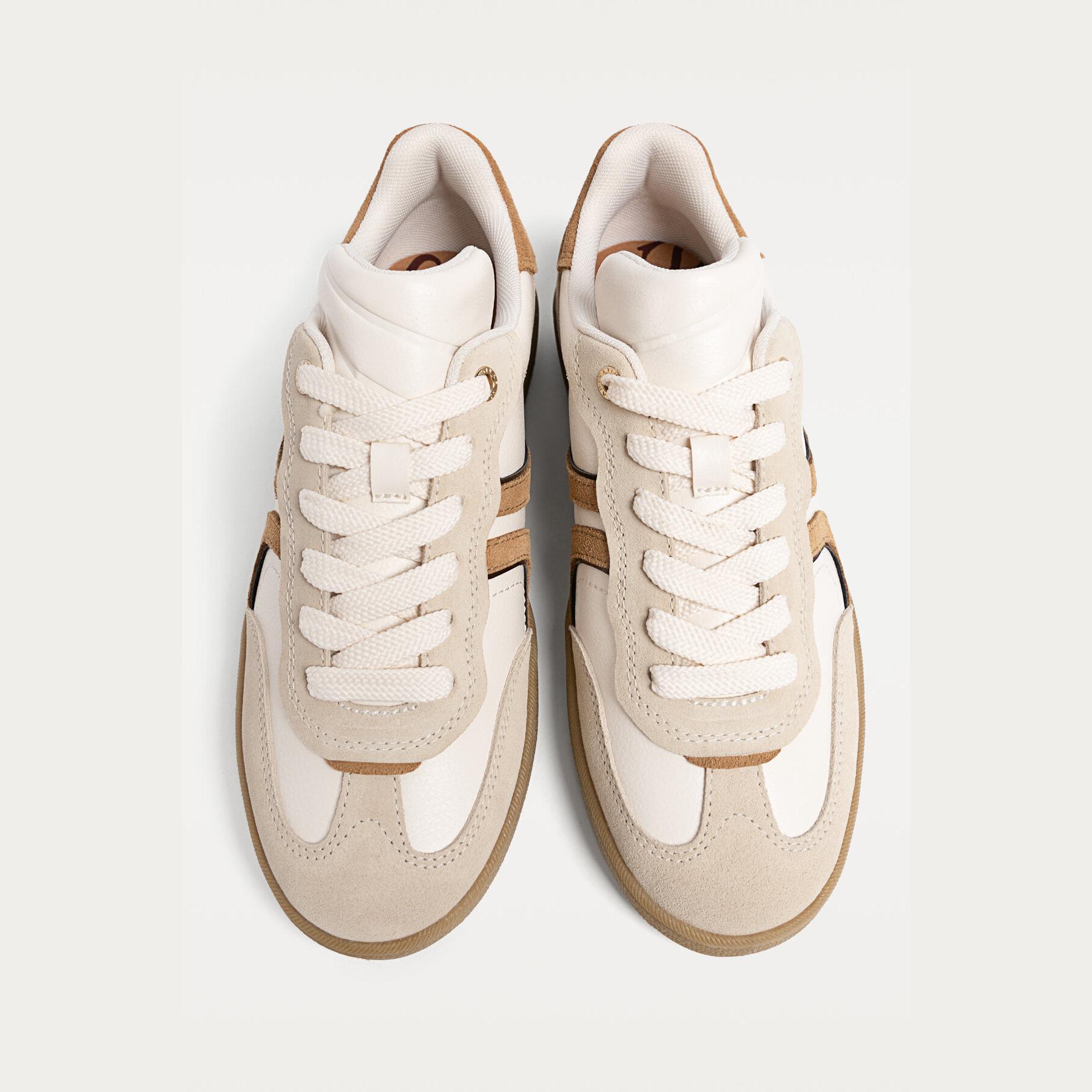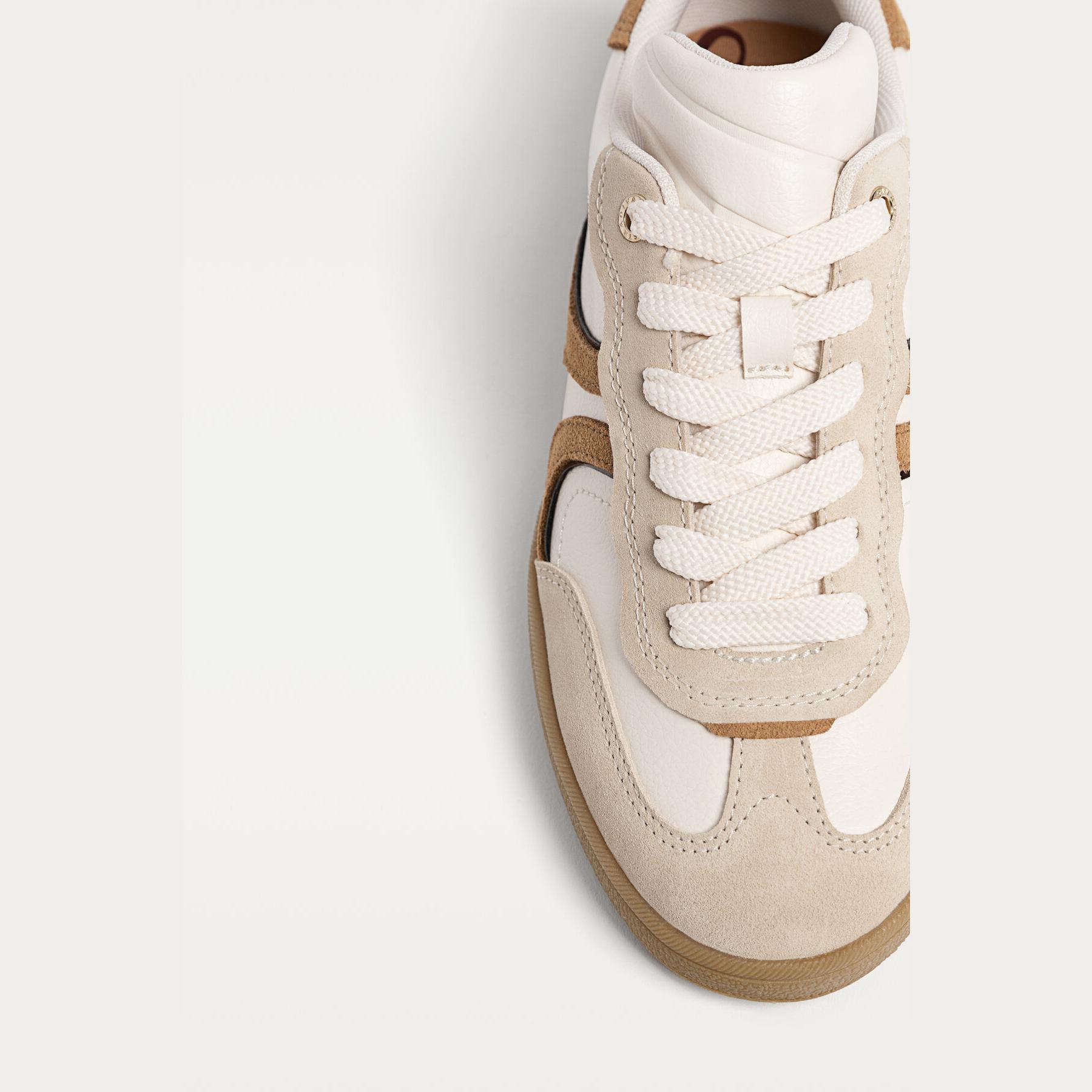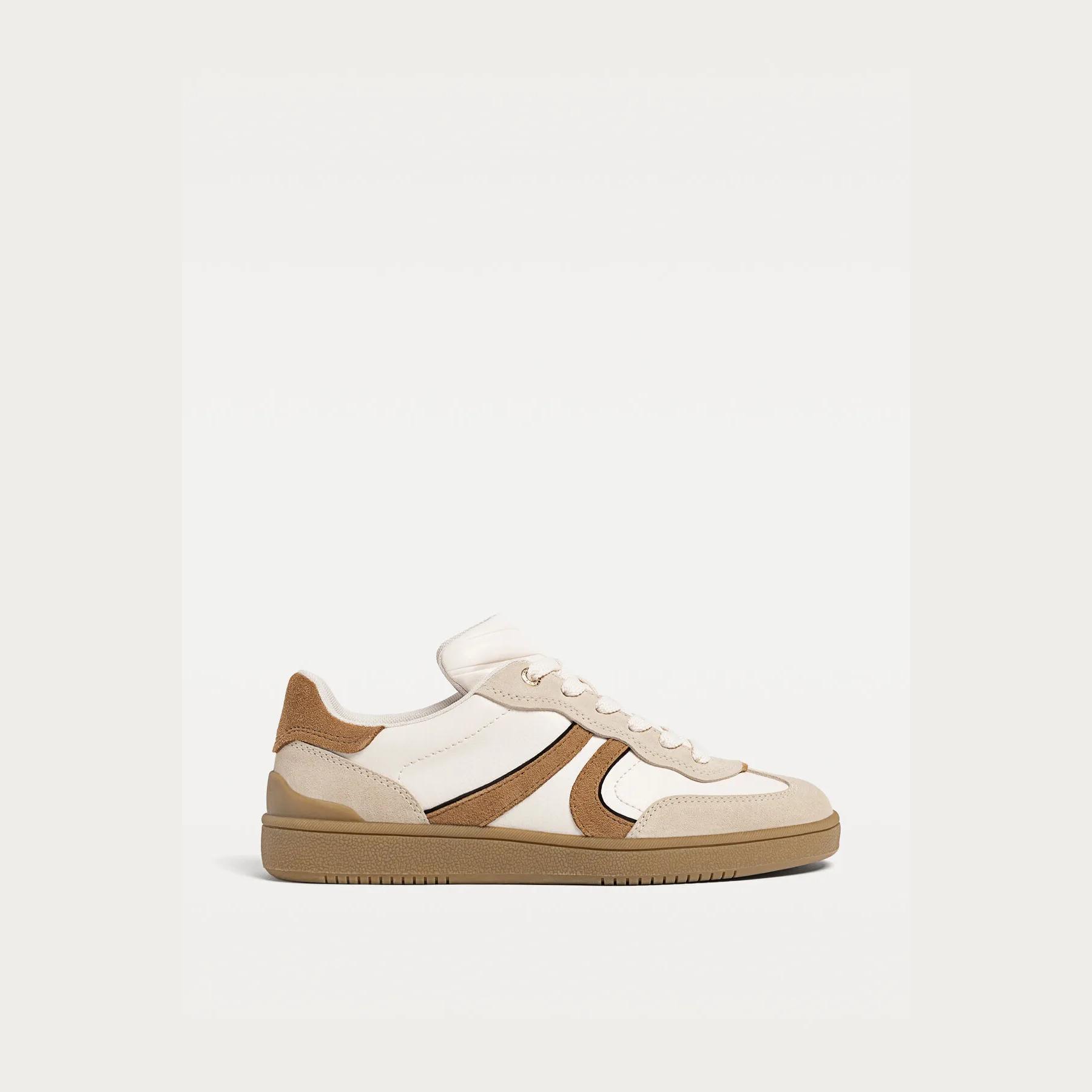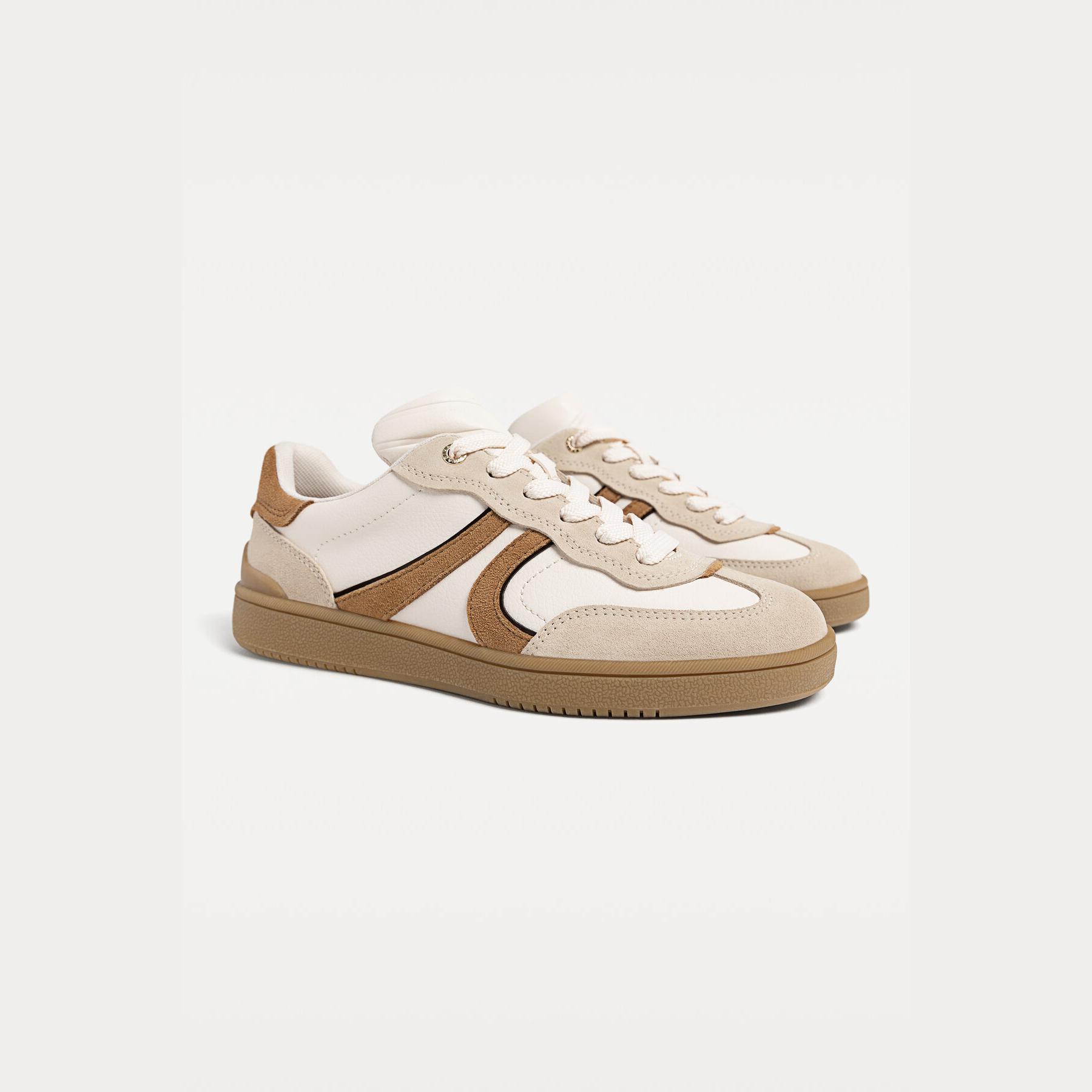 ارتقي بإطلالتك اليومية مع هذا الحذاء الرياضي من Stradivarius، المصمم من جلد بقر طبيعي بنسبة 70% مع لمسة بولي يوريثان لمرونة إضافية. يتميز بتصميم متعدد القطع بألوان متناسقة، ونعل مسطح بارتفاع 4.5 سم يمنحك دعماً مثالياً وثباتاً في كل خطوة. الرباط الأمامي يضمن ثباتاً وانسيابية في الحركة، بينما الكعب المتوسط يضيف لمسة أنثوية أنيقة.