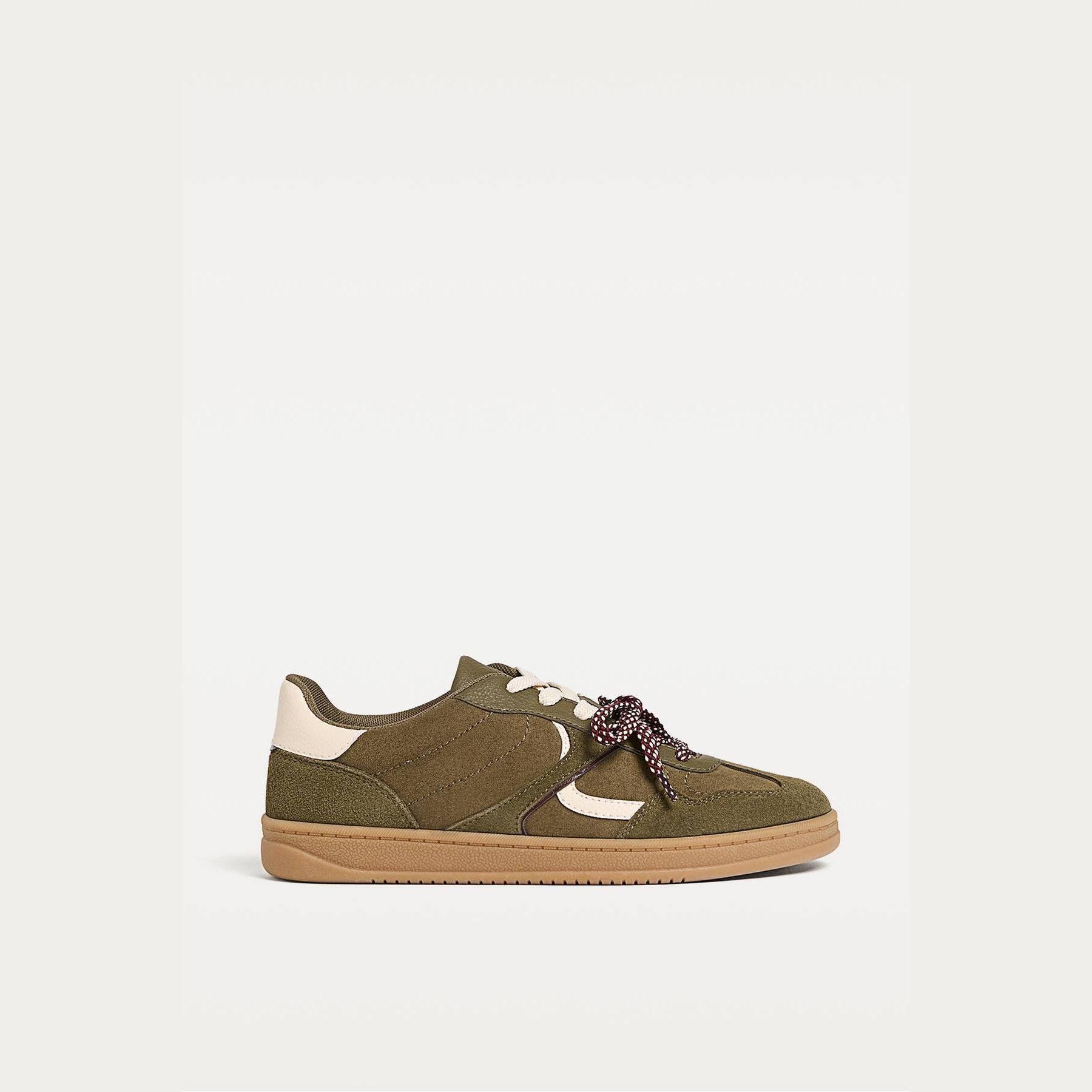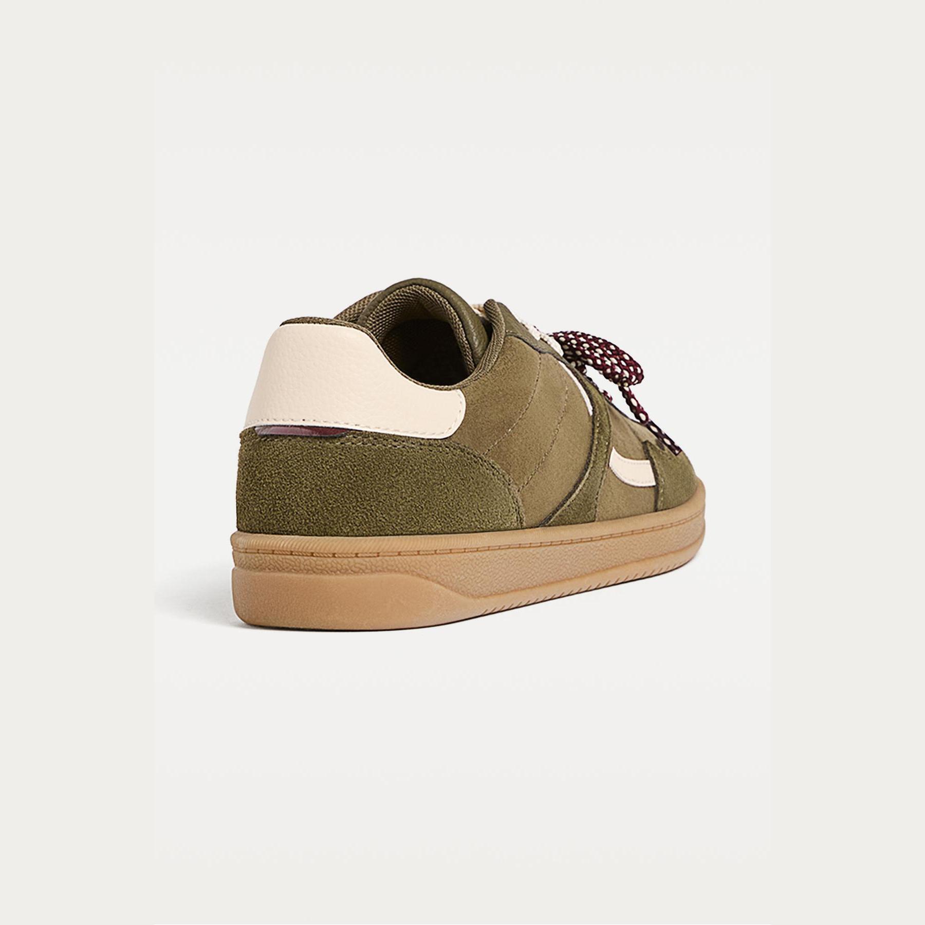 أضيفي لمسة من الأناقة العملية إلى إطلالتك اليومية مع هذا الحذاء الرياضي من Stradivarius، المصمم بخامة سويدية ناعمة وتفاصيل كونتراست أنيقة. يأتي بلون أخضر زيتوني مميز مع نعل مسطح بارتفاع 2.5 سم، ويتميز ببطانة داخلية Ortholite® التي توفر تهوية مثالية وراحة تدوم طوال اليوم.