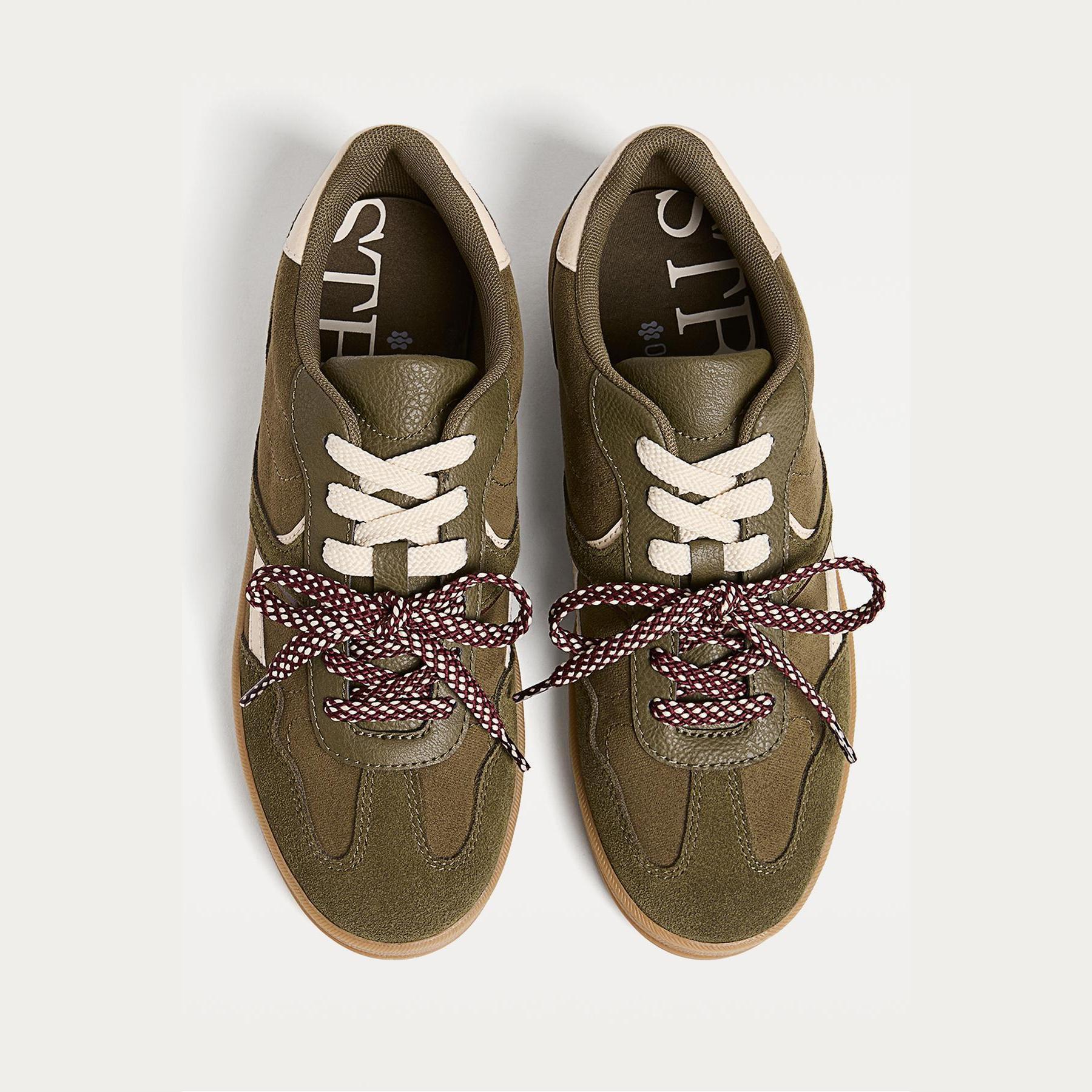 Stradivarius – حذاء نسائي رياضي يومي من الجلد السويدي بتقنية Ortholite® بلون أخضر زيتوني