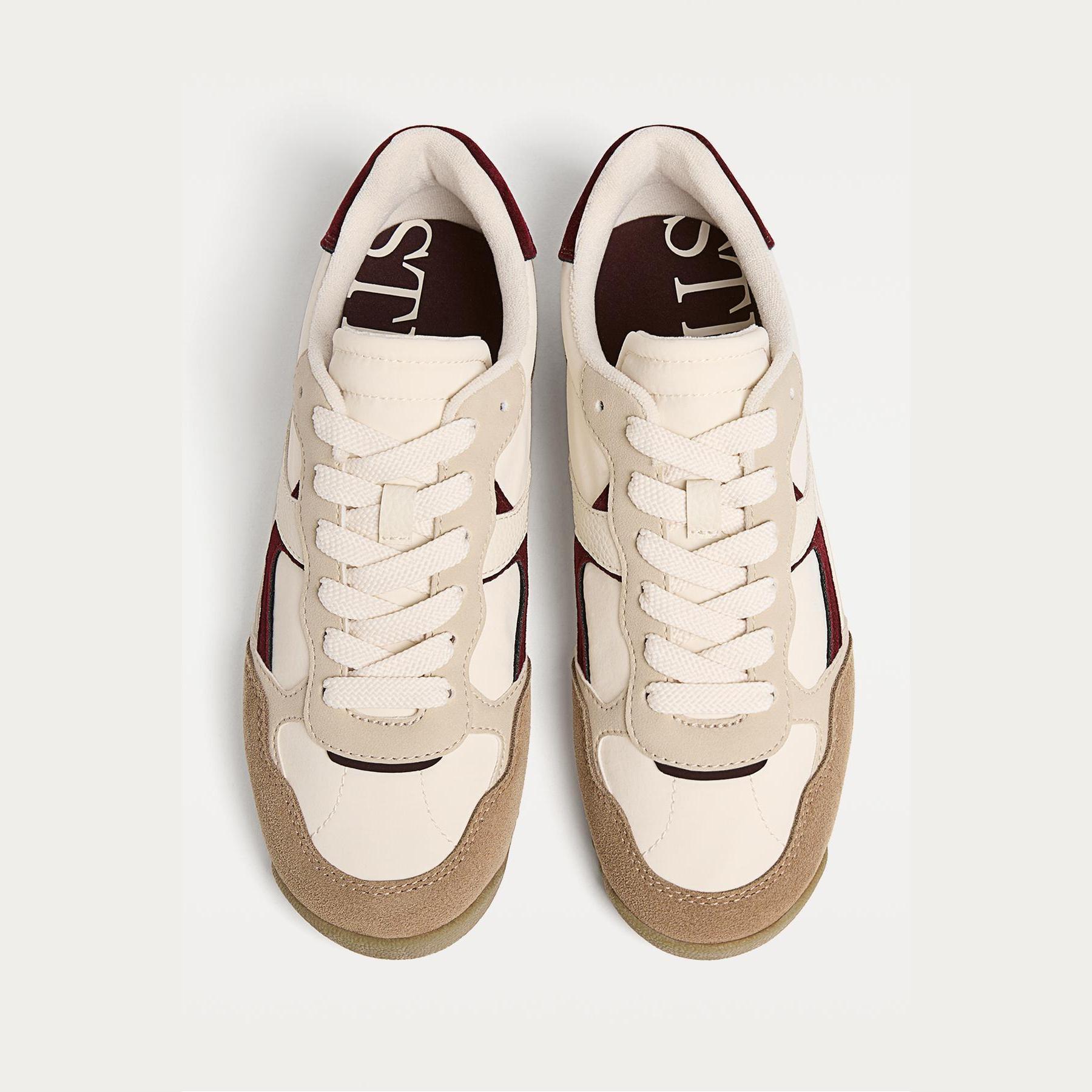 أضيفي لمسة من النعومة والرقي إلى إطلالتك اليومية مع هذا الحذاء الرياضي من Stradivarius، المصمم بخامة سويدية فاخرة وتفاصيل كونتراست أنيقة. يأتي بلون بيج حيادي يناسب جميع الأذواق، مع نعل مسطح بارتفاع 2 سم وبطانة داخلية Ortholite® التي توفر تهوية مثالية وراحة تدوم طوال اليوم.