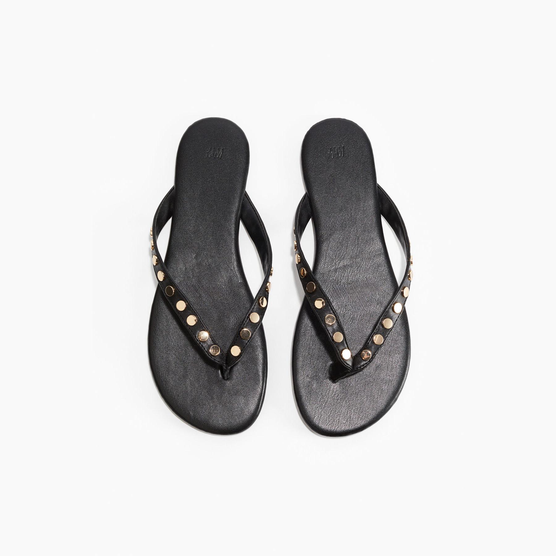H&M – شبشب نسائي بتصميم إصبع مزين بالمسامير المعدنية بلون أسود أنيق