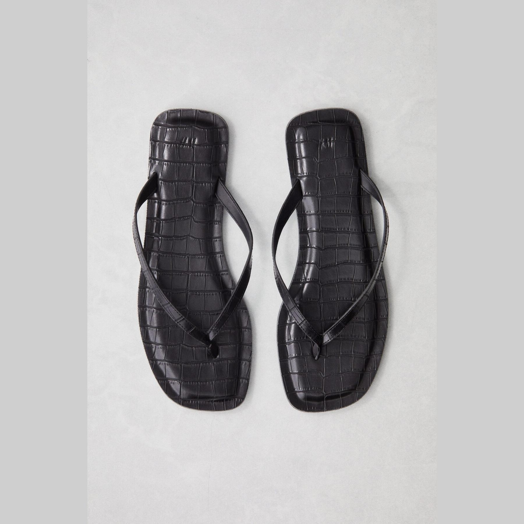 H&M – شبشب نسائي بتصميم إصبع من الجلد الصناعي بلون أسود أنيق