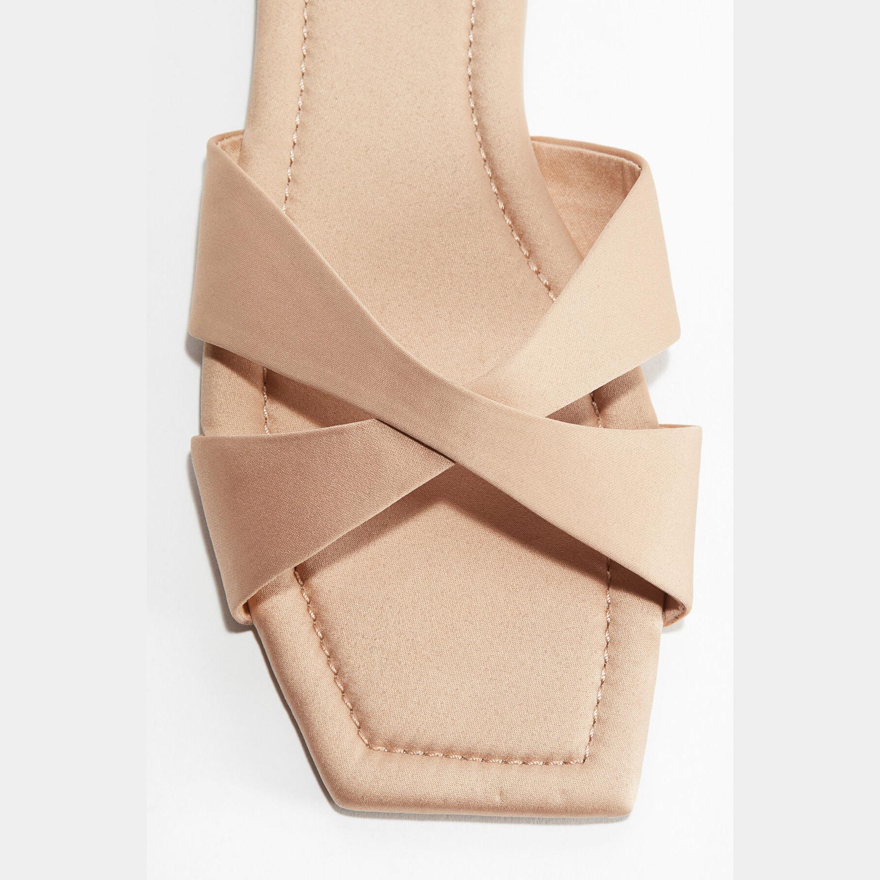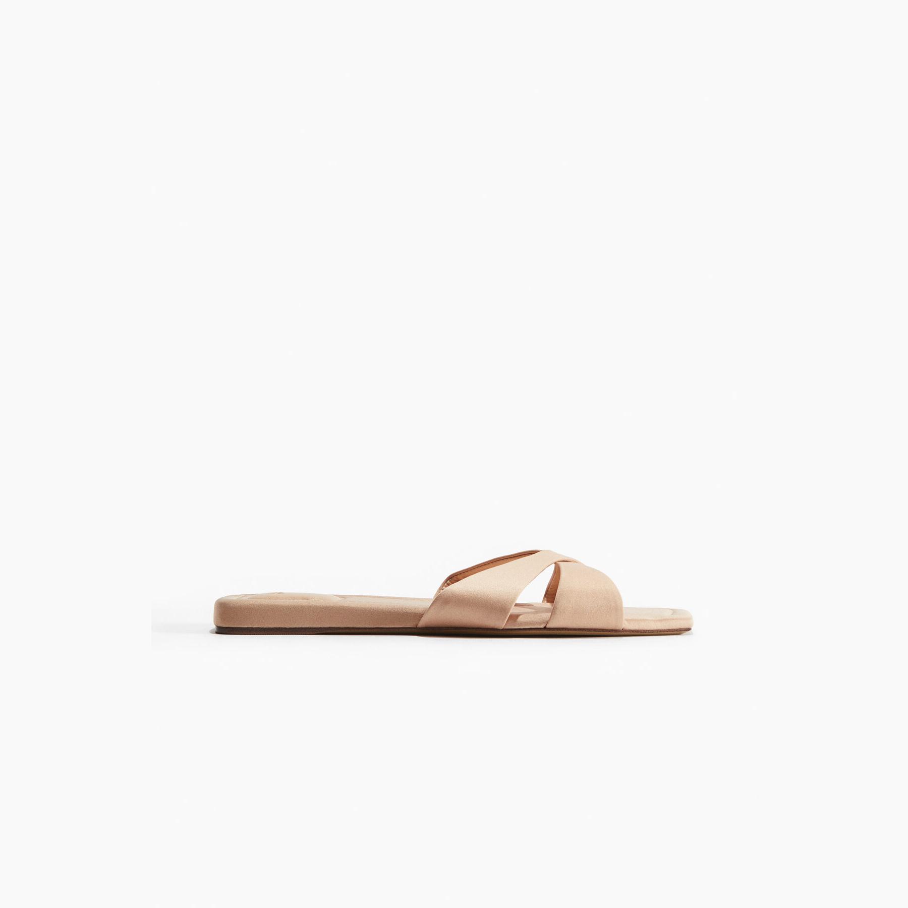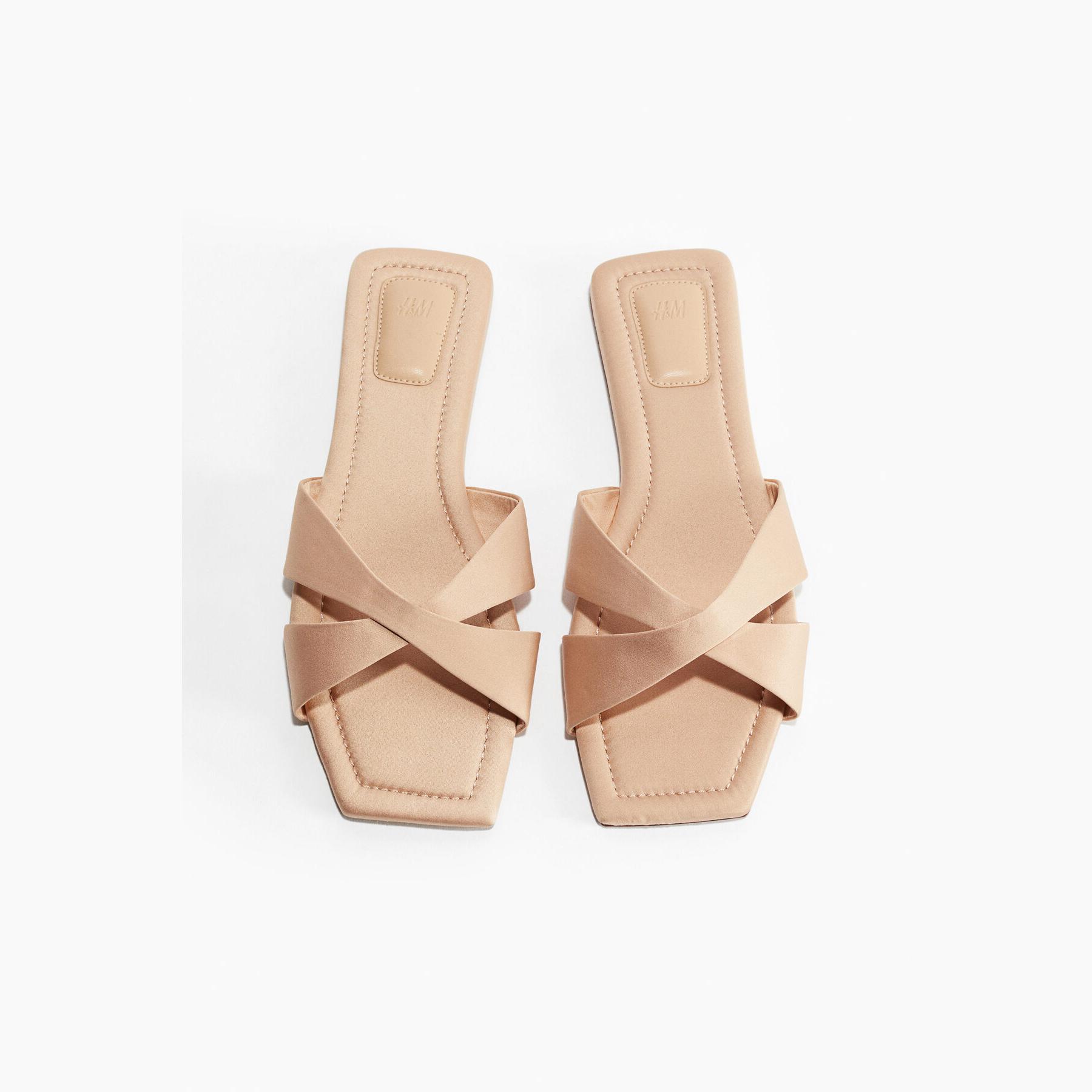 H&M – صندل نسائي بشرائط متقاطعة من الجلد الصناعي بلون وردي خوخي أنيق