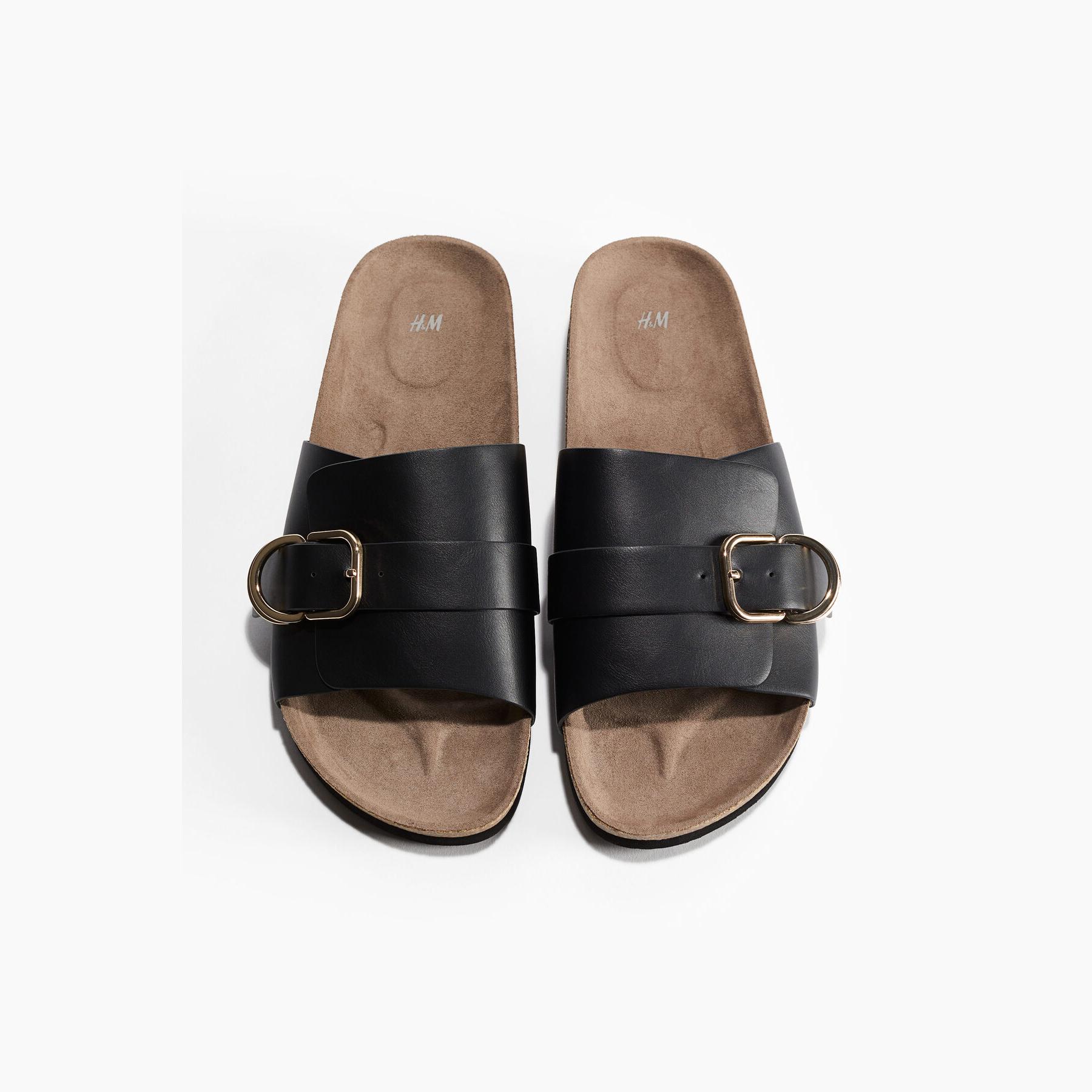 H&M – صندل نسائي بتصميم كلاسيكي من خامة قماشية بلون أسود أنيق