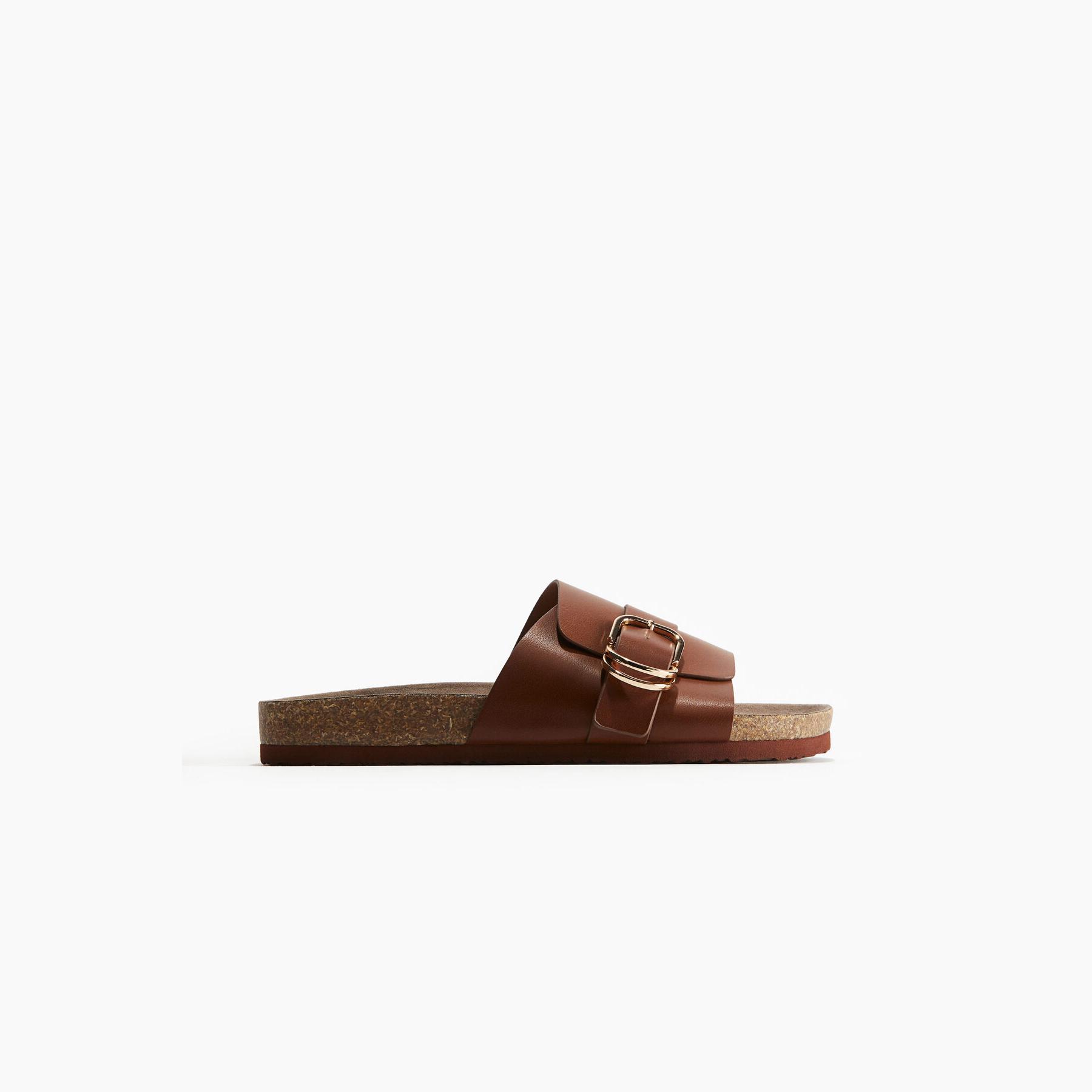 H&M – صندل نسائي بتصميم كلاسيكي من خامة قماشية بلون بني أنيق