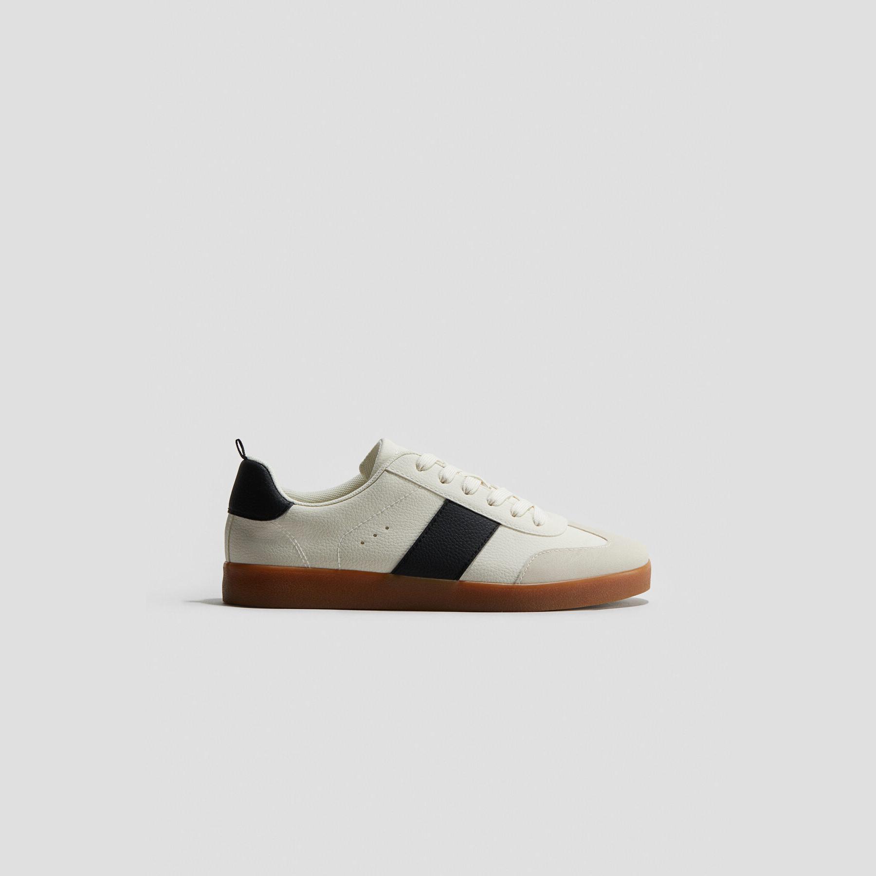 ارتقي بإطلالتك الكاجوال مع هذا الحذاء الرياضي من H&M، المصمم بخامة شمواه أنيقة ولمسات جلد صناعي ناعم. يجمع بين اللون الأبيض والكحلي لإطلالة عصرية تناسب الملابس اليومية أو الرياضية. يتميز بتصميم برباط كلاسيكي ونعل مسطح مريح، مما يجعله مثالياً للمشي أو التنقل اليومي.
