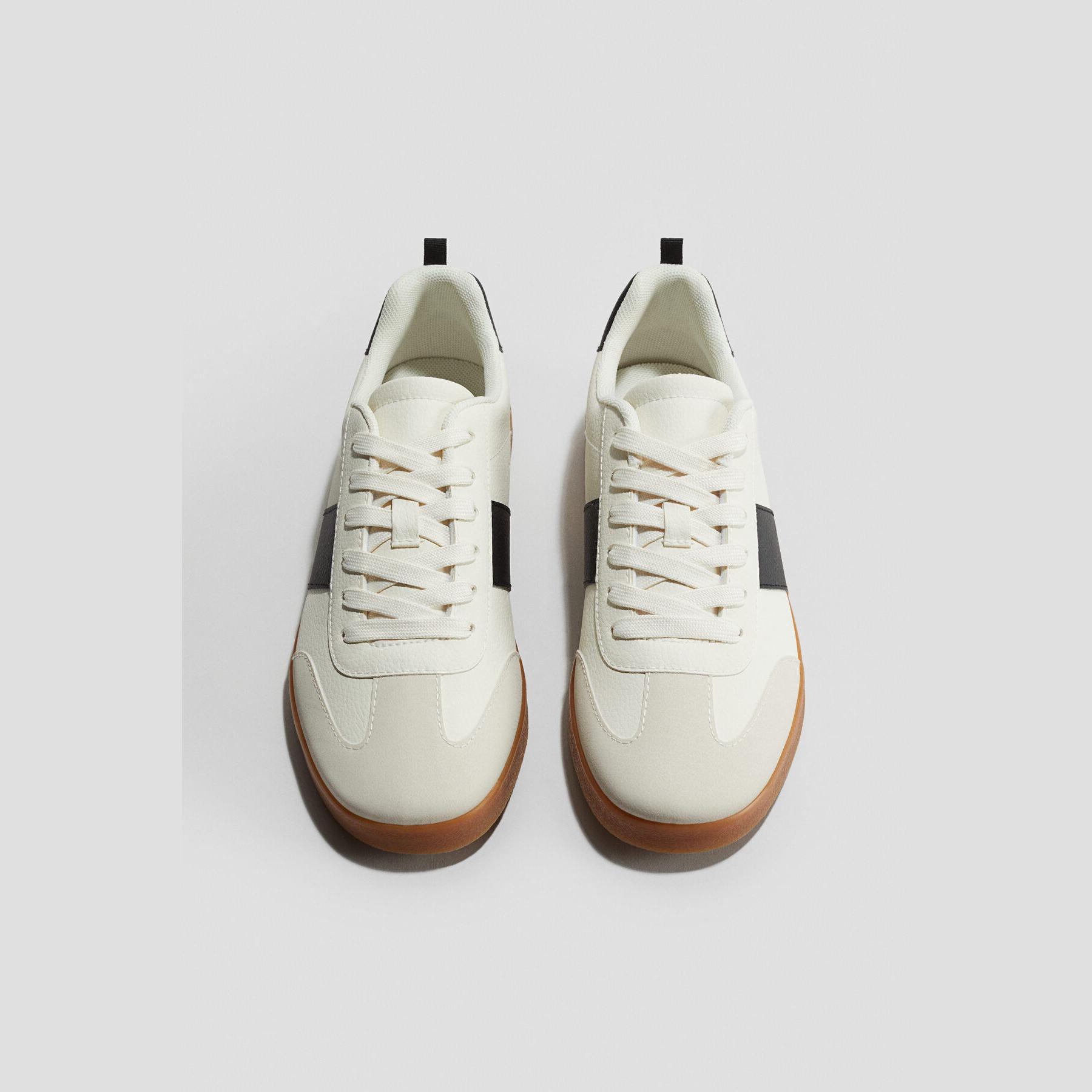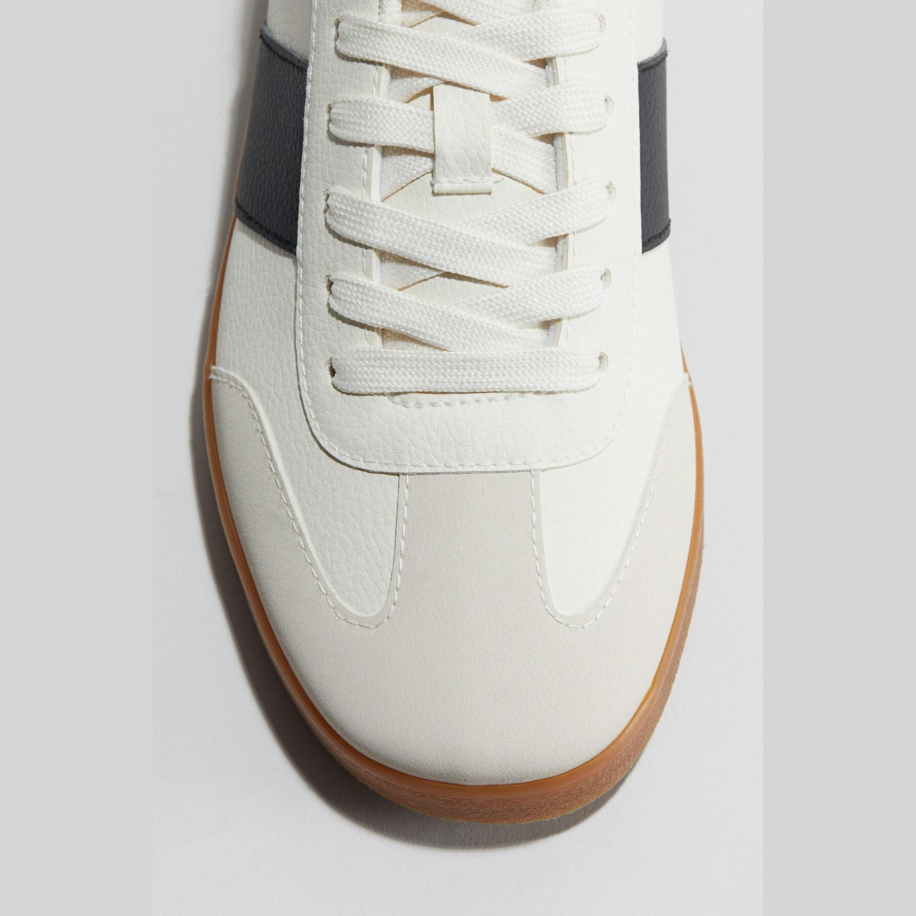 H&M – حذاء رياضي نسائي بلون أبيض/كحلي من خامة الشمواه والتصميم الكلاسيكي