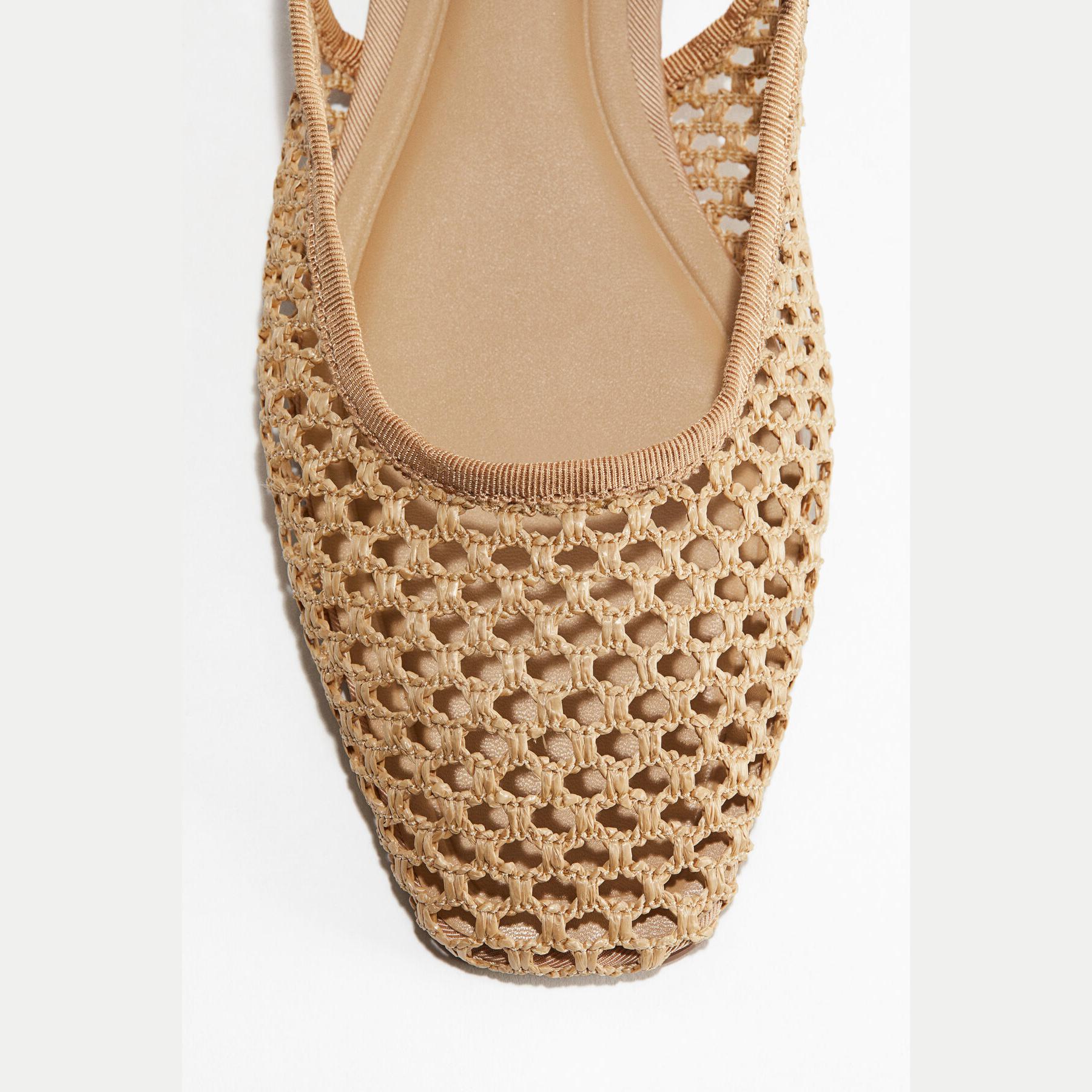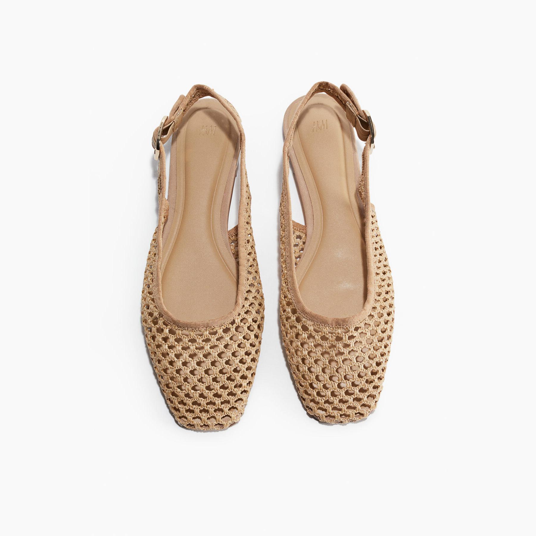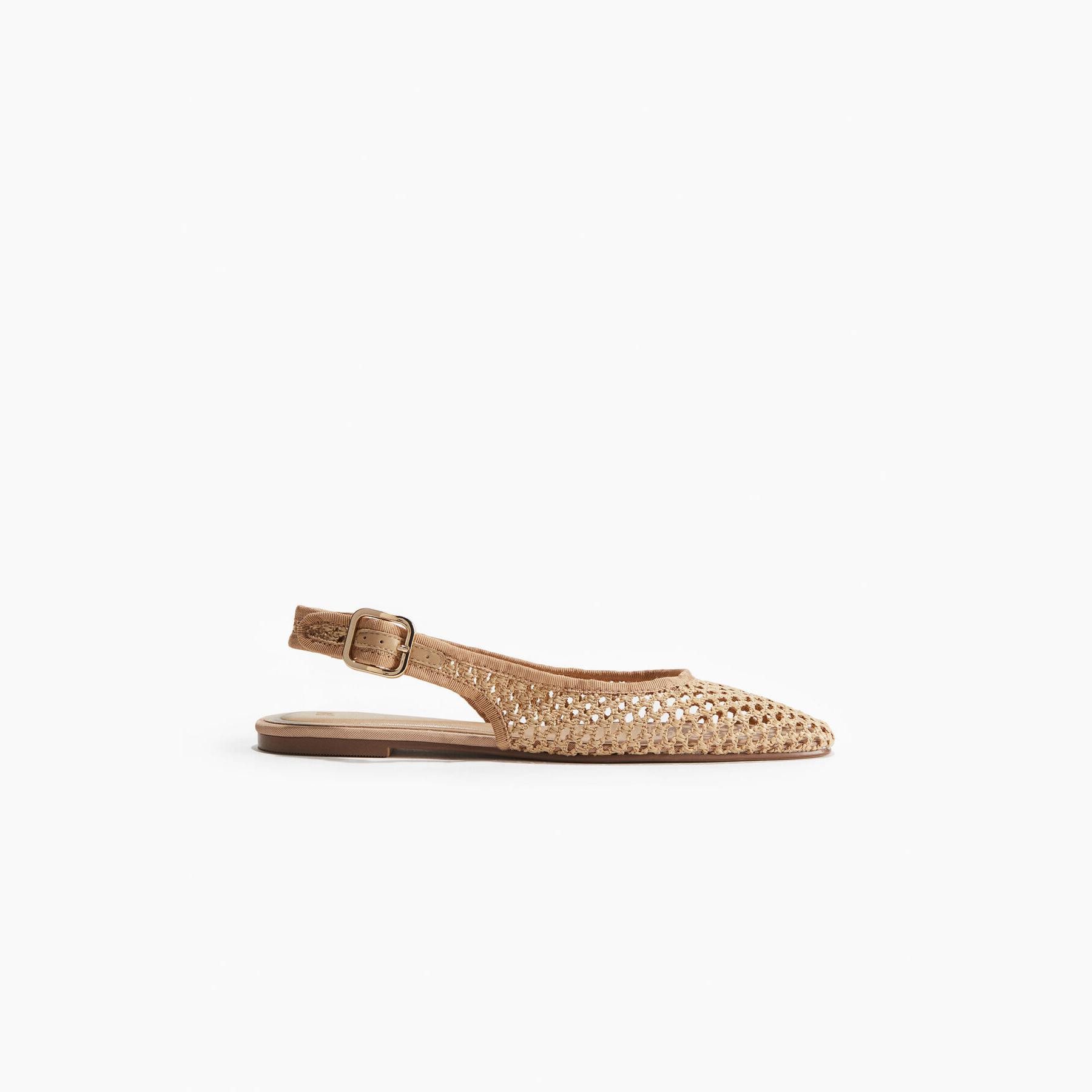 H&M – صندل نسائي مفتوح من الخلف بخامة شبكية بلون بيج أنيق