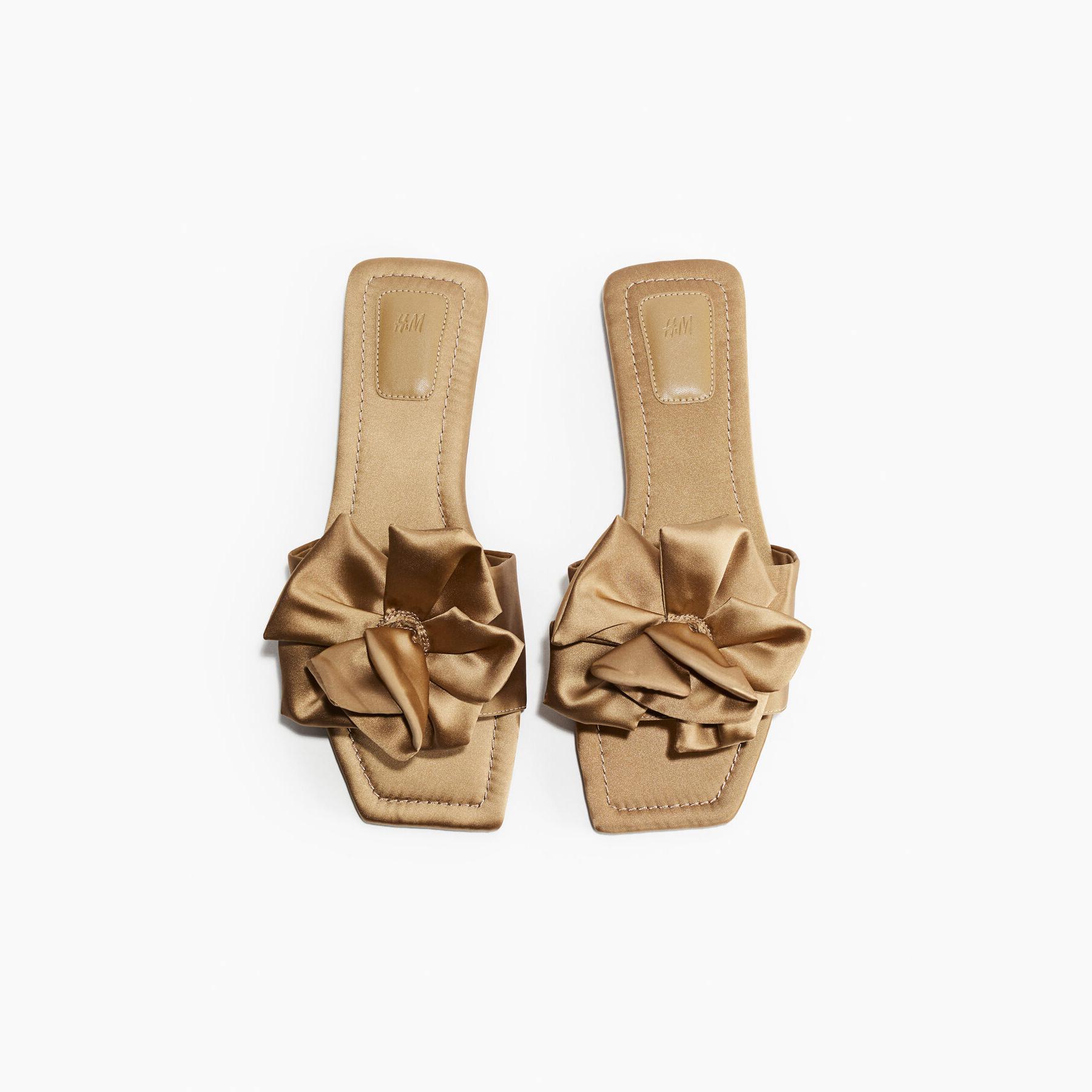 H&M – صندل نسائي ساتان بتفاصيل زينة أنيقة بلون بيج ناعم