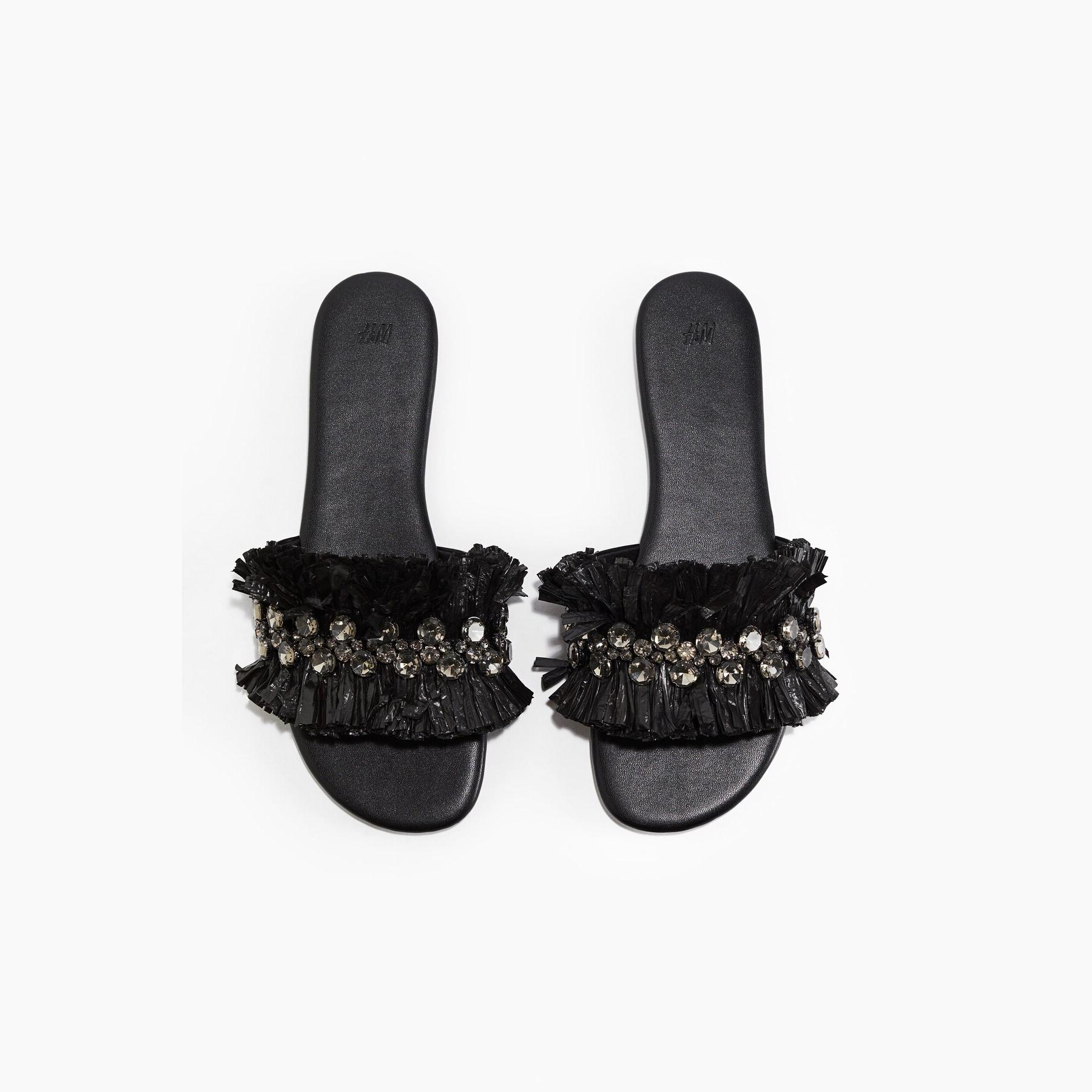 H&M – صندل نسائي مزين بأحجار صناعية بلون أسود أنيق