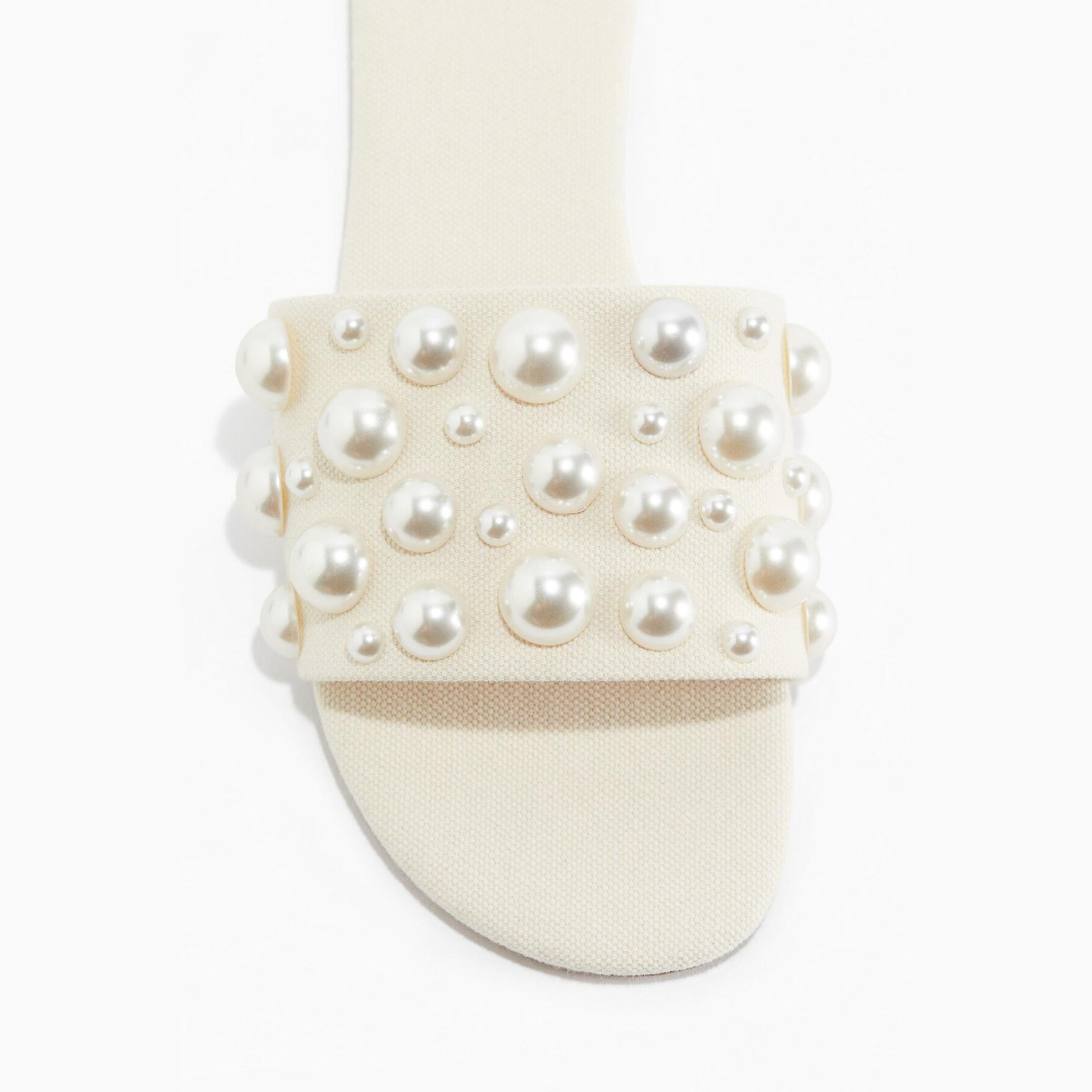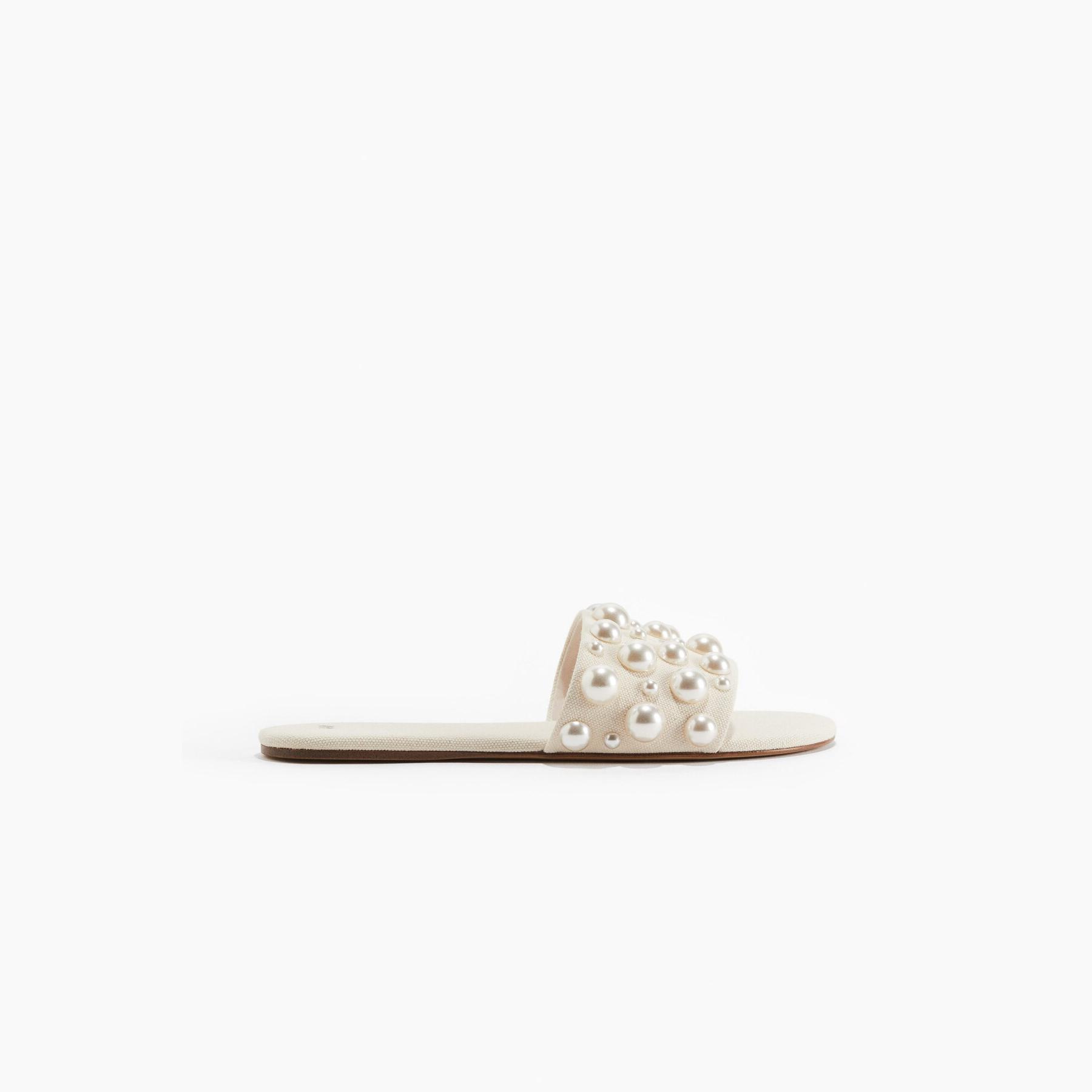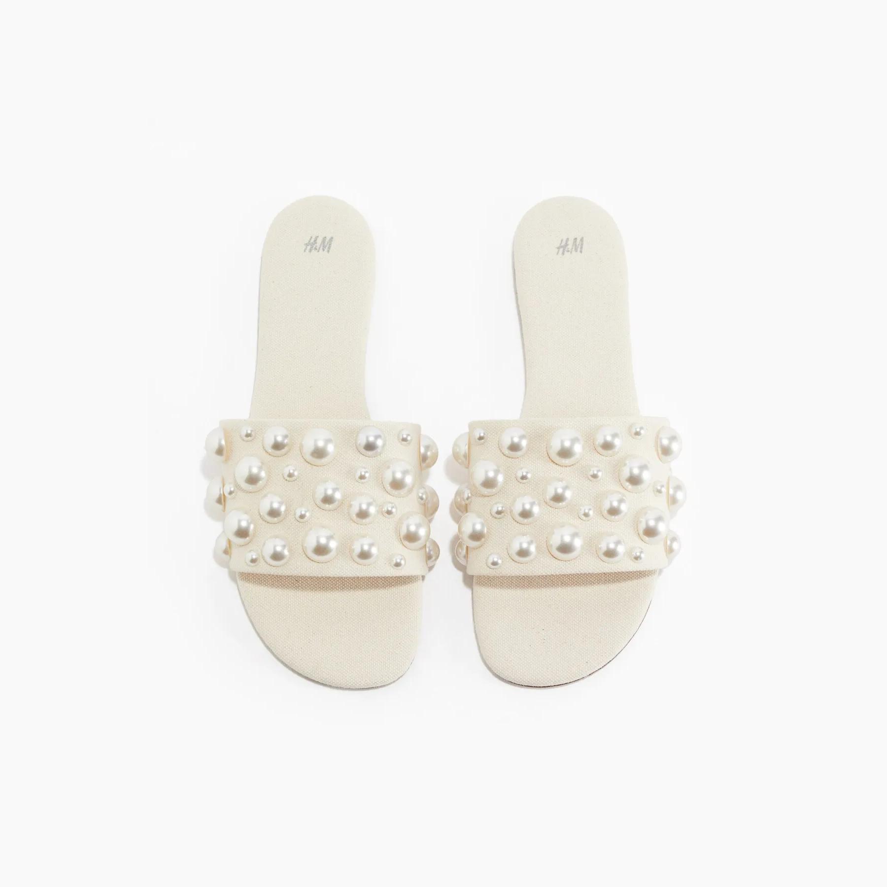 H&M – صندل نسائي بتطريز أنيق من الجلد الصناعي بلون بيج ناعم