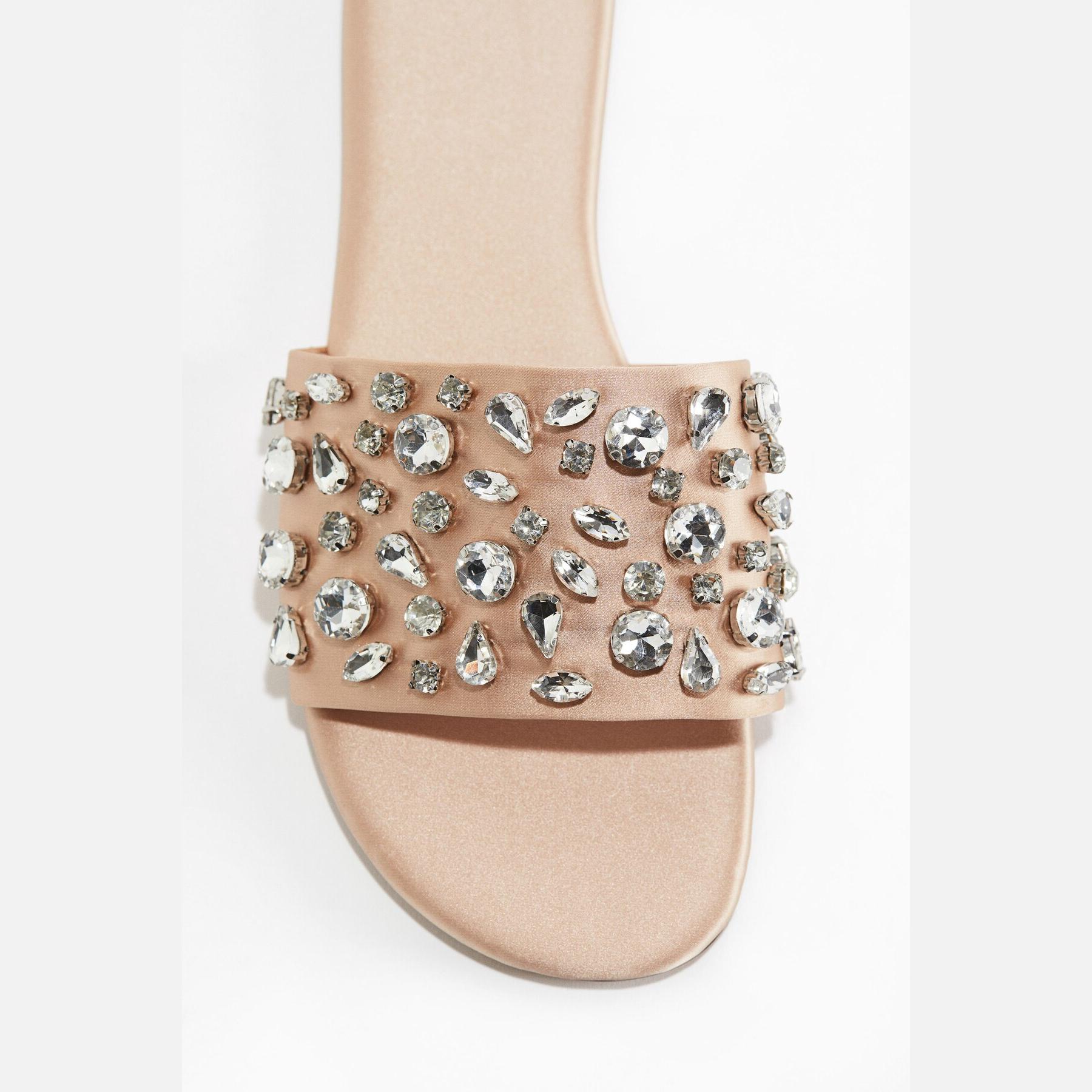 H&M – صندل نسائي بتطريز أنيق من الجلد الصناعي بلون شفتالي وردي