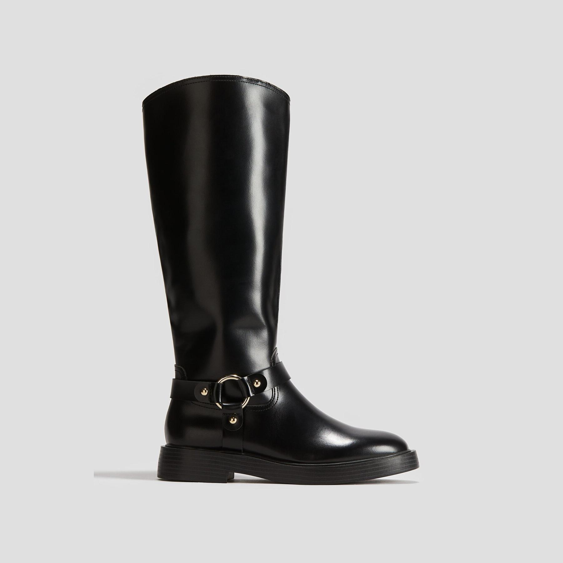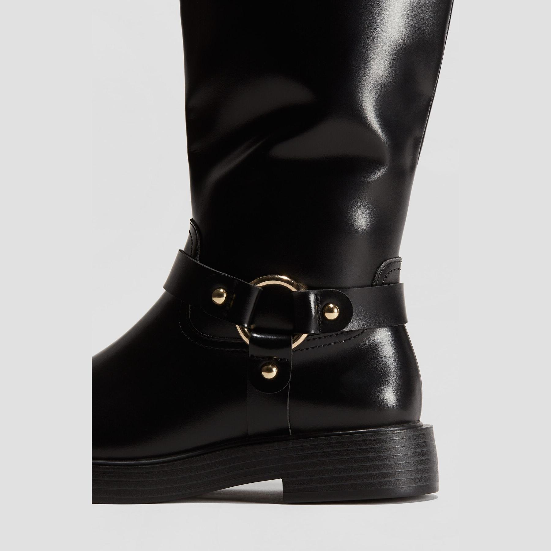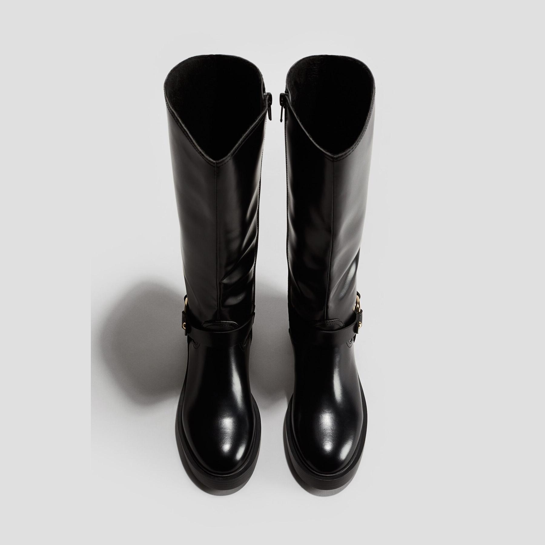 H&M – جزمة نسائية طويلة بتصميم موتوسيكل من الجلد الصناعي بلون أسود أنيق