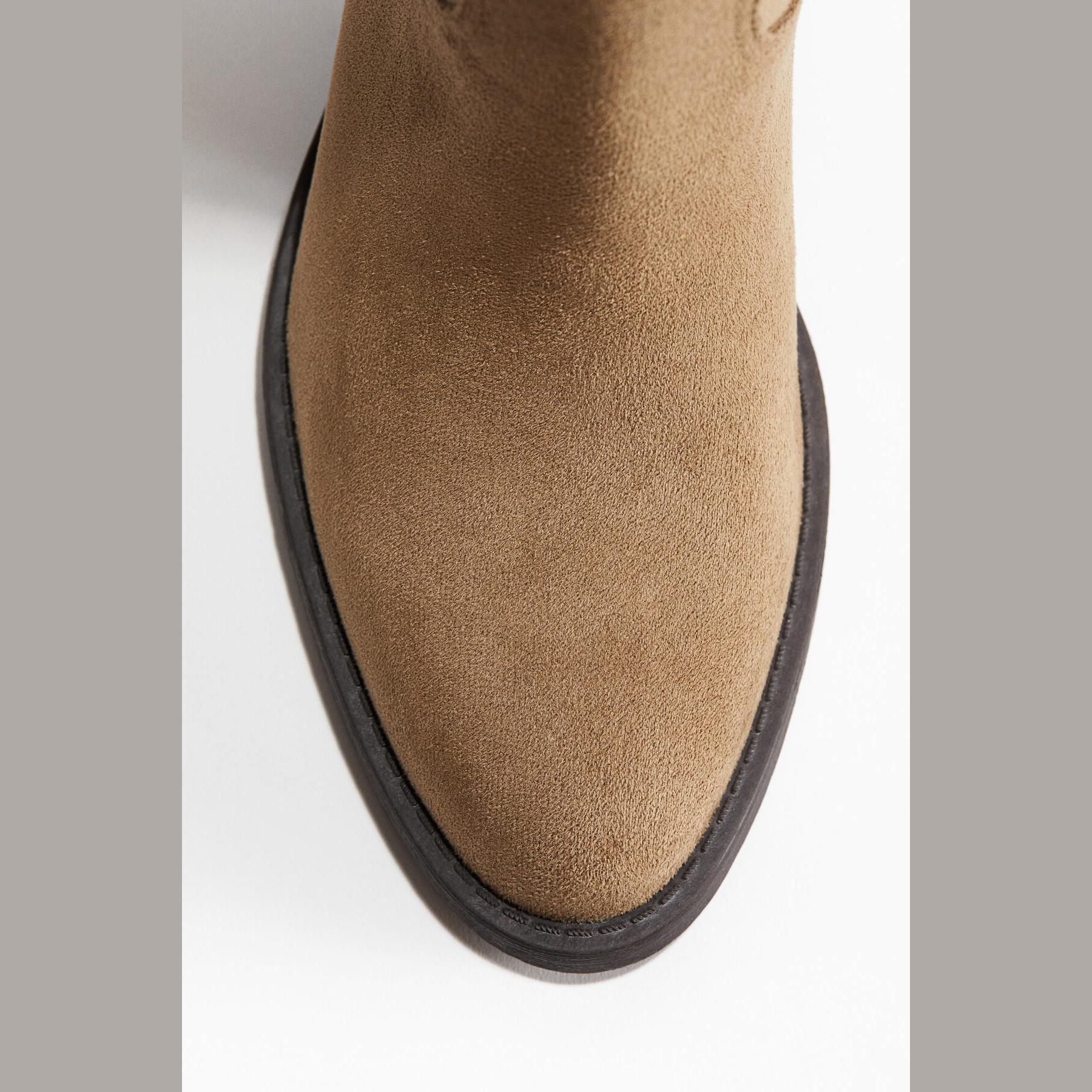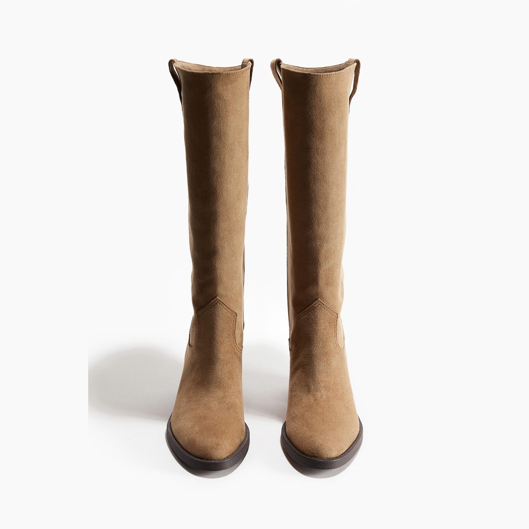 H&M – جزمة نسائية طويلة بتصميم كاوبوي من الجلد الصناعي بلون بيج أنيق