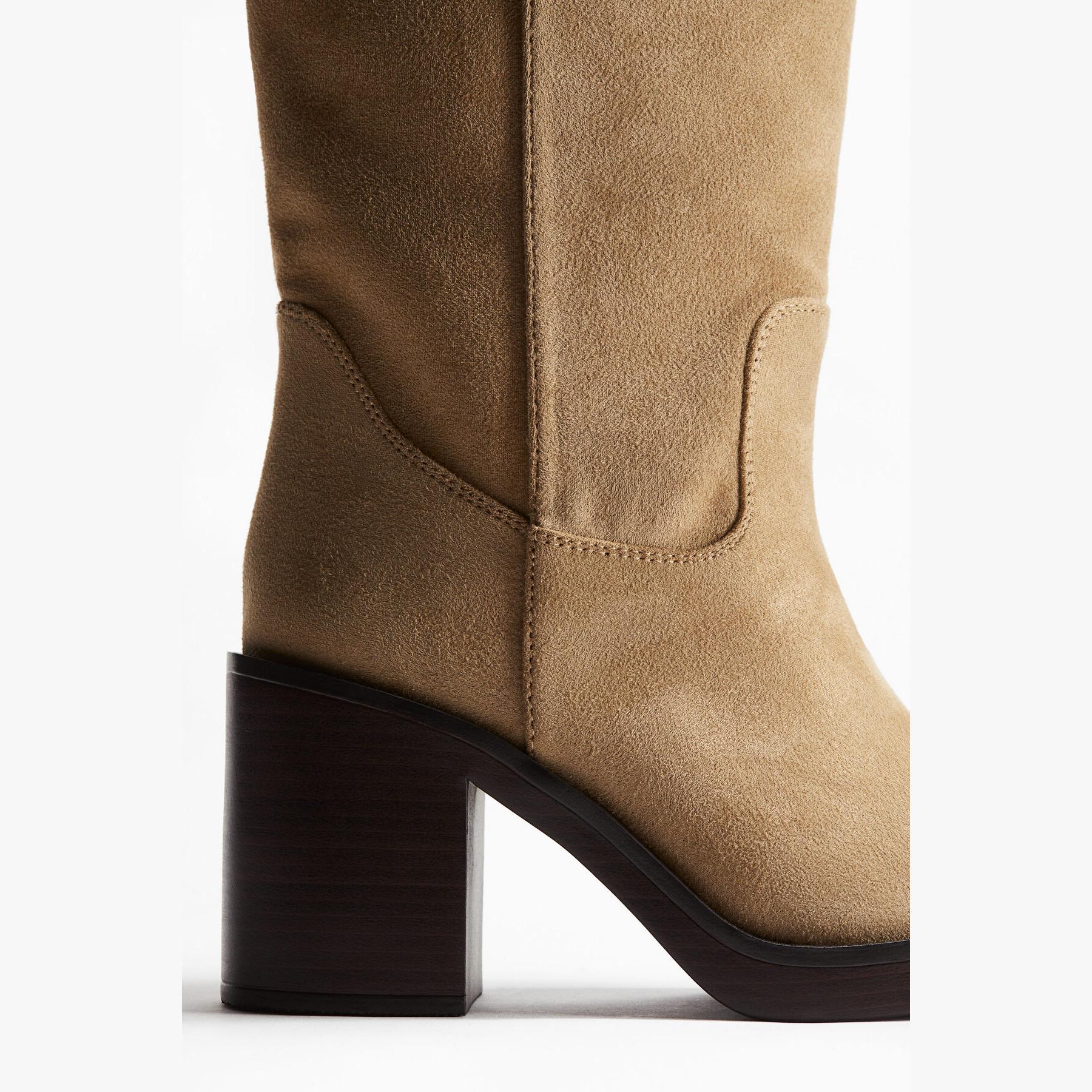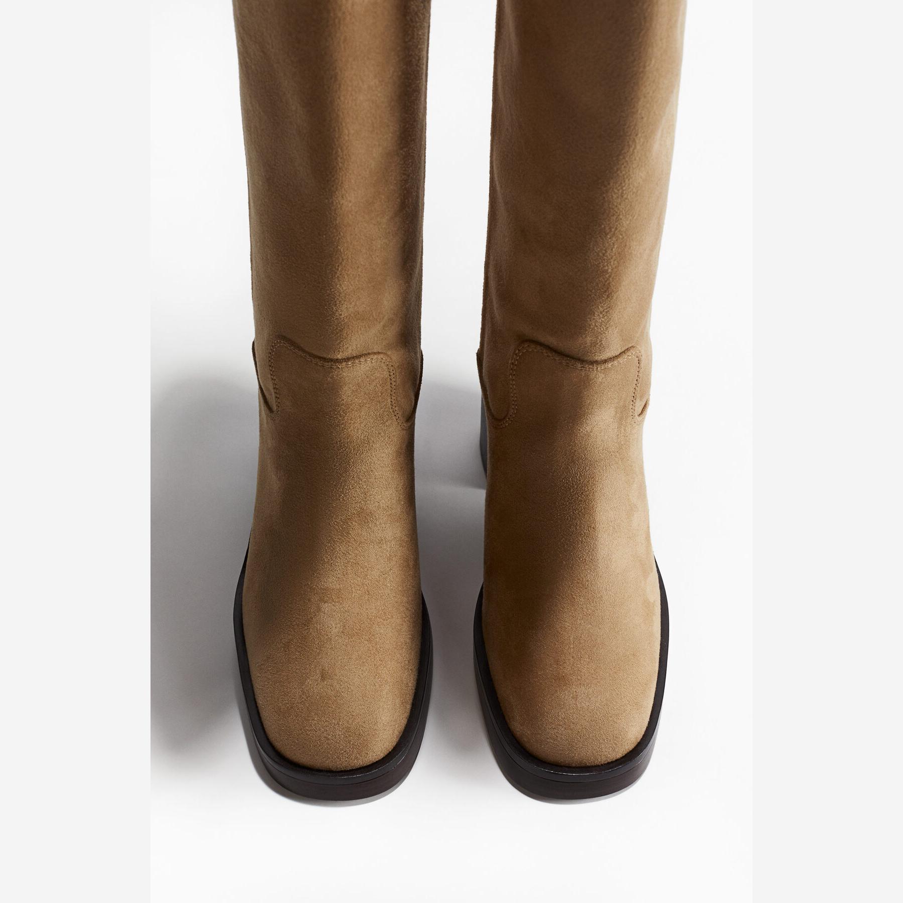 H&M – جزمة نسائية طويلة حتى الركبة من الجلد الصناعي بلون بيج أنيق