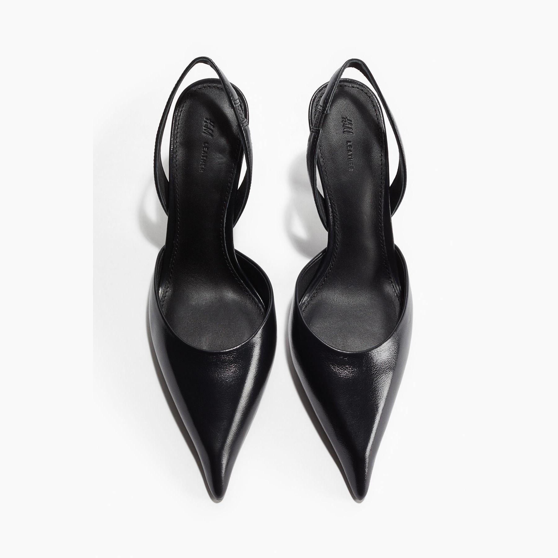 H&M – حذاء نسائي بكعب أنيق ومقدمة مدببة من الجلد الصناعي بلون أسود كلاسيكي