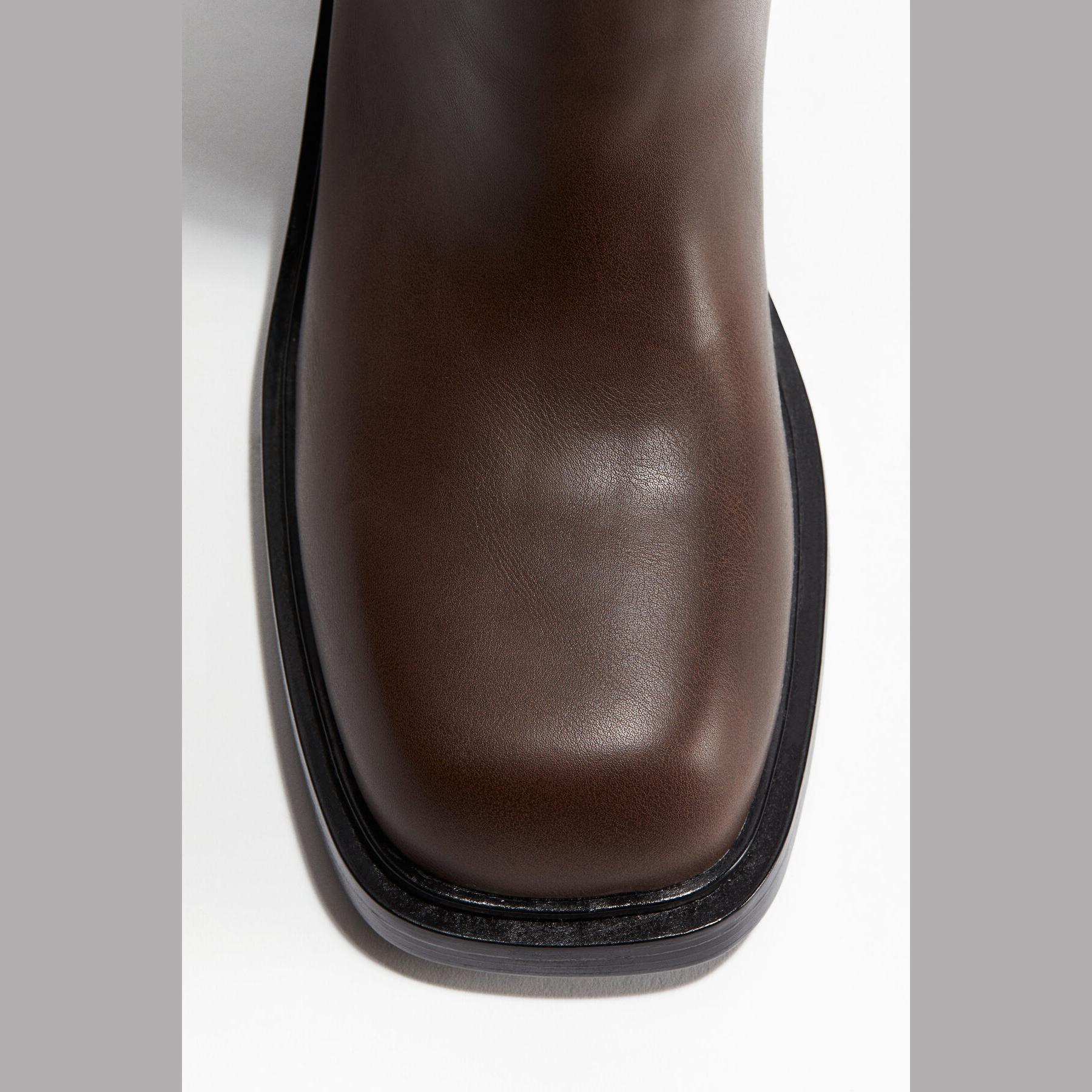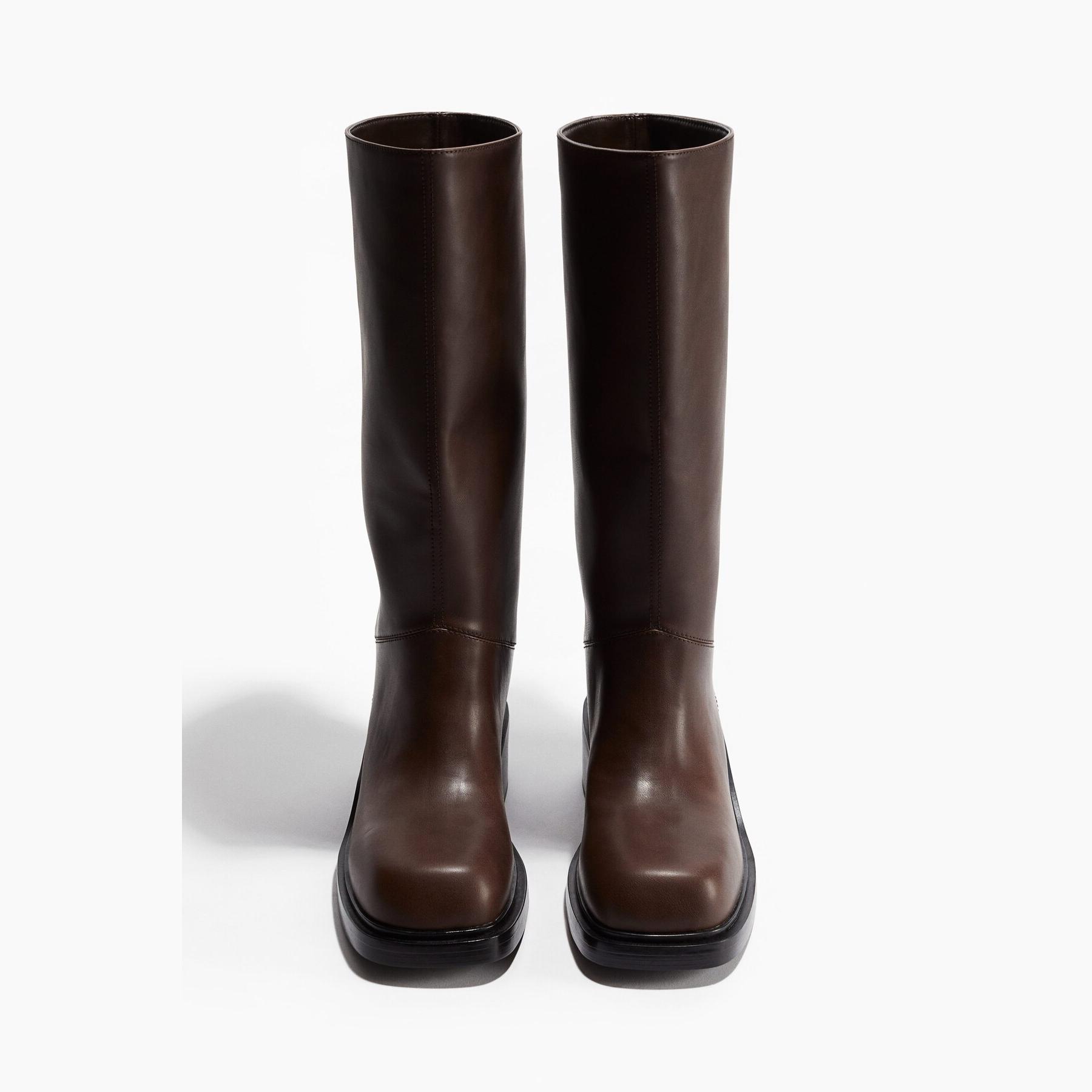 H&M – جزمة نسائية بكعب عريض من الجلد الصناعي بلون بني أنيق