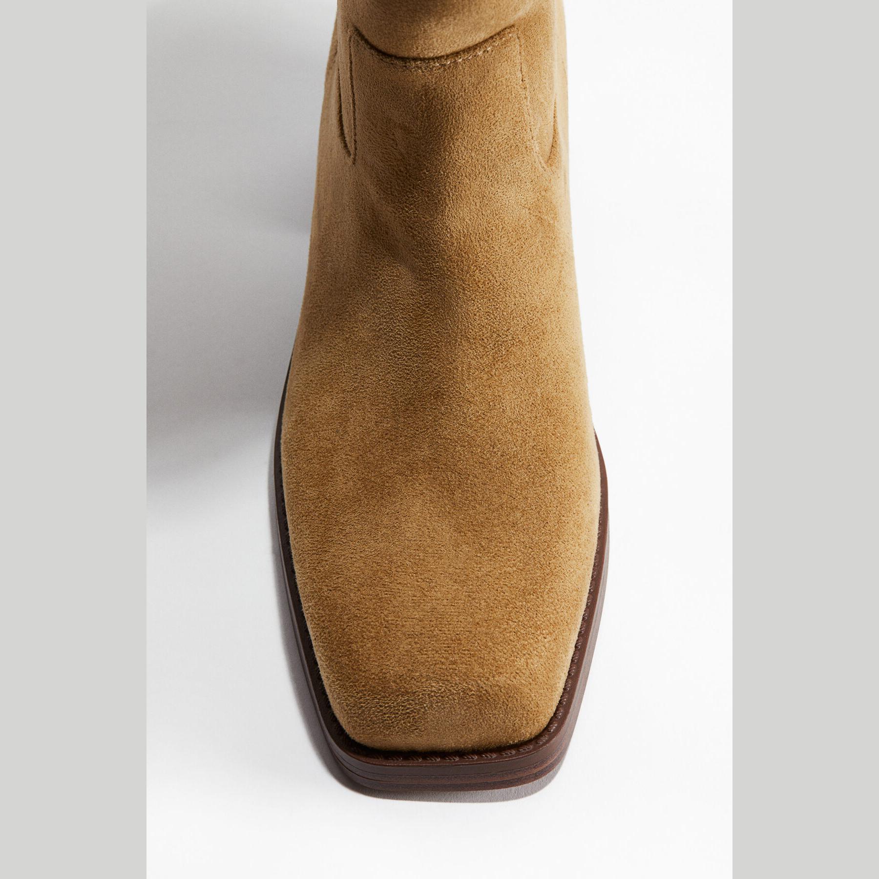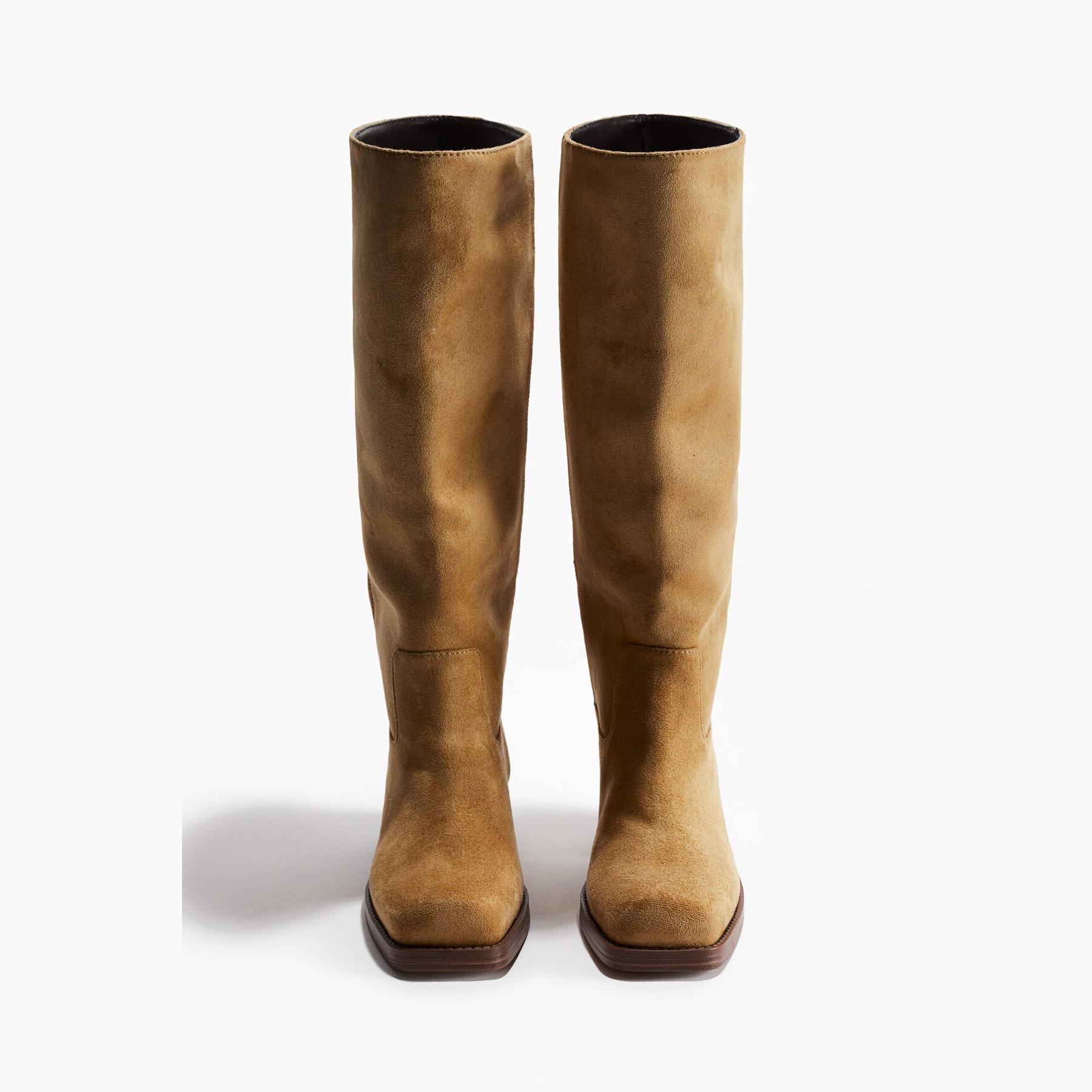 H&M – جزمة نسائية طويلة بتصميم موتوسيكل من الجلد الصناعي بلون كاكي أنيق