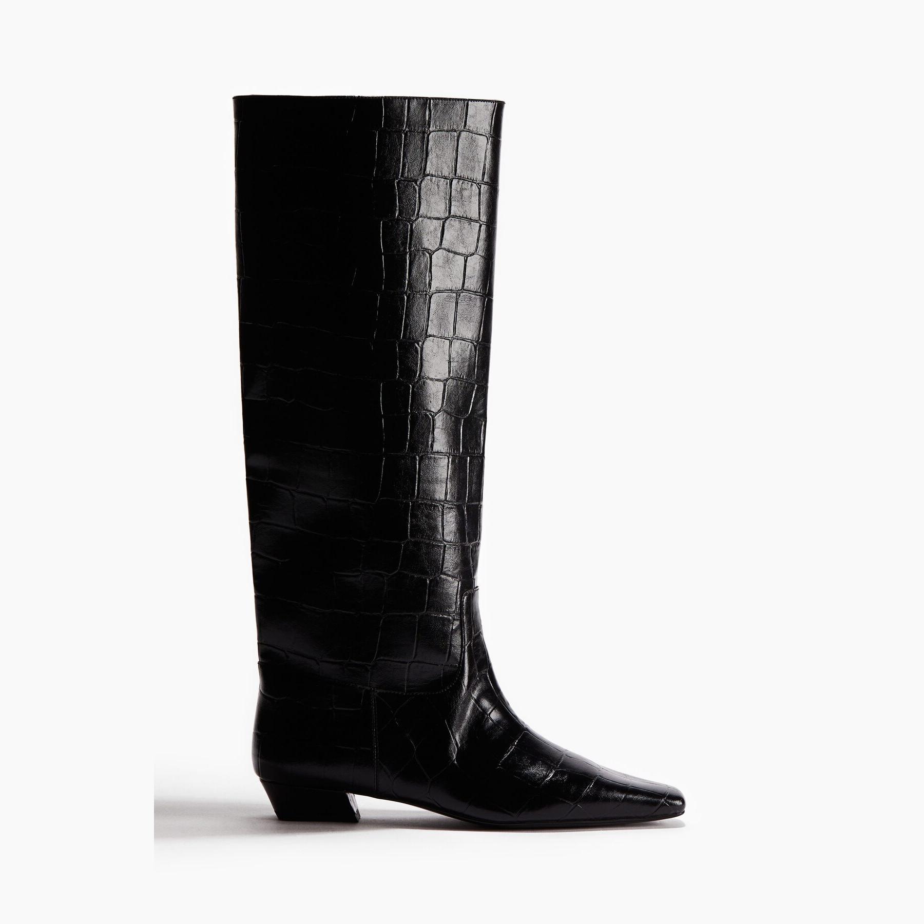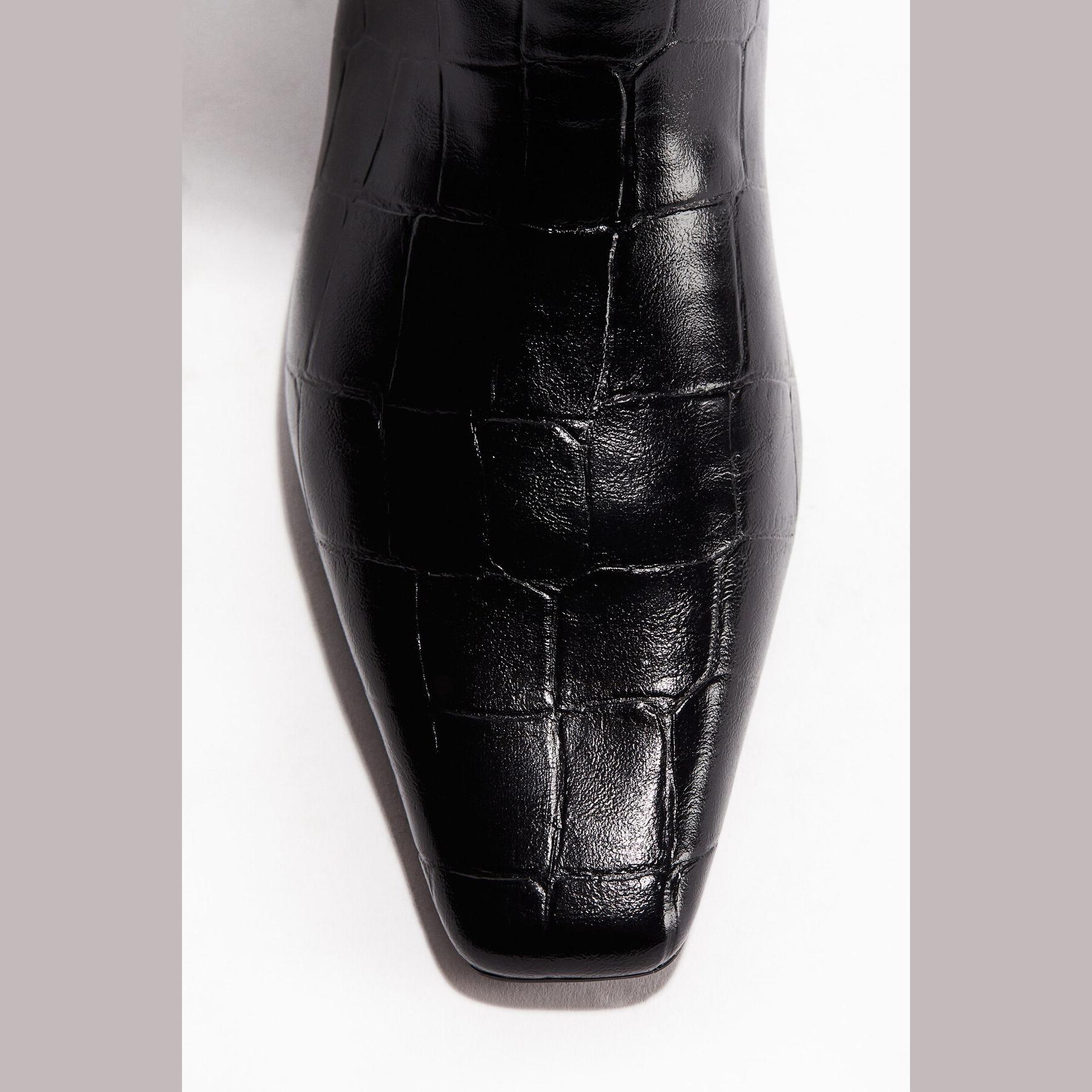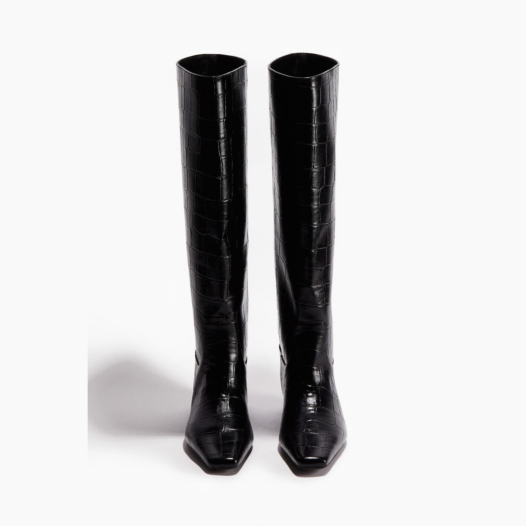 H&M – جزمة نسائية طويلة حتى الركبة من الجلد الصناعي بنقشة جلد التمساح بلون أسود أنيق