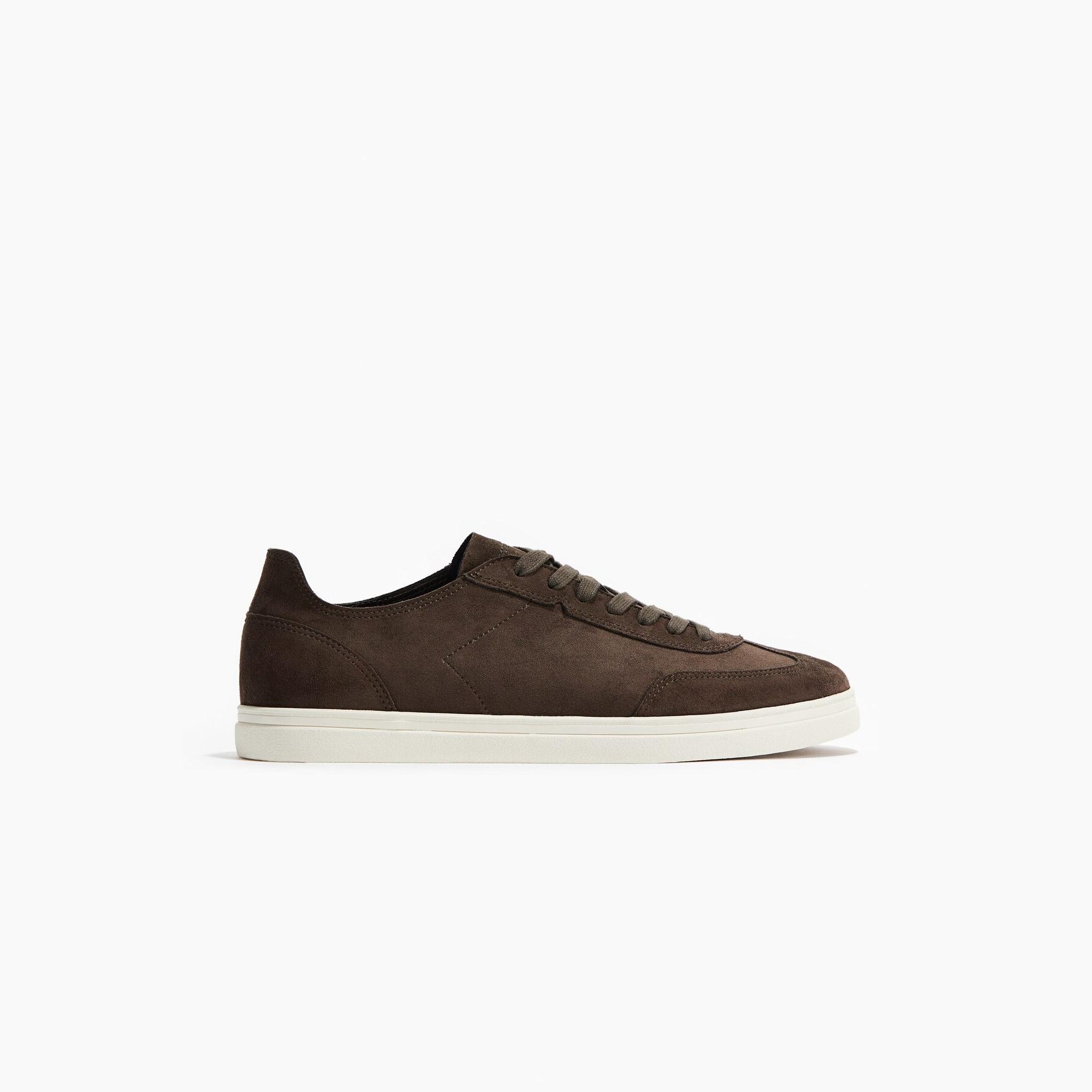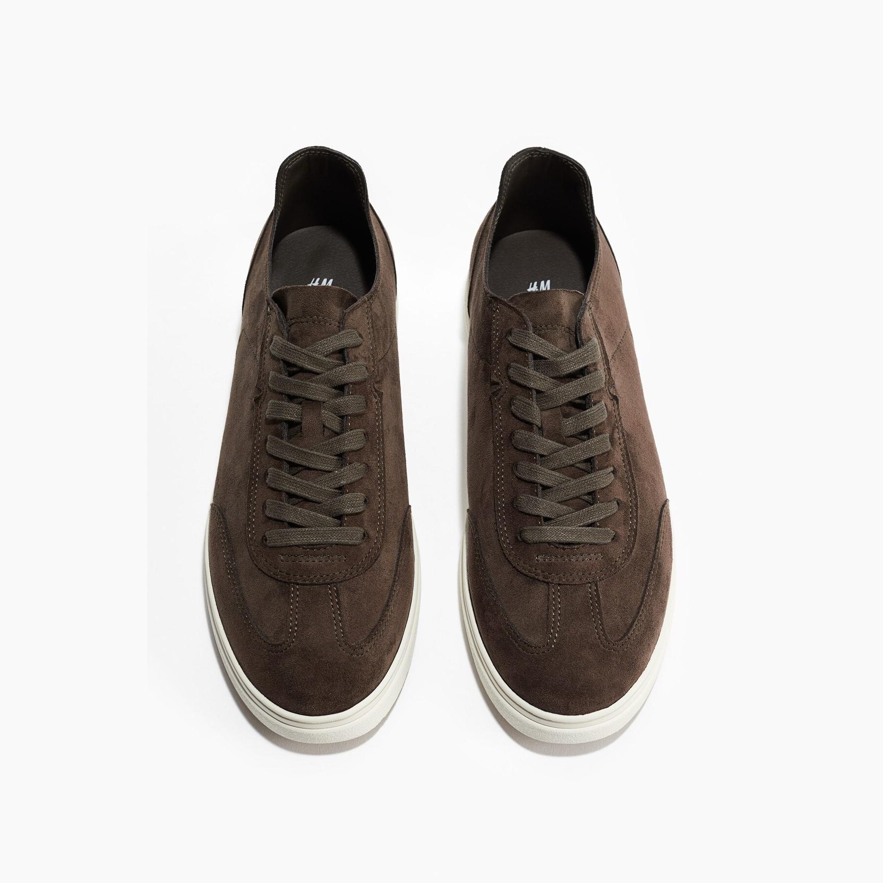 H&M – حذاء رياضي رجالي برباط من الجلد الصناعي بلون كاكي أنيق