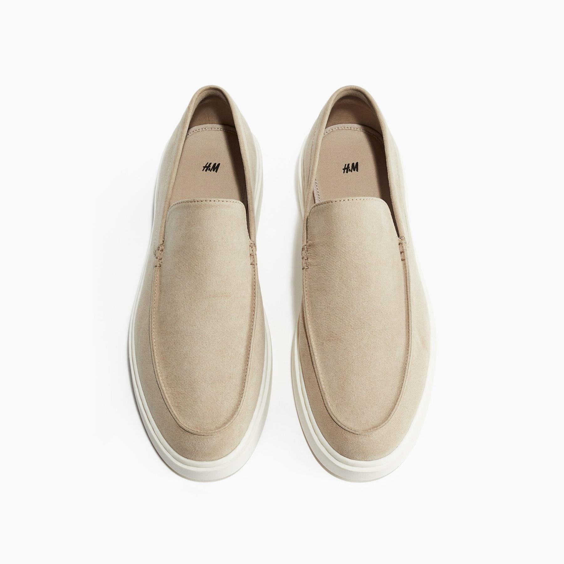 H&M – حذاء رجالي بأسلوب موكاسين من الجلد الطبيعي بلون بيج أنيق