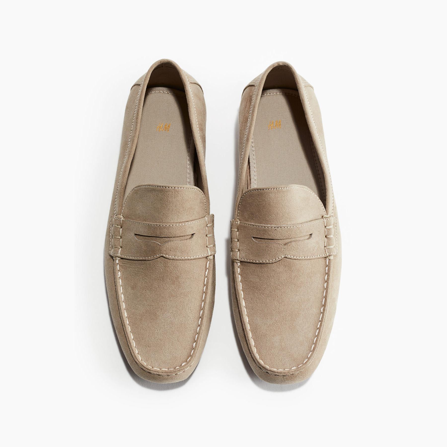 H&M – حذاء رجالي بأسلوب قيادة من الجلد الطبيعي بلون بيج أنيق