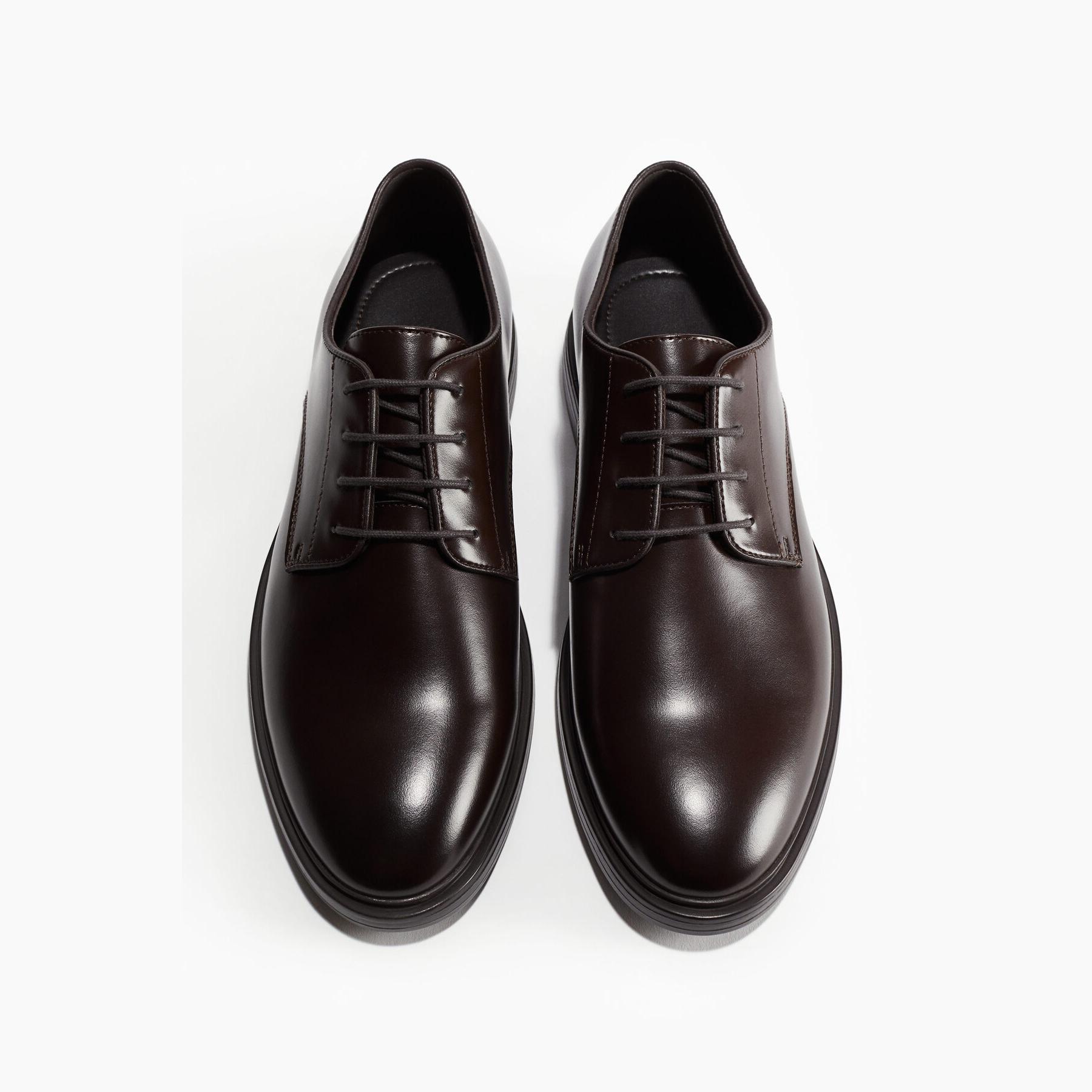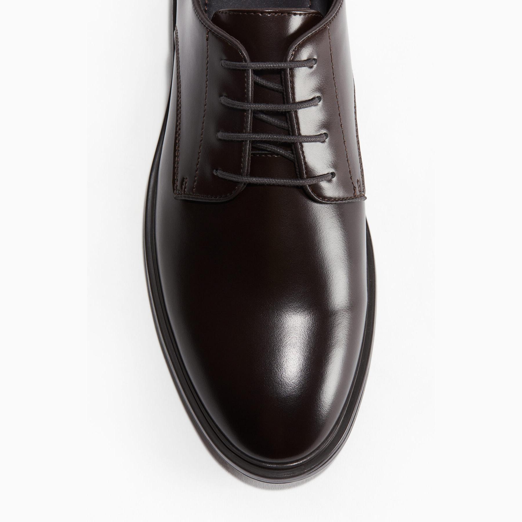 H&M – حذاء رجالي كلاسيكي بأسلوب ديربي من الجلد الطبيعي بلون بني أنيق