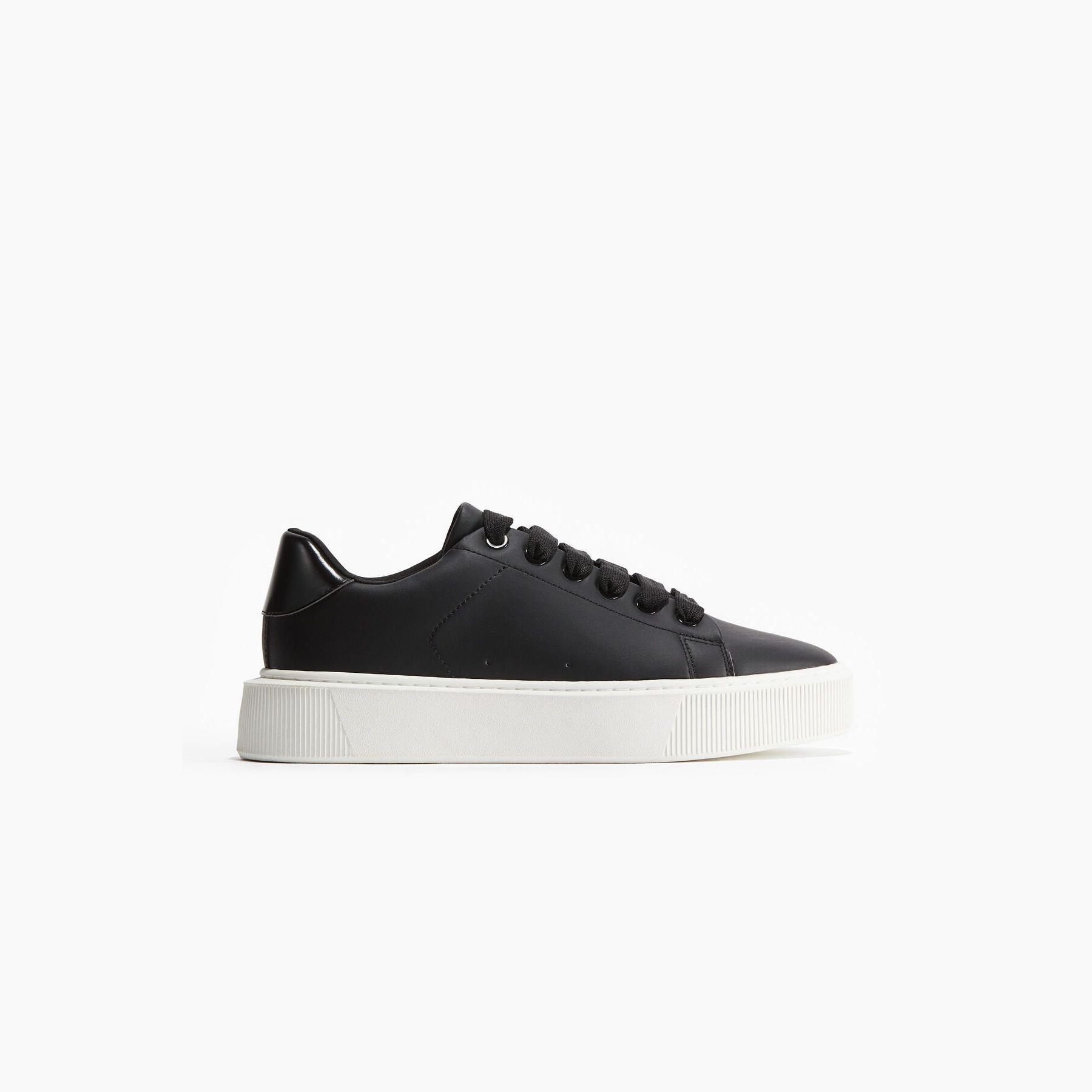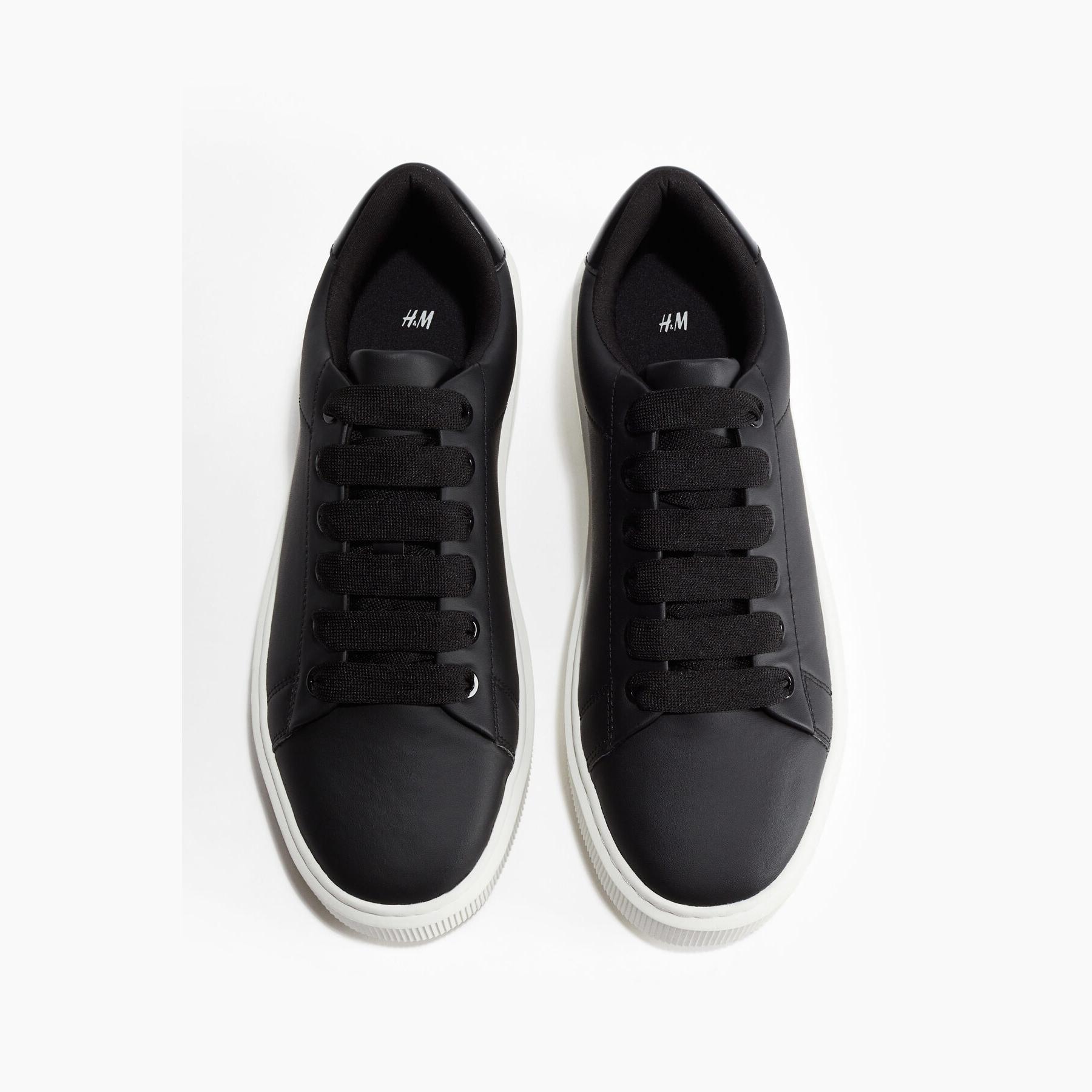 H&M – حذاء رياضي رجالي برباط من الجلد الصناعي بلون أسود بتصميم نعل سميك