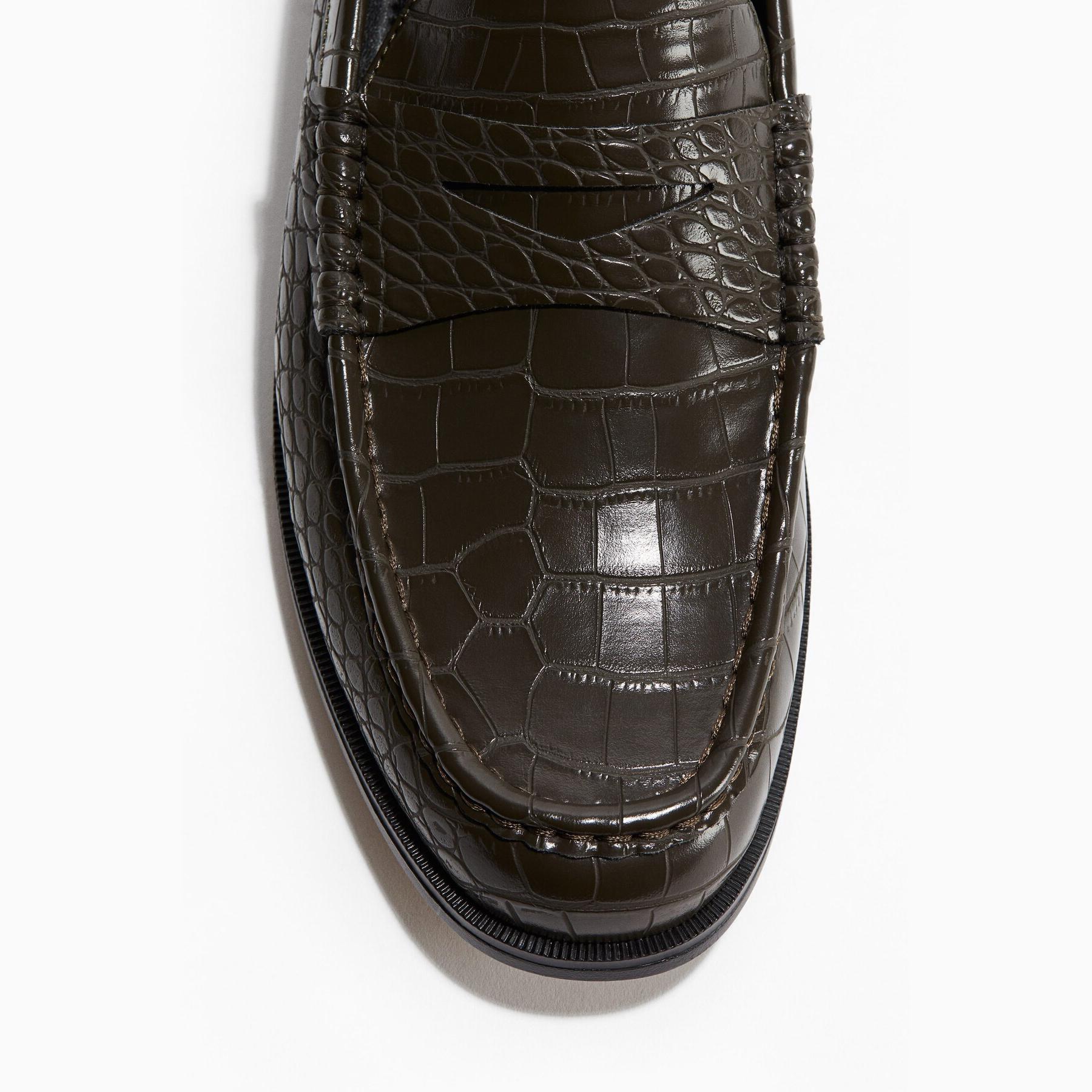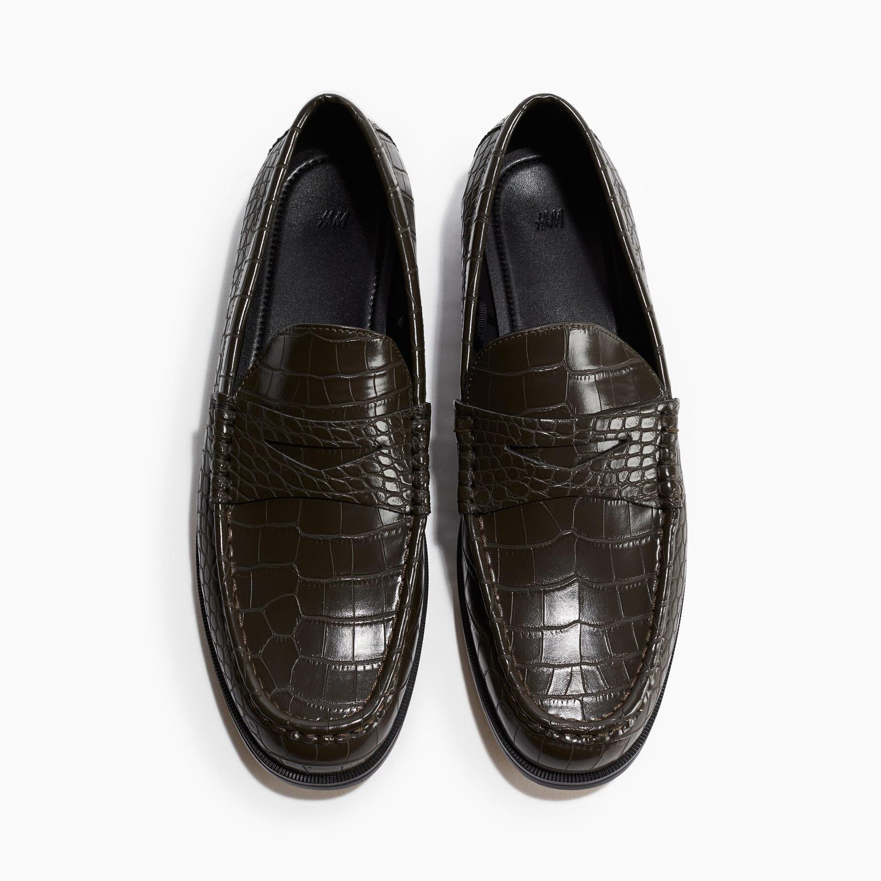 H&M – حذاء رجالي بأسلوب موكاسين من الجلد الطبيعي بلون زيتي أنيق