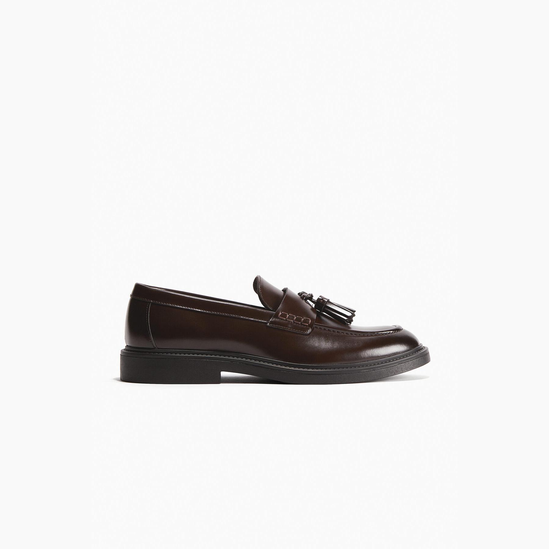 H&M – حذاء رجالي بأسلوب موكاسين من الجلد الصناعي بلون بني أنيق مع تفاصيل شرّابة