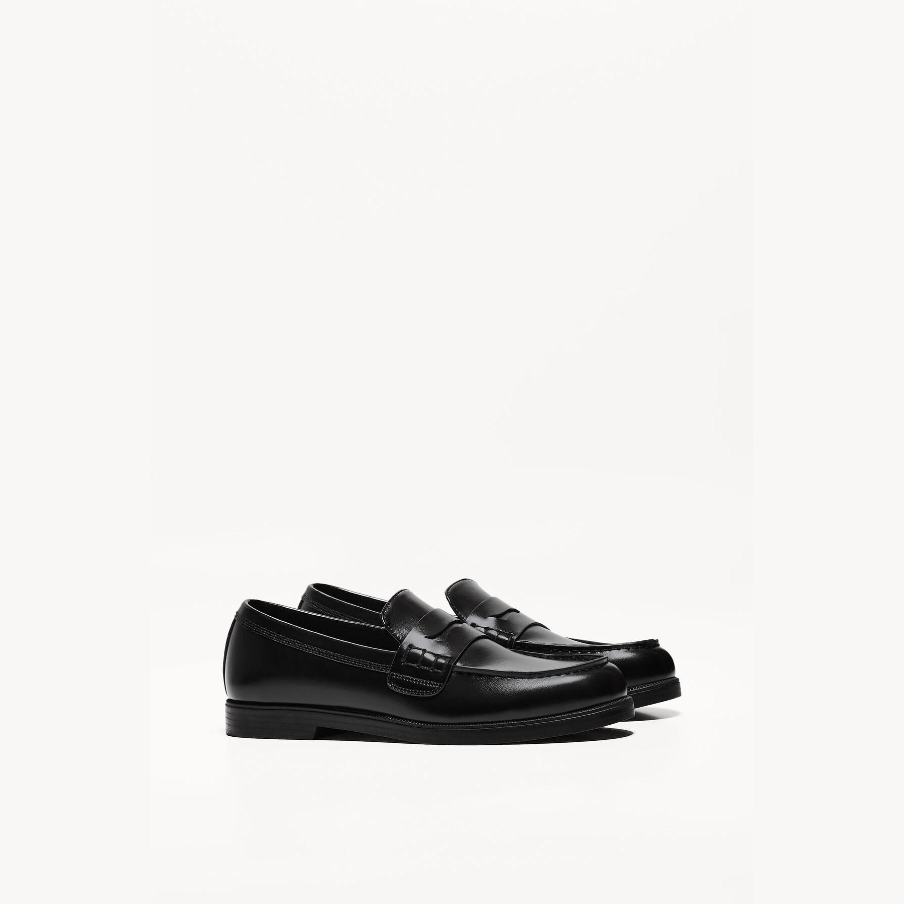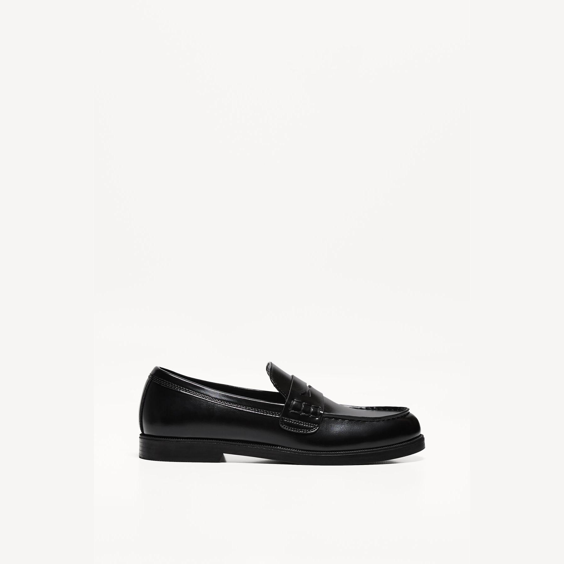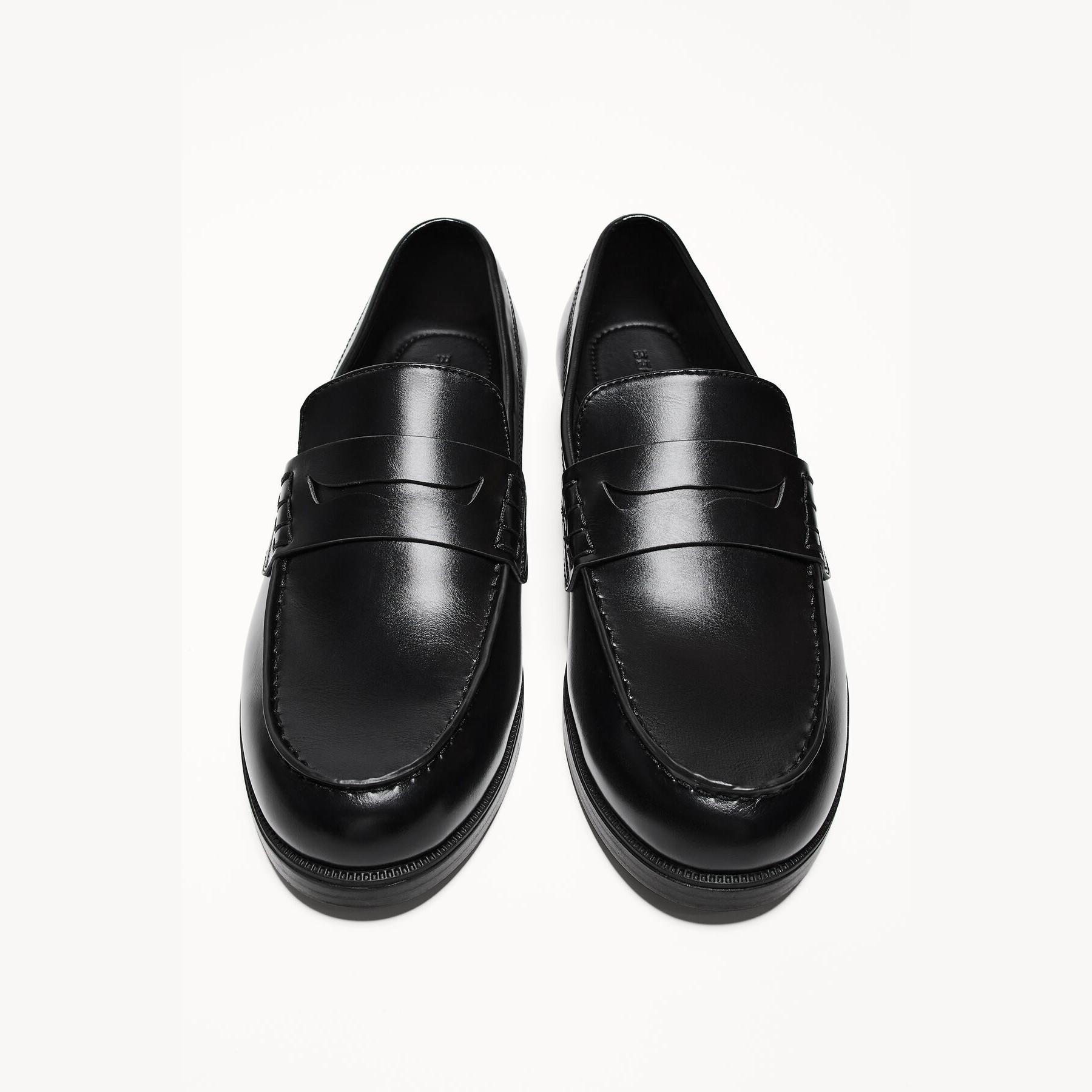 Bershka – حذاء لوفر رجالي بدون أربطة من الجلد الصناعي بلون أسود بتصميم كلاسيكي أنيق