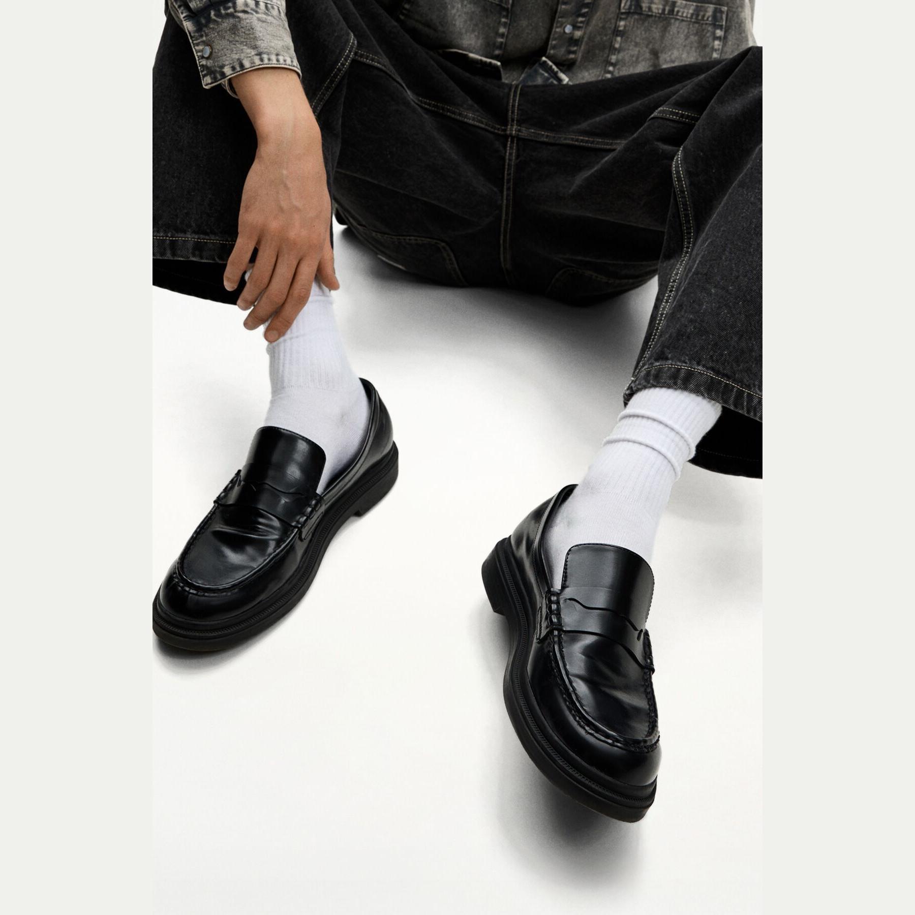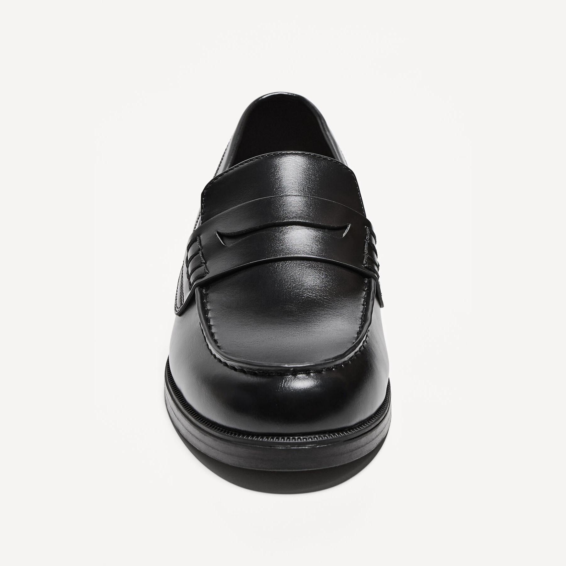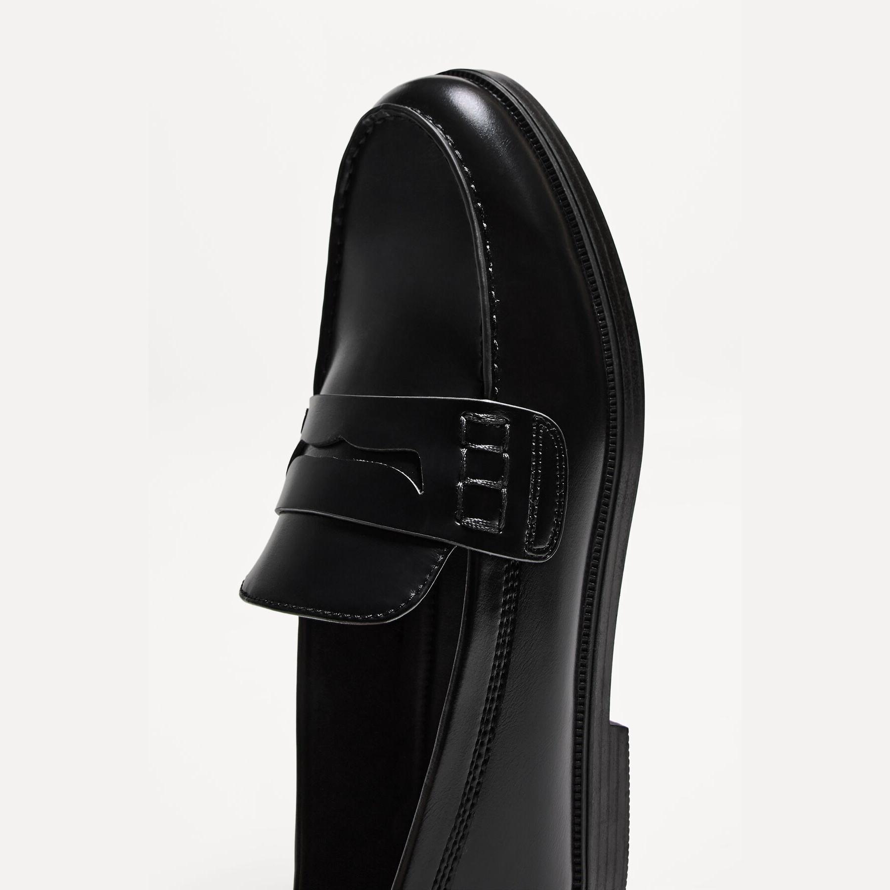 Bershka – حذاء لوفر رجالي بدون أربطة من الجلد الصناعي بلون أسود بتصميم كلاسيكي أنيق