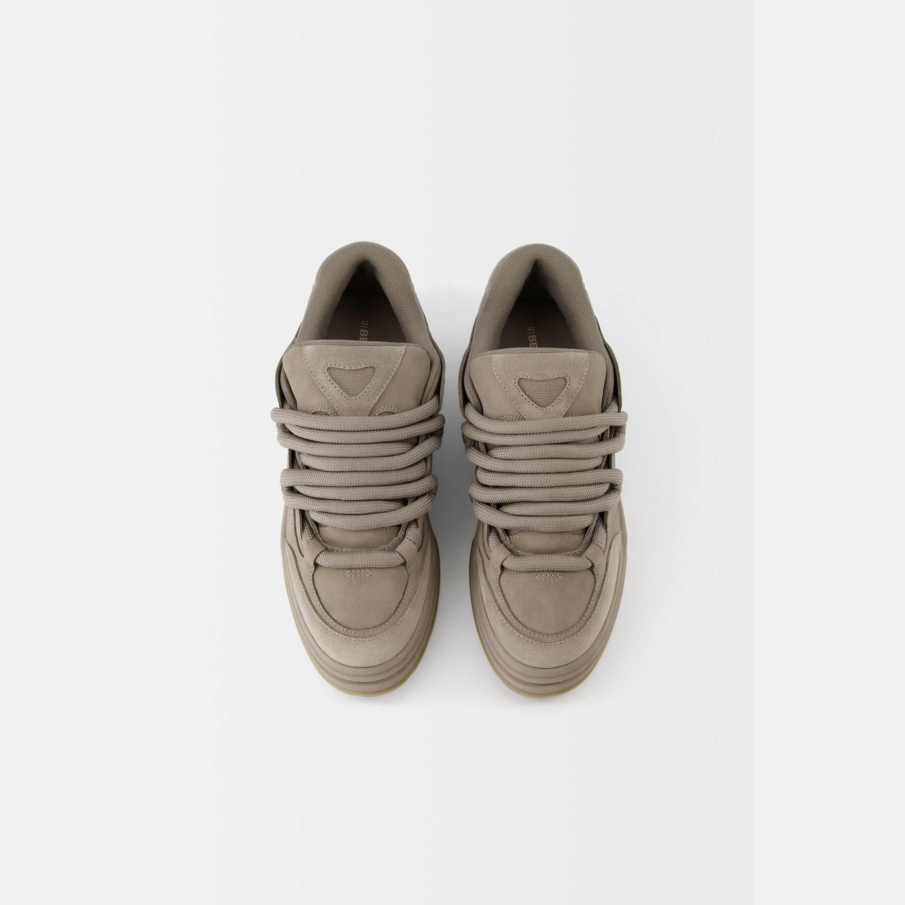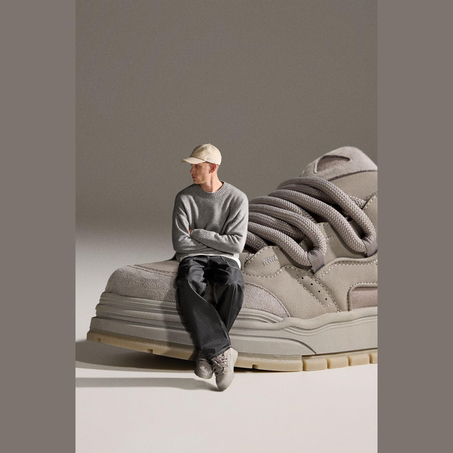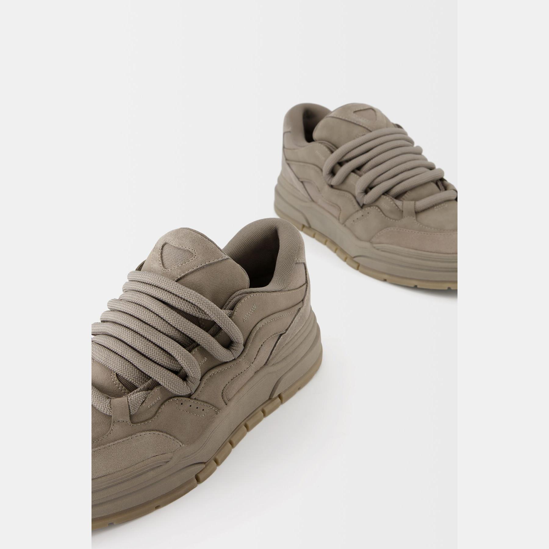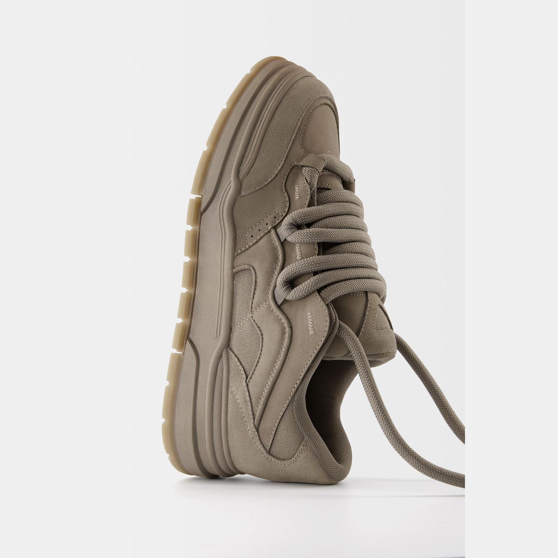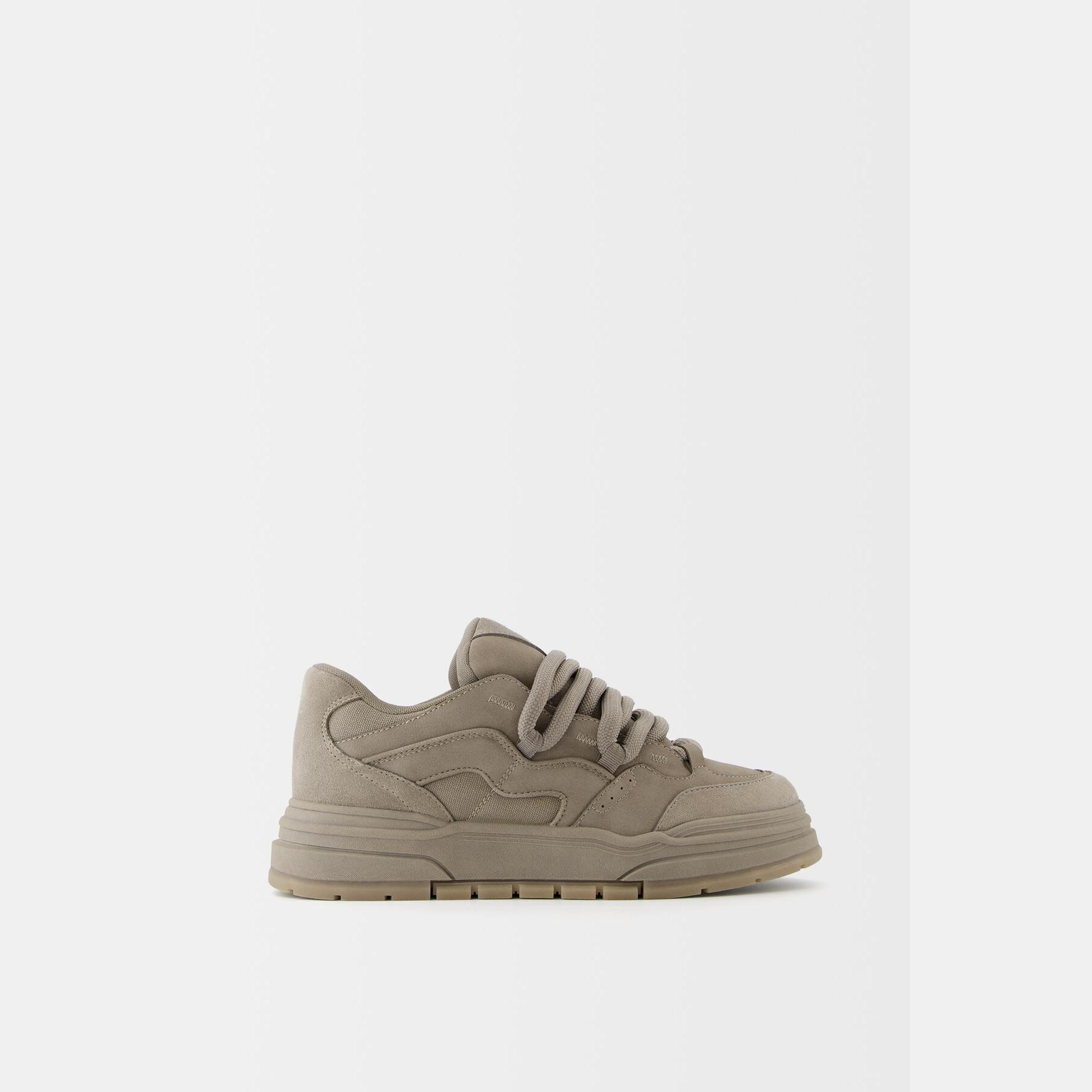 Bershka – حذاء رياضي رجالي برباط من الجلد الصناعي بلون رمادي بتصميم سكيت بنعل سميك STARFIT®