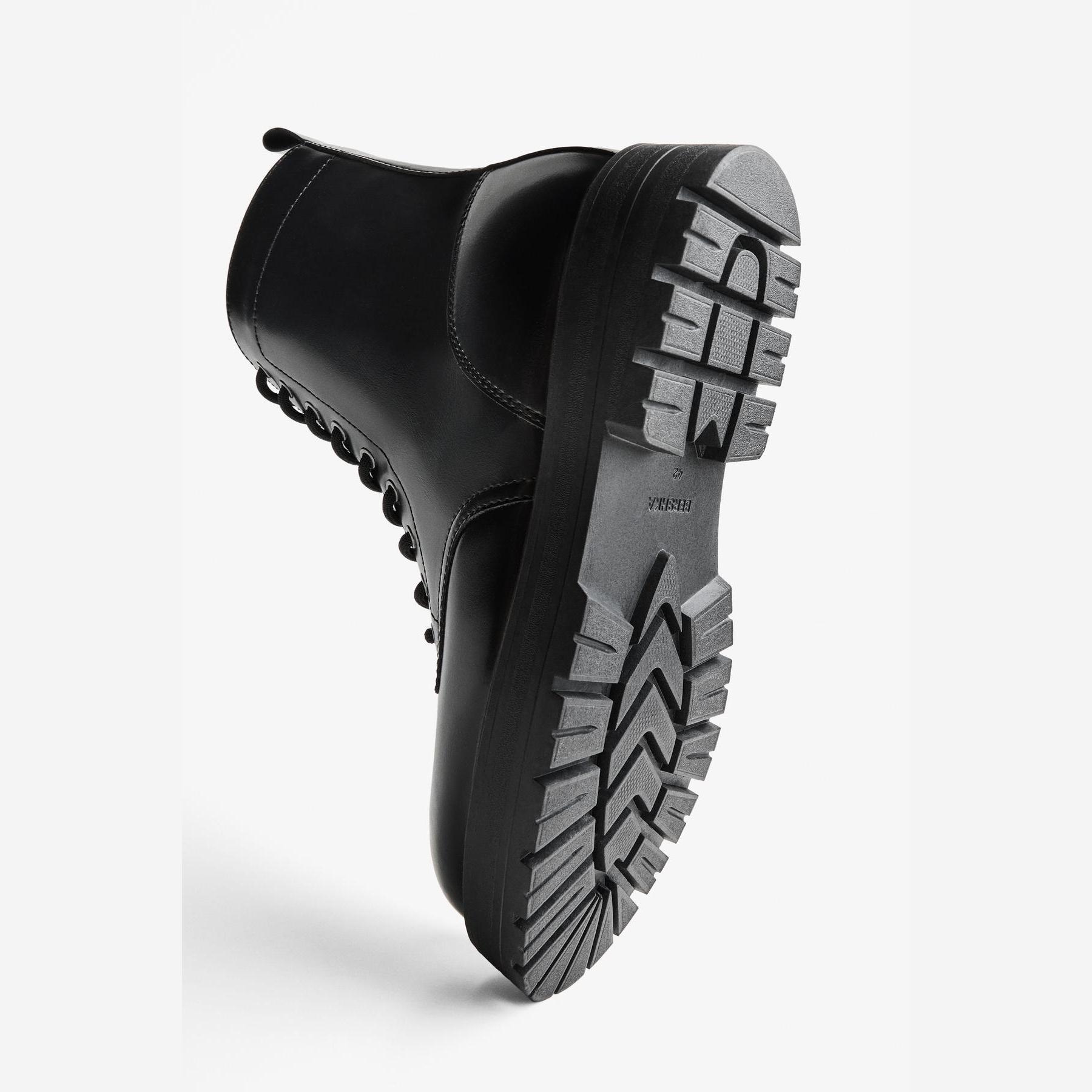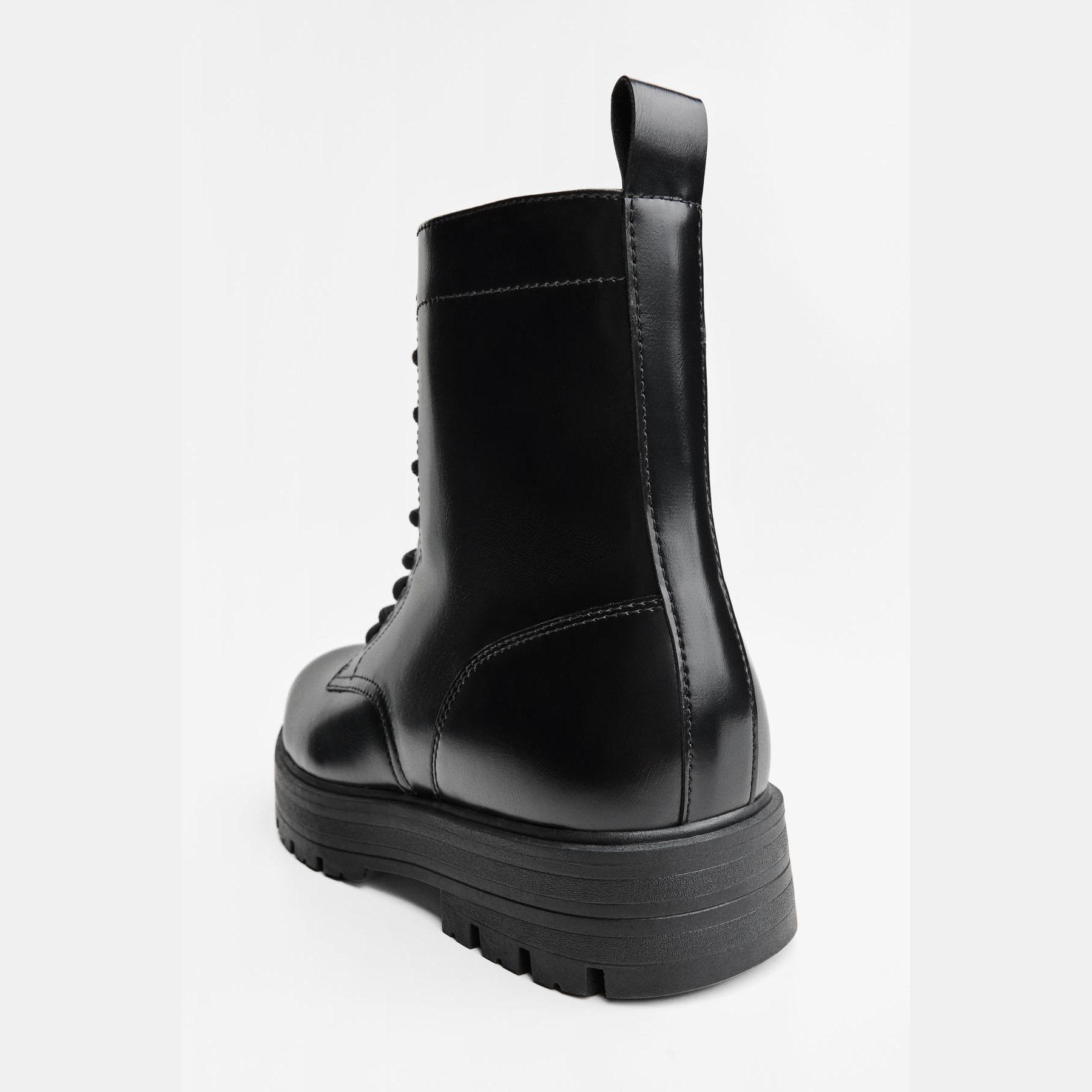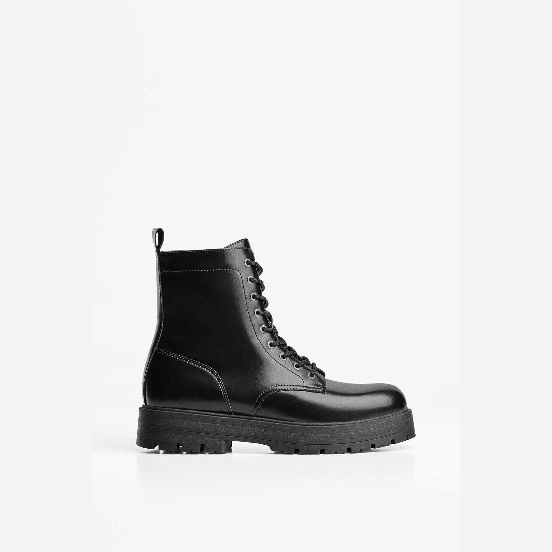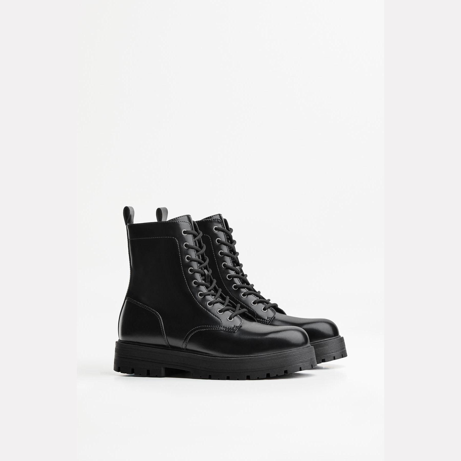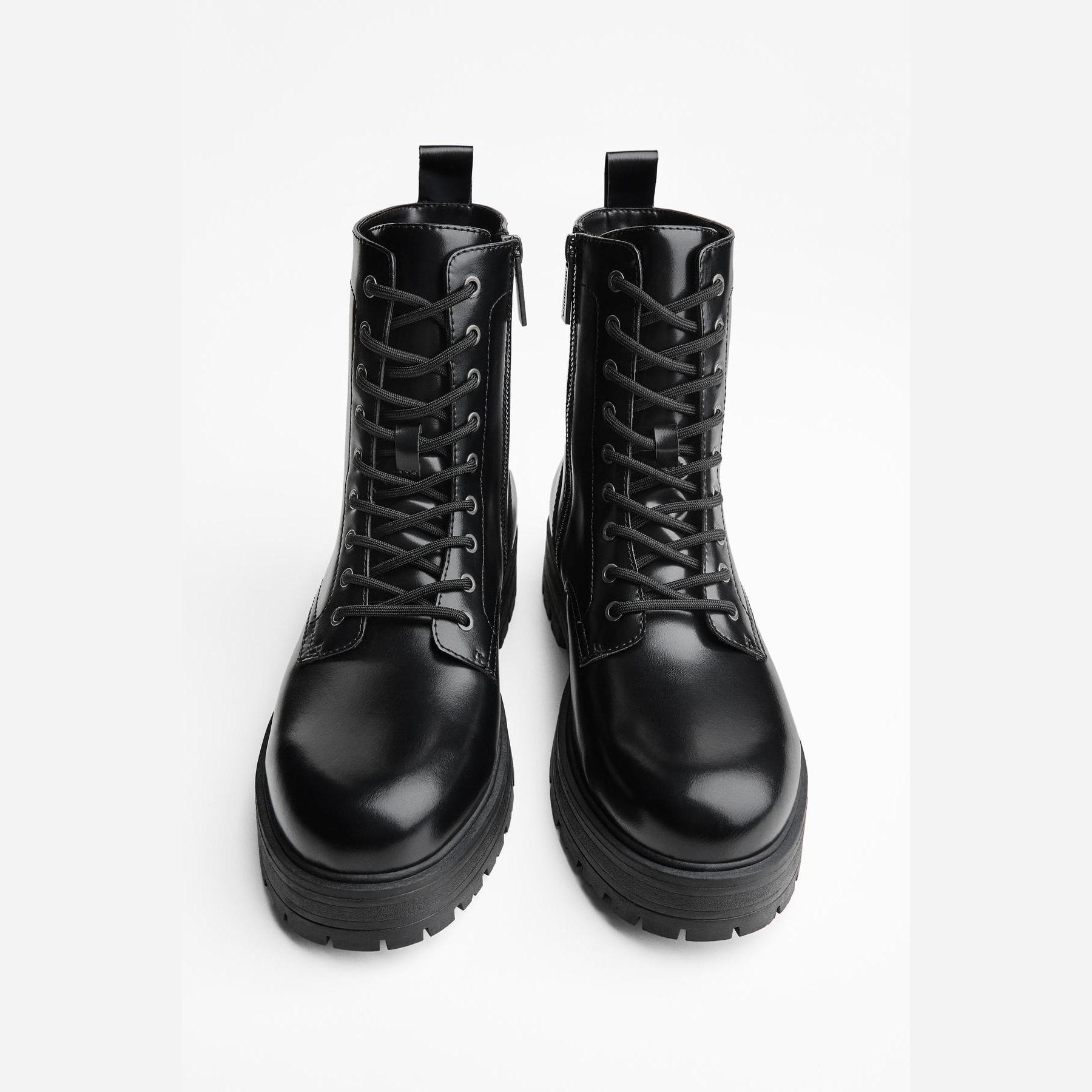 Bershka – بوت رجالي برباط من الجلد الصناعي بلون أسود بتصميم كلاسيكي بنعل سميك AIRFIT®